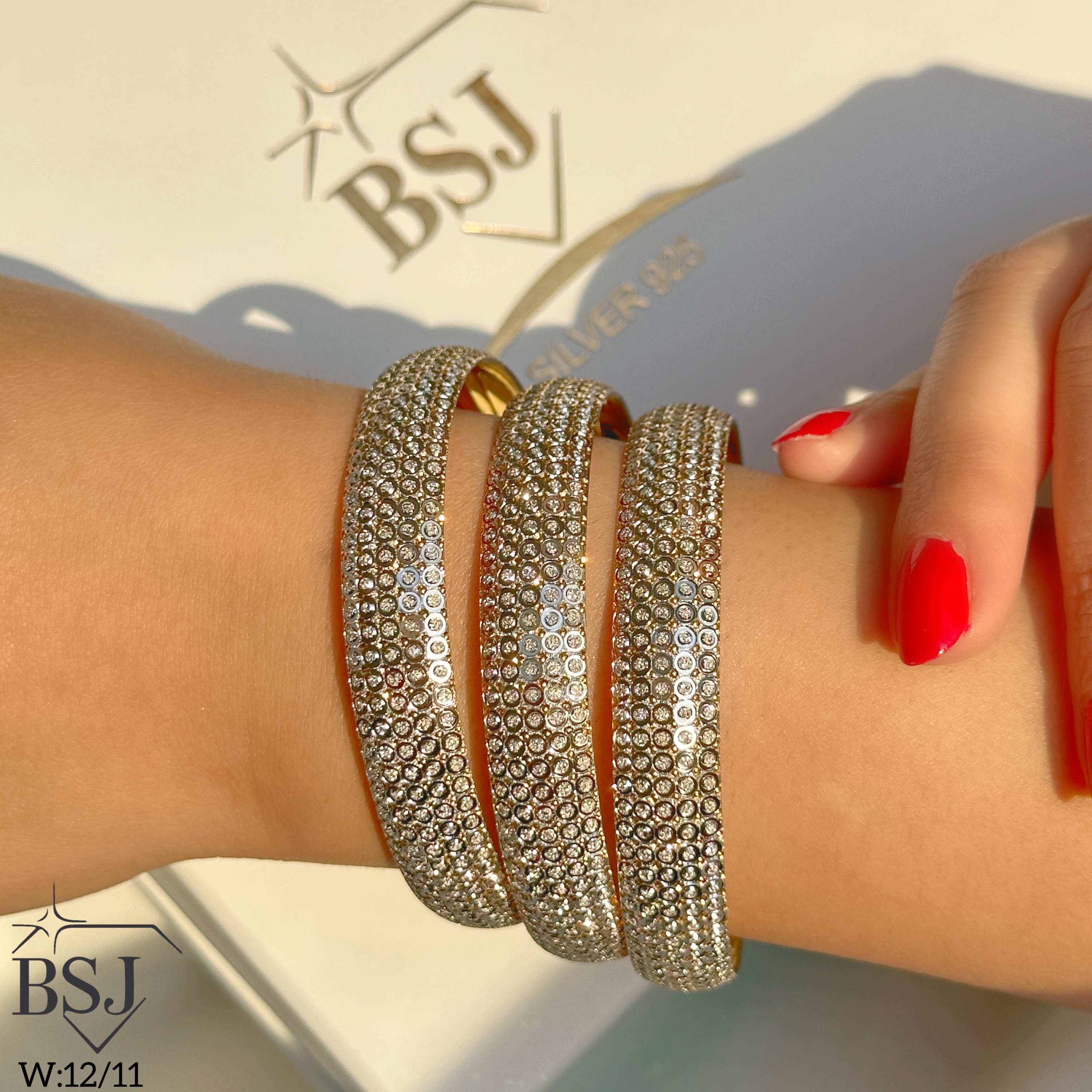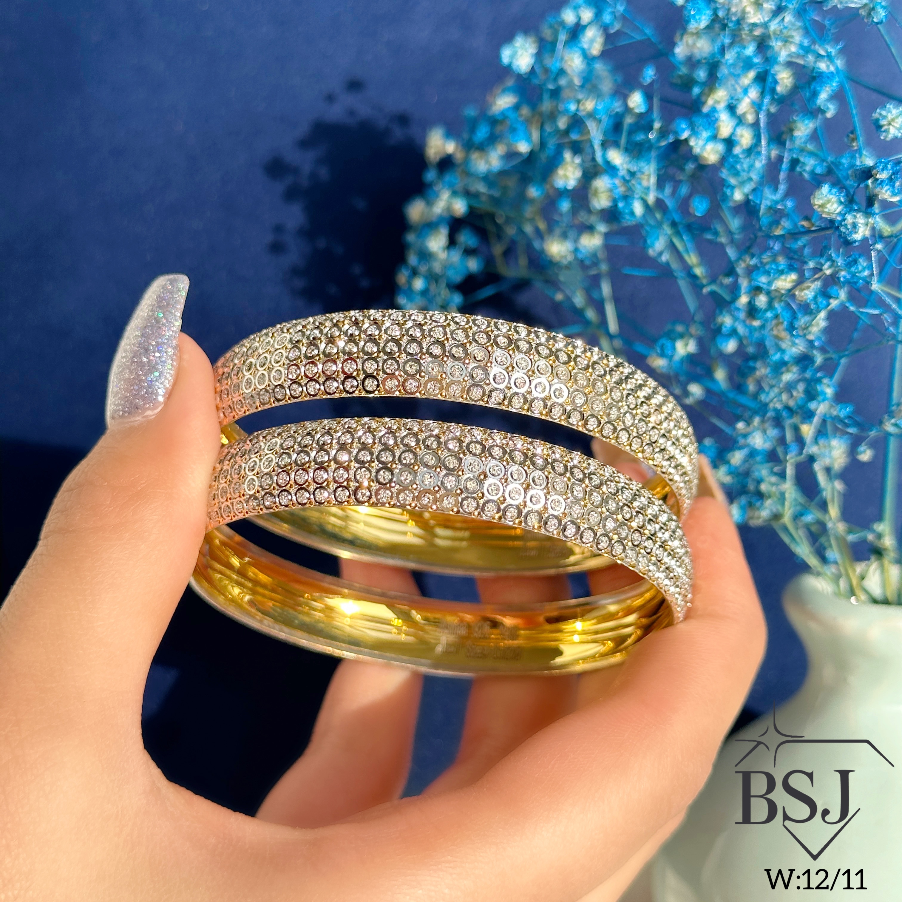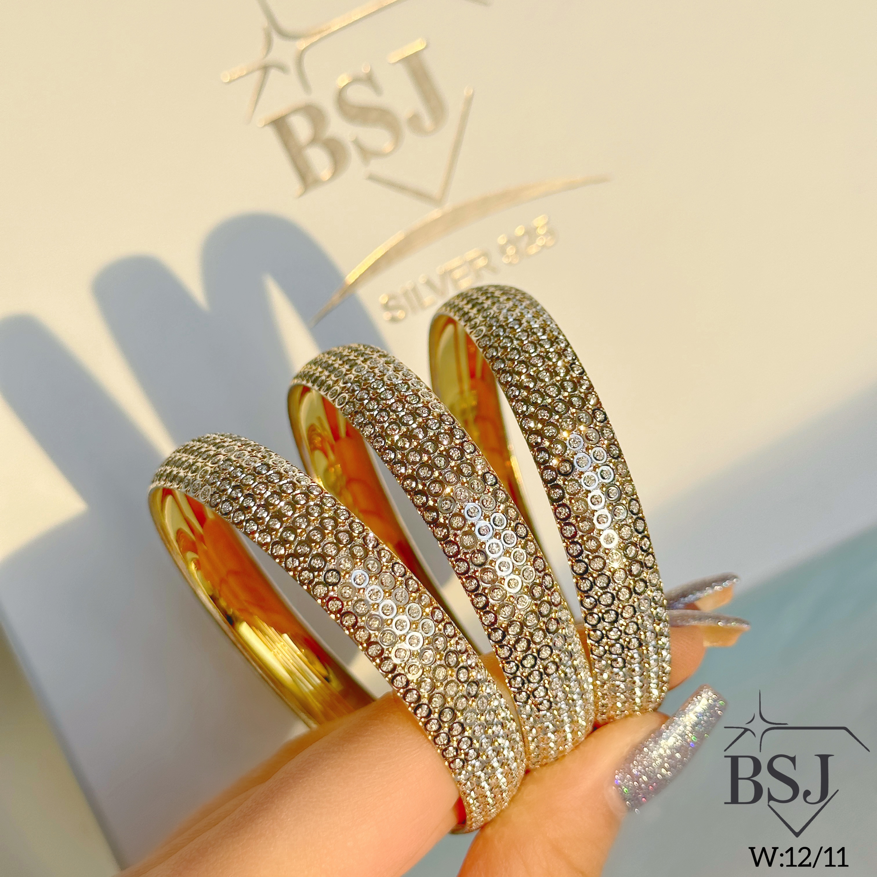النگو نقره زنانه اسما BSJ-A571 ساخته شده از نقره با عیار 925 می باشد.این النگو تماما از جنس نقره می باشد.آبکاری دو مرحله ای ترکیبی رودیوم (طلاسفید) و طلازرد نانو، سبب کیفیت بی نظیر دوام رنگ آن شده است و به دلیل عدم استفاده از نیکل در ساختار آن، بدون حساسیت بوده و با پوست حساس سازگار است.به دلیل کیفیت فوق العاده و درخشش عالی آن، تفاوتی با نمونه طلا ندارد.وزن النگو 12.11 گرم می باشد.النگوها در چهار سایز یک تا چهار زنانه قابل خرید می باشند، ضمناً سایز پنج زنانه و سایز بچگانه به صورت جداگانه قابل سفارش می باشد.