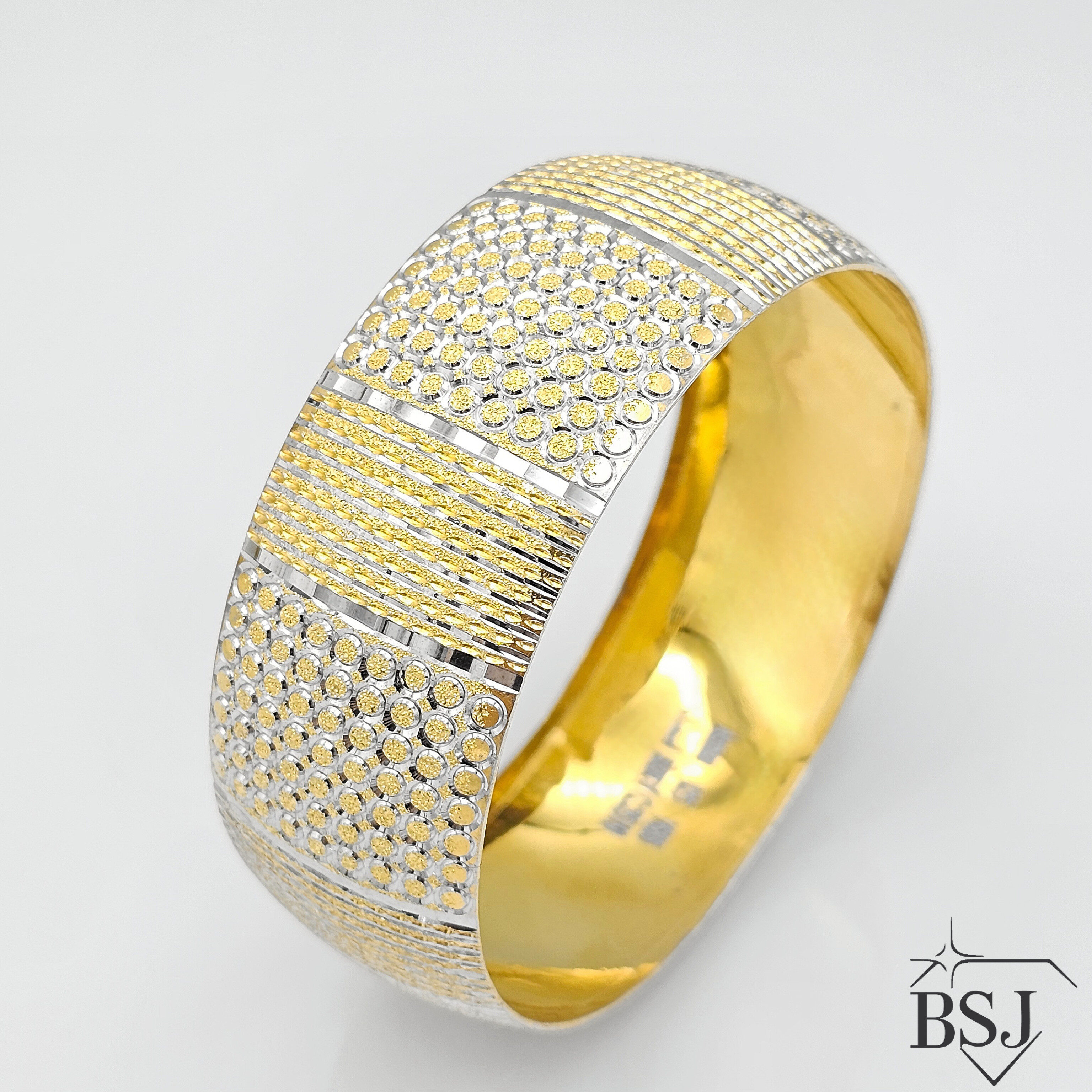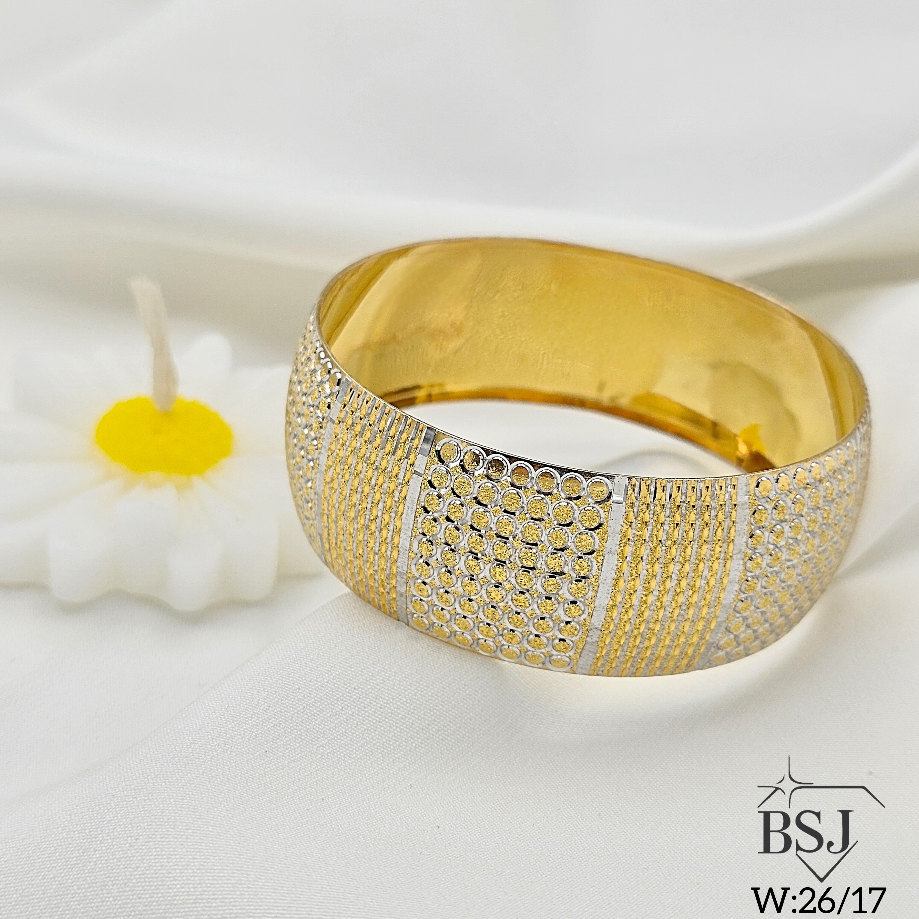 النگو نقره زنانه اسما BSJ-A574 ساخته شده از نقره با عیار 925 می باشد.این النگو تماما از جنس نقره می باشد.آبکاری دو مرحله ای ترکیبی رودیوم (طلاسفید) و طلازرد نانو، سبب کیفیت بی نظیر دوام رنگ آن شده است و به دلیل عدم استفاده از نیکل در ساختار آن، بدون حساسیت بوده و با پوست حساس سازگار است.به دلیل کیفیت فوق العاده و درخشش عالی آن، تفاوتی با نمونه طلا ندارد.وزن النگو 26.17 گرم می باشد.النگوها در چهار سایز یک تا چهار زنانه قابل خرید می باشند، ضمناً سایز پنج زنانه و سایز بچگانه به صورت جداگانه قابل سفارش می باشد.