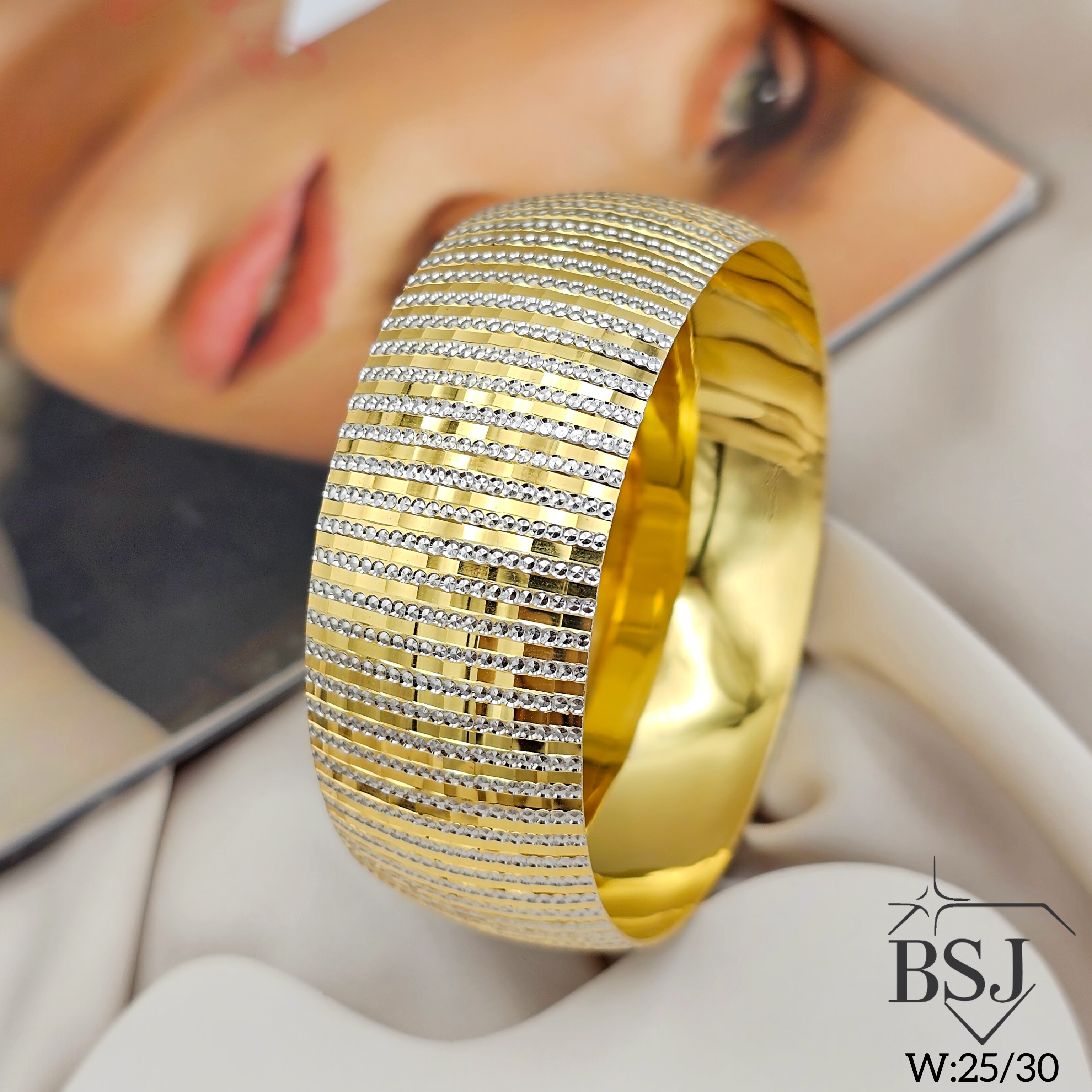 النگو نقره زنانه اسما BSJ-A576 ساخته شده از نقره با عیار 925 می باشد.این النگو تماما از جنس نقره می باشد.آبکاری دو مرحله ای ترکیبی رودیوم (طلاسفید) و طلازرد نانو، سبب کیفیت بی نظیر دوام رنگ آن شده است و به دلیل عدم استفاده از نیکل در ساختار آن، بدون حساسیت بوده و با پوست حساس سازگار است.به دلیل کیفیت فوق العاده و درخشش عالی آن، تفاوتی با نمونه طلا ندارد.وزن النگو25.30 گرم می باشد.النگوها در چهار سایز یک تا چهار زنانه قابل خرید می باشند، ضمناً سایز پنج زنانه و سایز بچگانه به صورت جداگانه قابل سفارش می باشد.