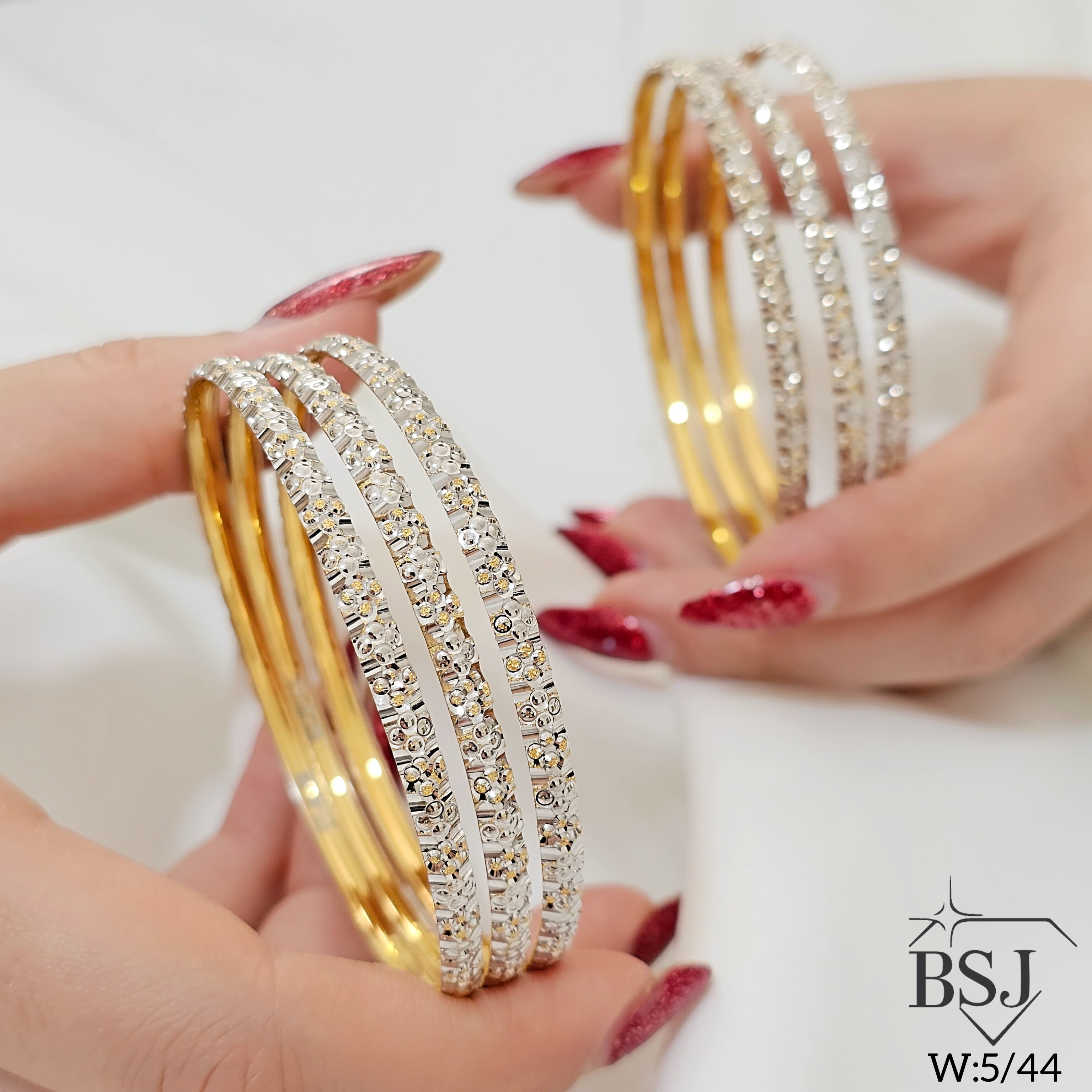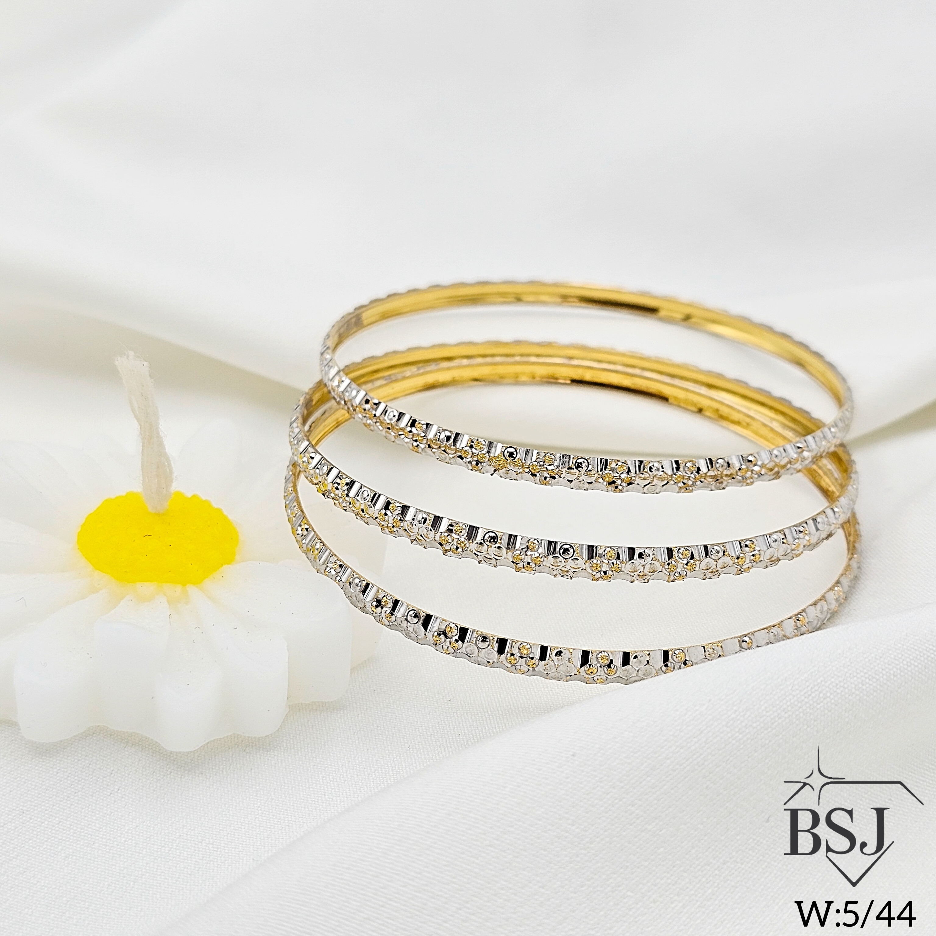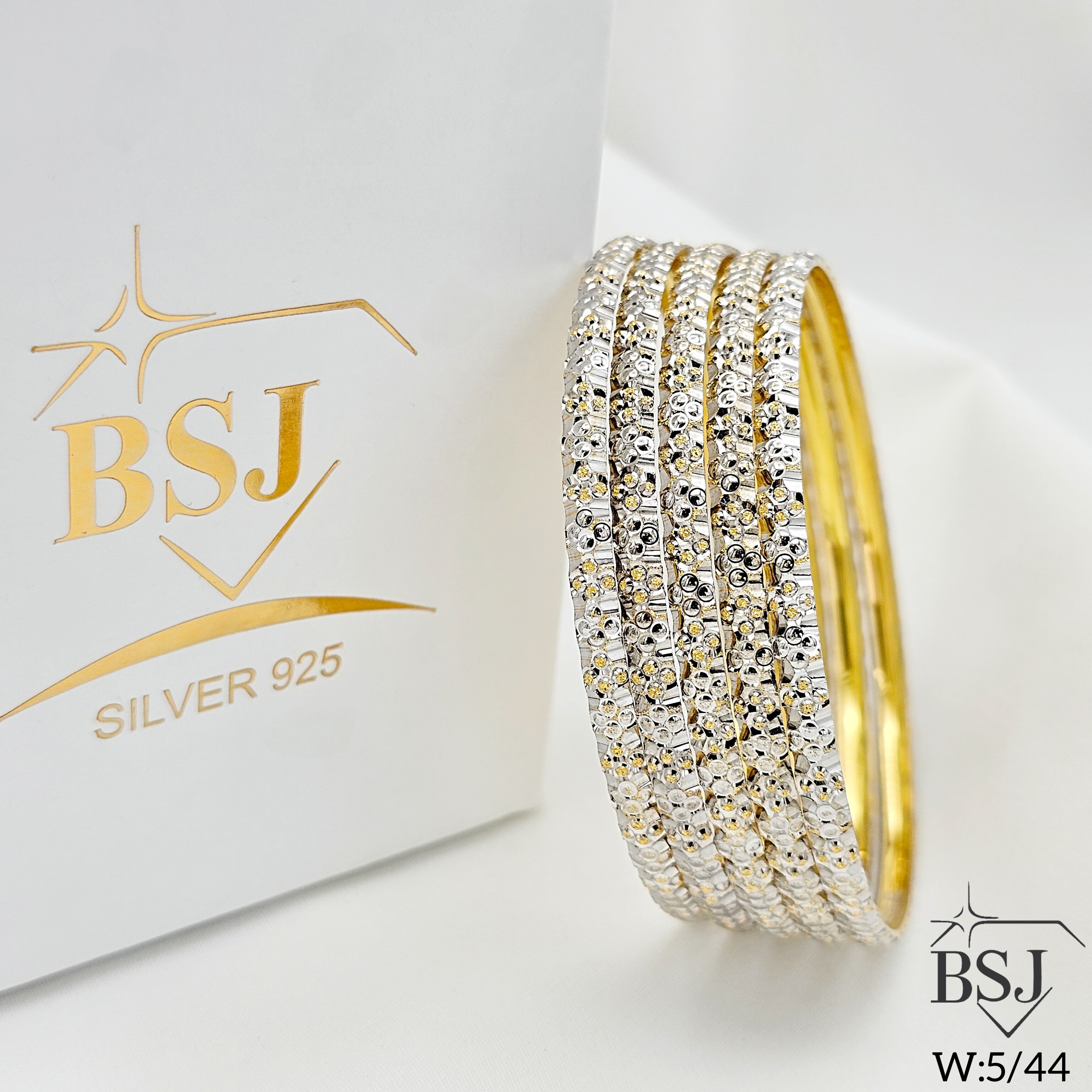 النگو نقره زنانه اسما BSJ-A580 ساخته شده از نقره با عیار 925 می باشد.این النگو تماما از جنس نقره می باشد.آبکاری دو مرحله ای ترکیبی رودیوم (طلاسفید) و طلازرد نانو، سبب کیفیت بی نظیر دوام رنگ آن شده است و به دلیل عدم استفاده از نیکل در ساختار آن، بدون حساسیت بوده و با پوست حساس سازگار است.به دلیل کیفیت فوق العاده و درخشش عالی آن، تفاوتی با نمونه طلا ندارد.وزن النگو 5.44 گرم می باشد.النگوها در چهار سایز یک تا چهار زنانه قابل خرید می باشند، ضمناً سایز پنج زنانه و سایز بچگانه به صورت جداگانه قابل سفارش می باشد.
