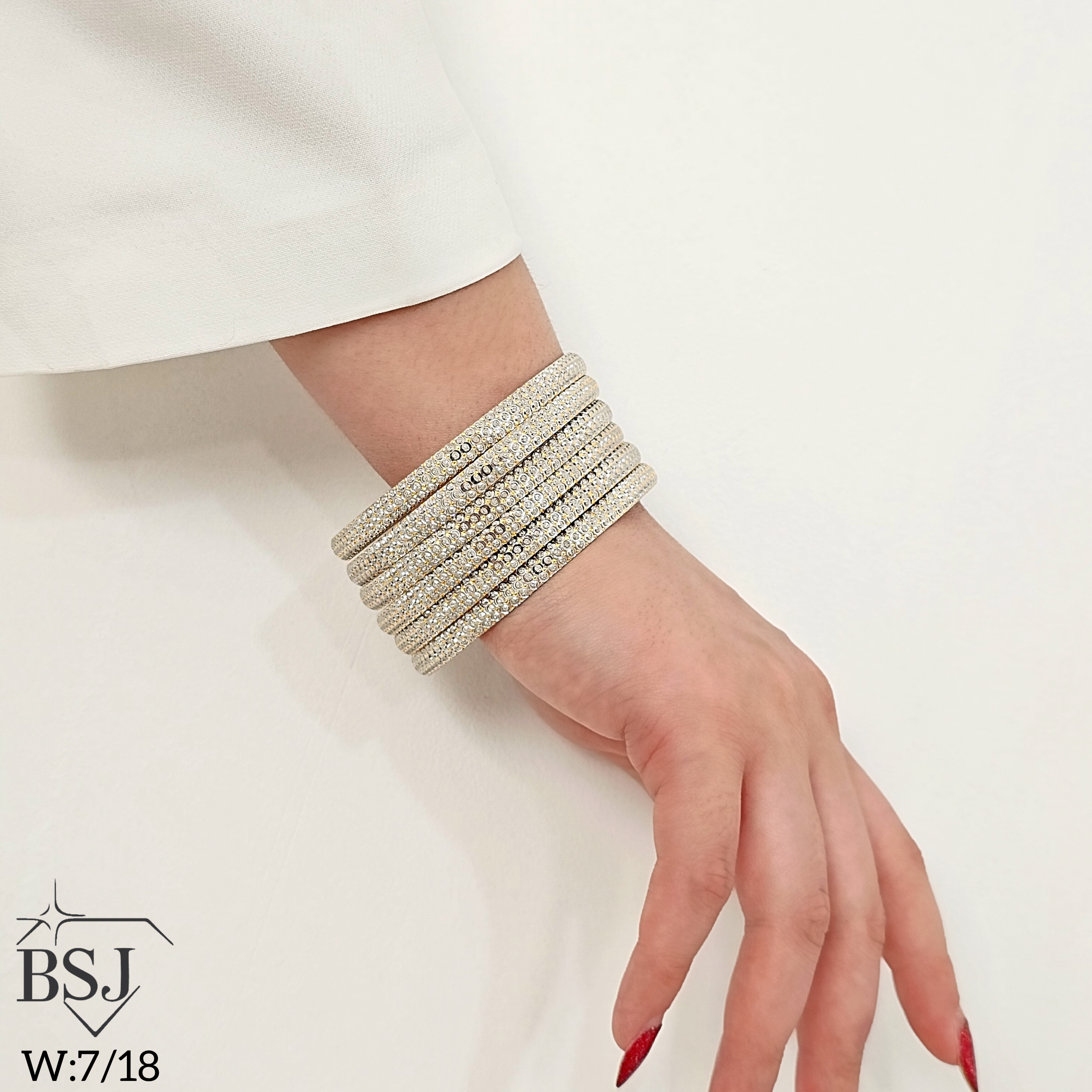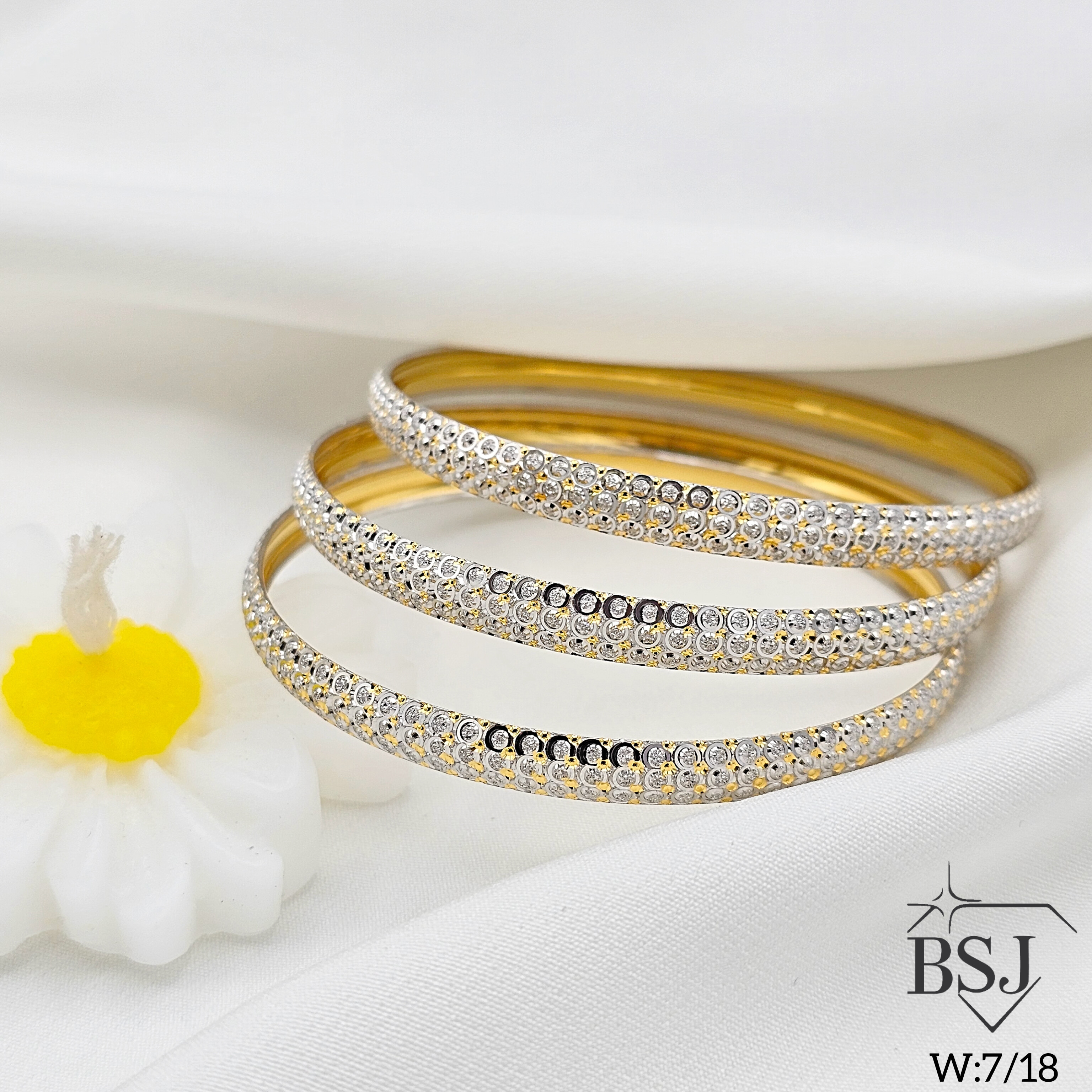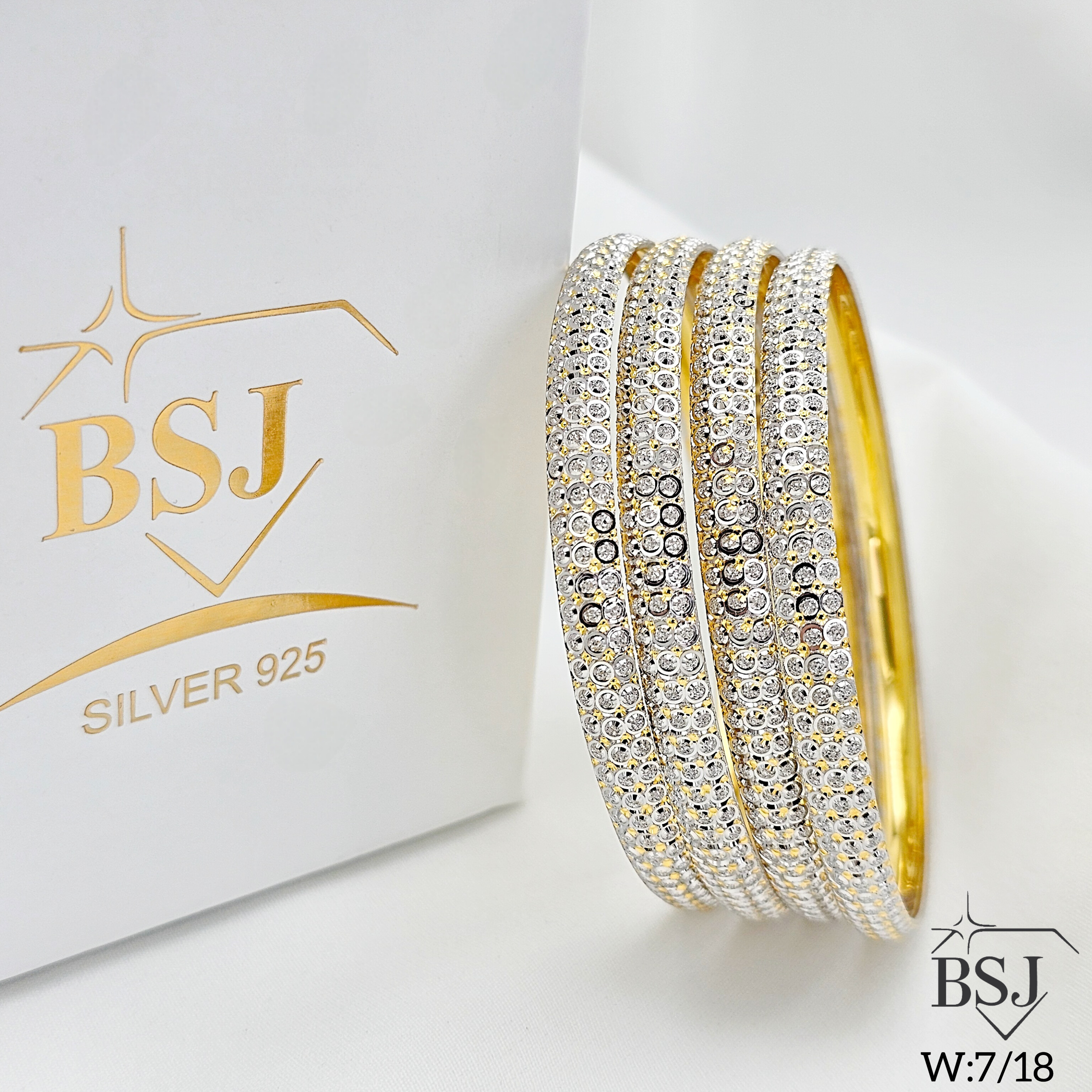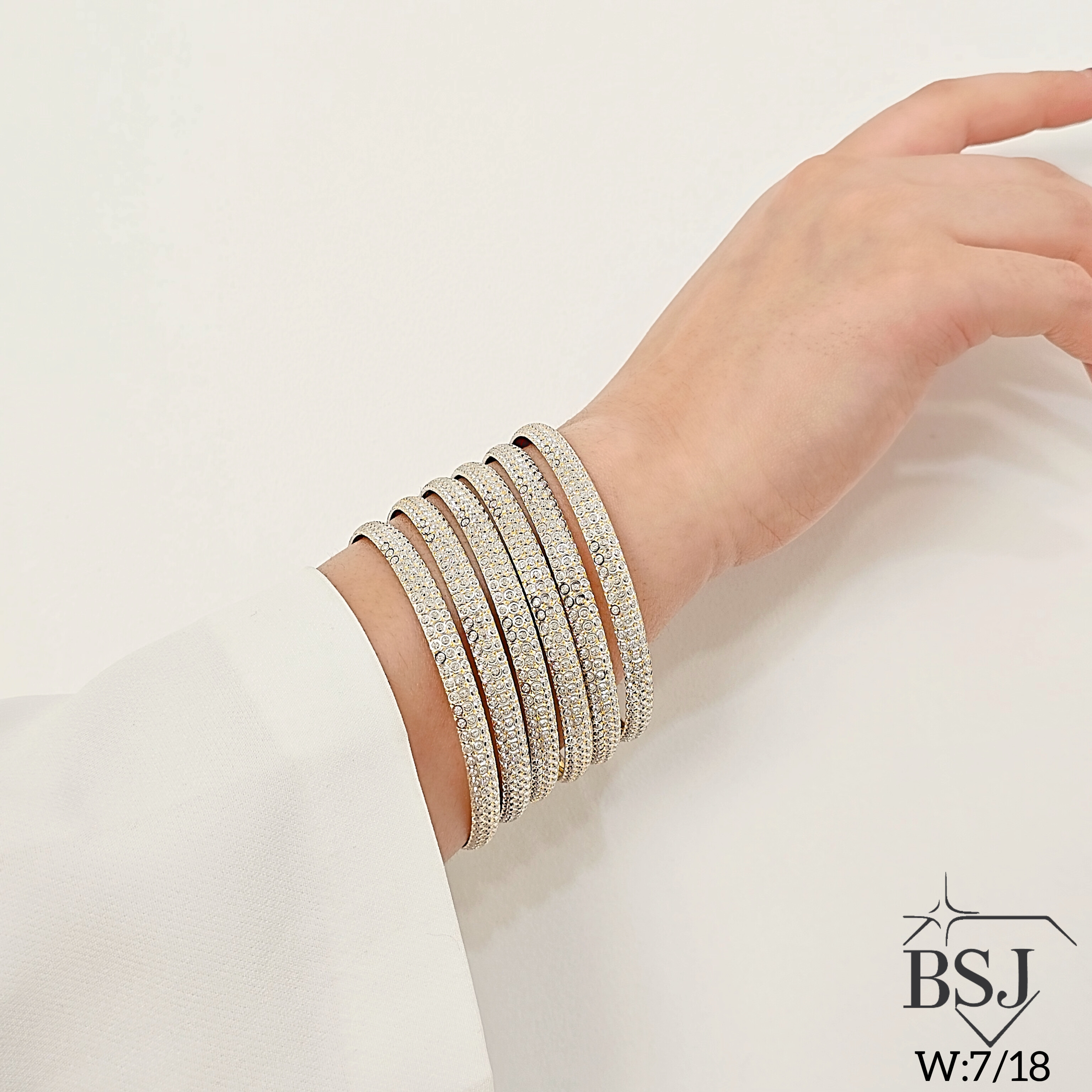 النگو نقره زنانه اسما BSJ-A583 ساخته شده از نقره با عیار 925 می باشد.این النگو تماما از جنس نقره می باشد.آبکاری دو مرحله ای ترکیبی رودیوم (طلاسفید) و طلازرد نانو، سبب کیفیت بی نظیر دوام رنگ آن شده است و به دلیل عدم استفاده از نیکل در ساختار آن، بدون حساسیت بوده و با پوست حساس سازگار است.به دلیل کیفیت فوق العاده و درخشش عالی آن، تفاوتی با نمونه طلا ندارد.وزن النگو 7.18 گرم می باشد.النگوها در چهار سایز یک تا چهار زنانه قابل خرید می باشند، ضمناً سایز پنج زنانه و سایز بچگانه به صورت جداگانه قابل سفارش می باشد.