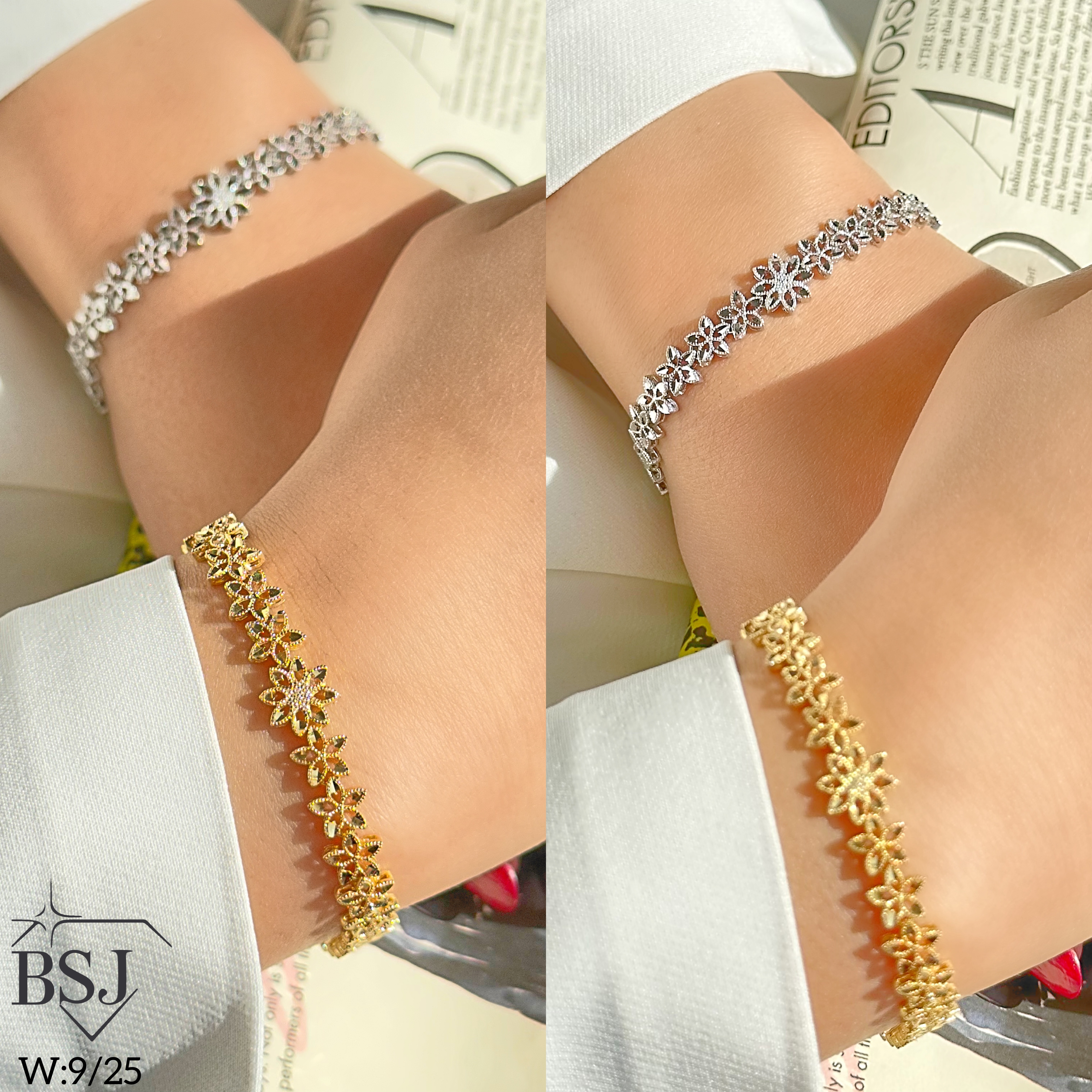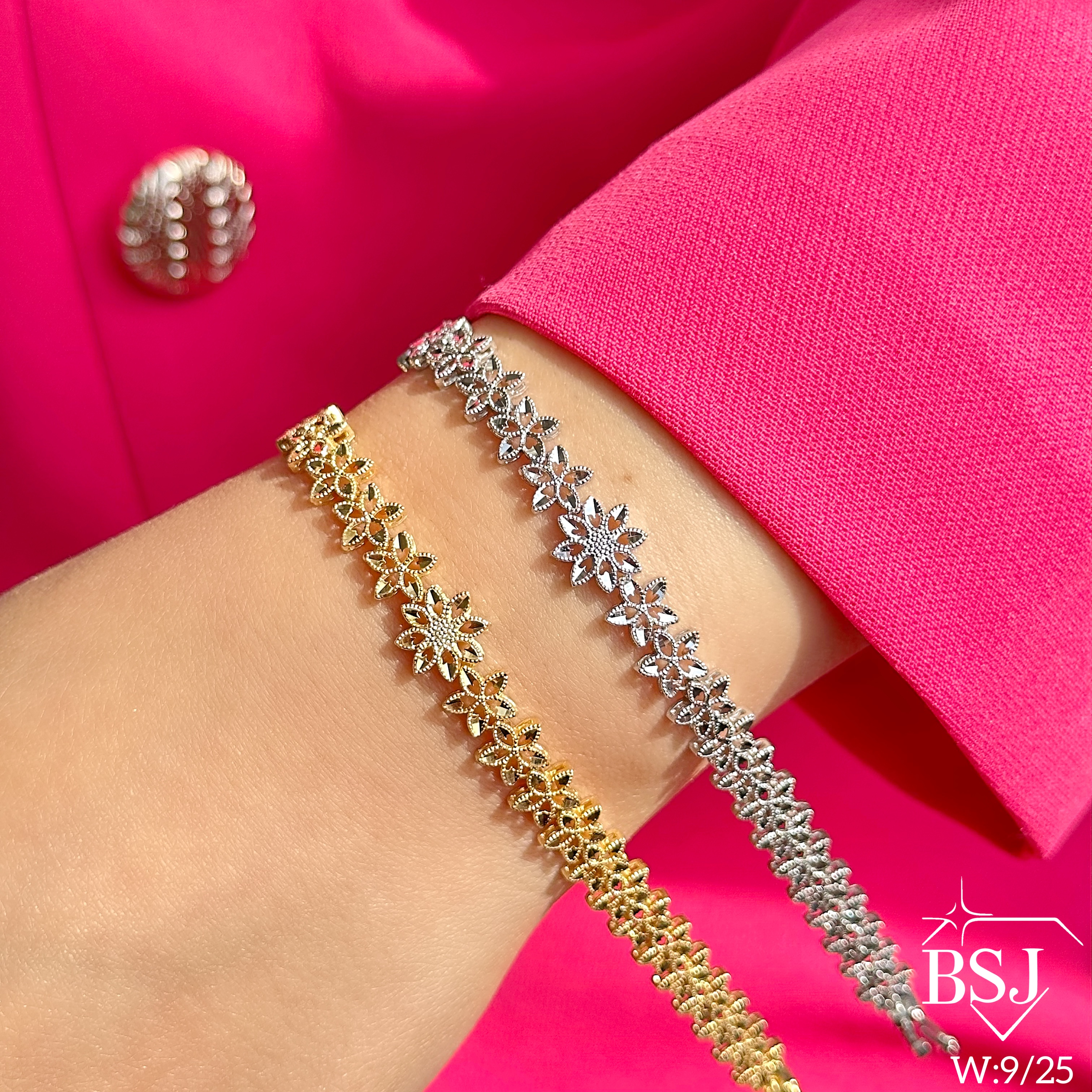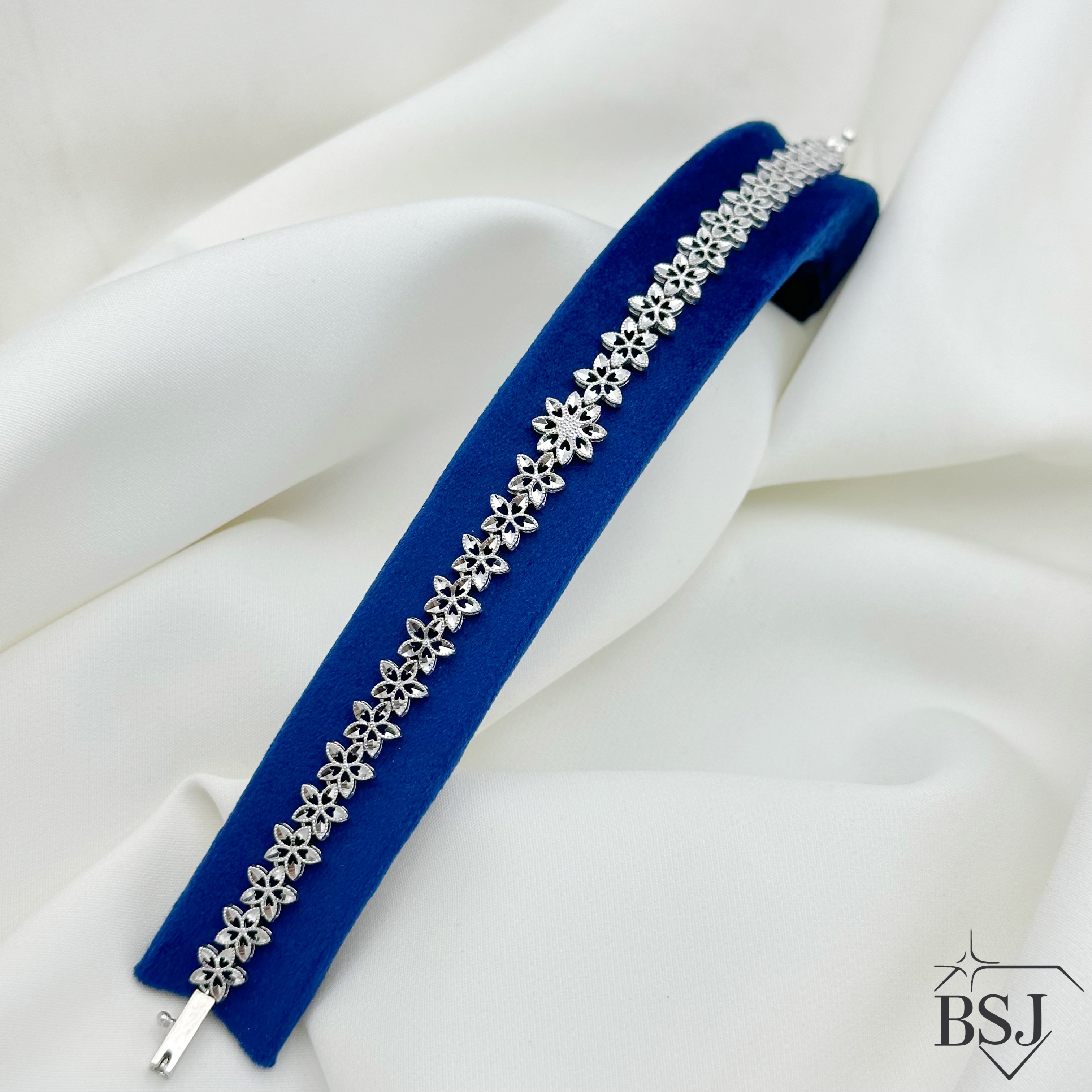 دستبند نقره تراش زنانه BSJ_D582 از دستبندهای شیک ساخته شده از نقره با عیار 925 می باشد.این دستبند بدون نگین بوده و تماما از جنس نقره می باشد.آبکاری دو مرحله ای رودیوم (طلا سفید)، سبب کیفیت بی نظیر دوام رنگ آن شده است و به دلیل عدم استفاده از نیکل در ساختار آن، بدون حساسیت بوده و با پوست حساس سازگار است.وزن دستبند 9.25 گرم می باشد.