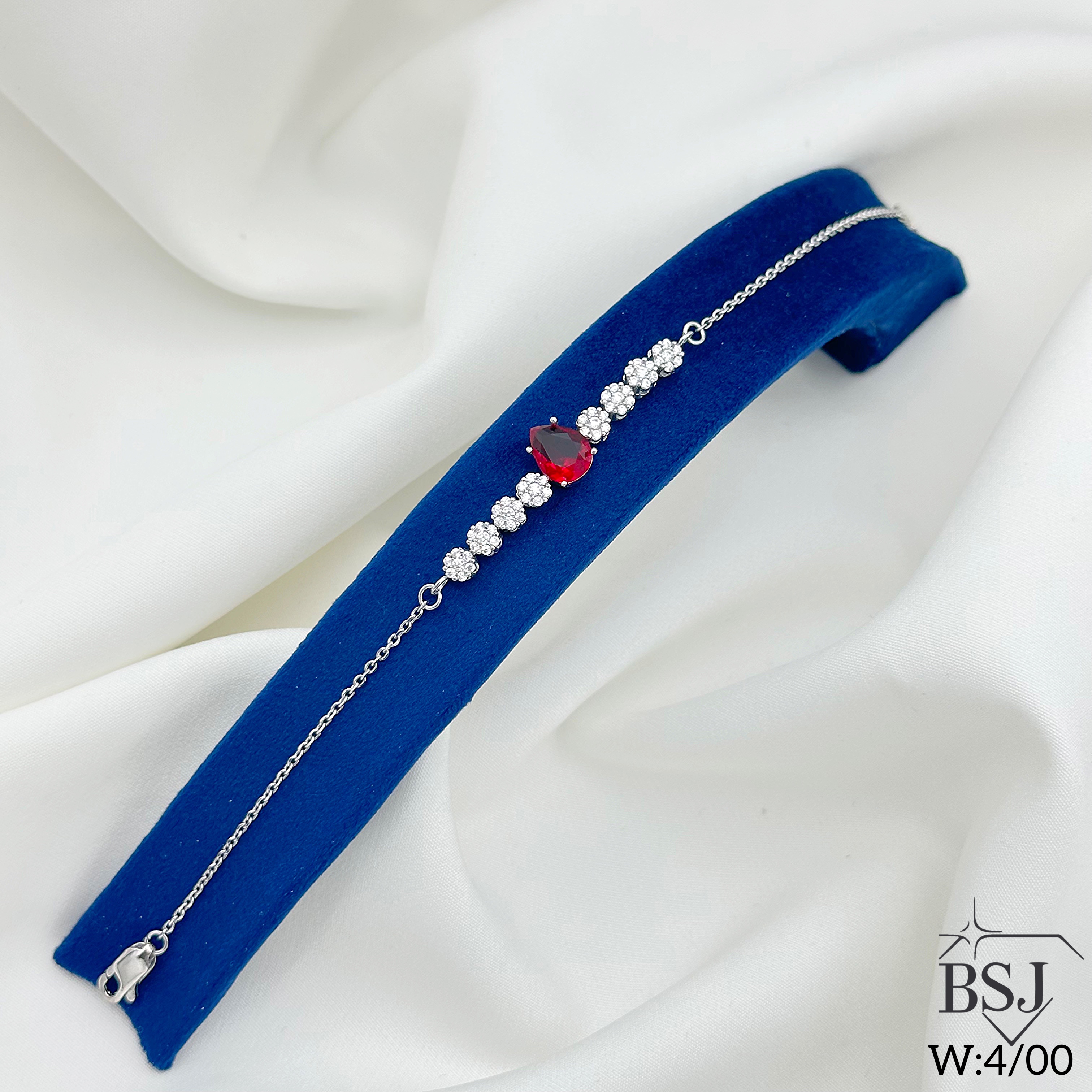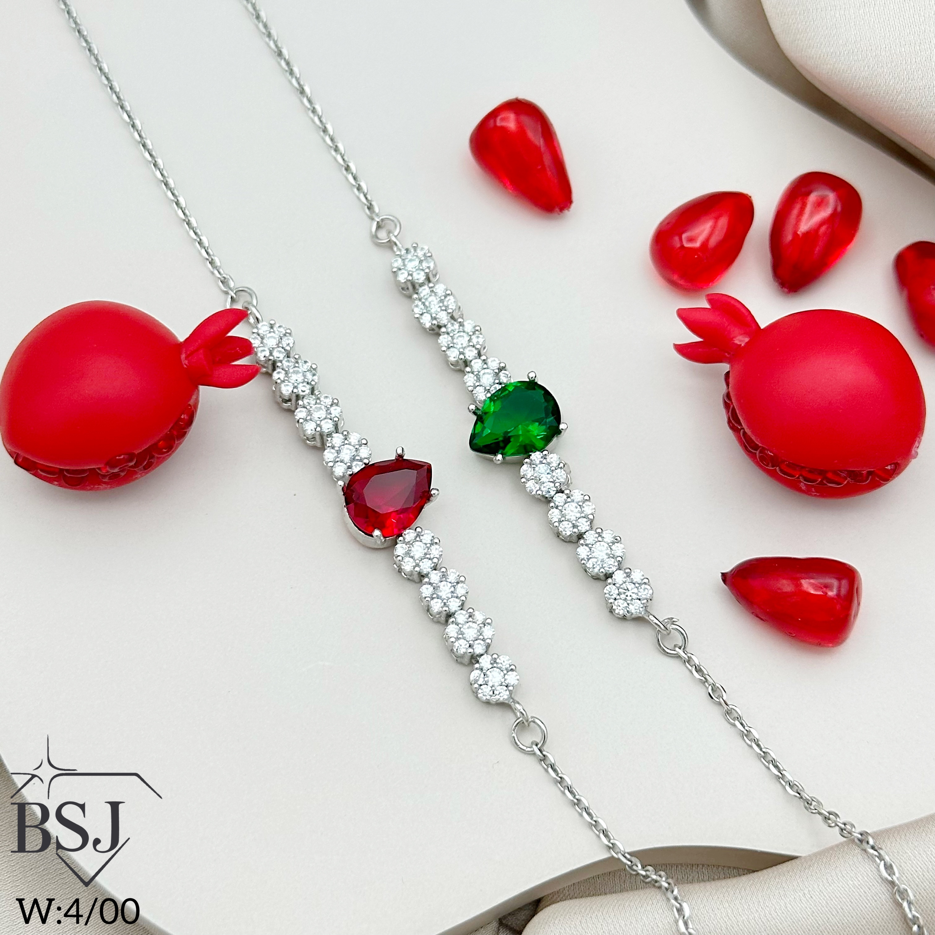 دستبند نقره زنانه BSJ_D583 یکی از دستبندهای پرفروش و زیبای ساخته شده از نقره با عیار 925 می باشد.سنگ های به کار رفته در آن برلیان از جنس اتمی زیرکونیا و سنگ های سنتتیک(آزمایشگاهی) رنگی می باشند که به صورت میکروستینگ مخراج کاری شده اند و در برابر ضربه مقاوم اند.آبکاری دو مرحله ای رودیوم (طلا سفید)، سبب کیفیت بی نظیر دوام رنگ آن شده است و به دلیل عدم استفاده از نیکل در ساختار آن، بدون حساسیت بوده و با پوست حساس سازگار است.وزن دستبند 4گرم می باشد.