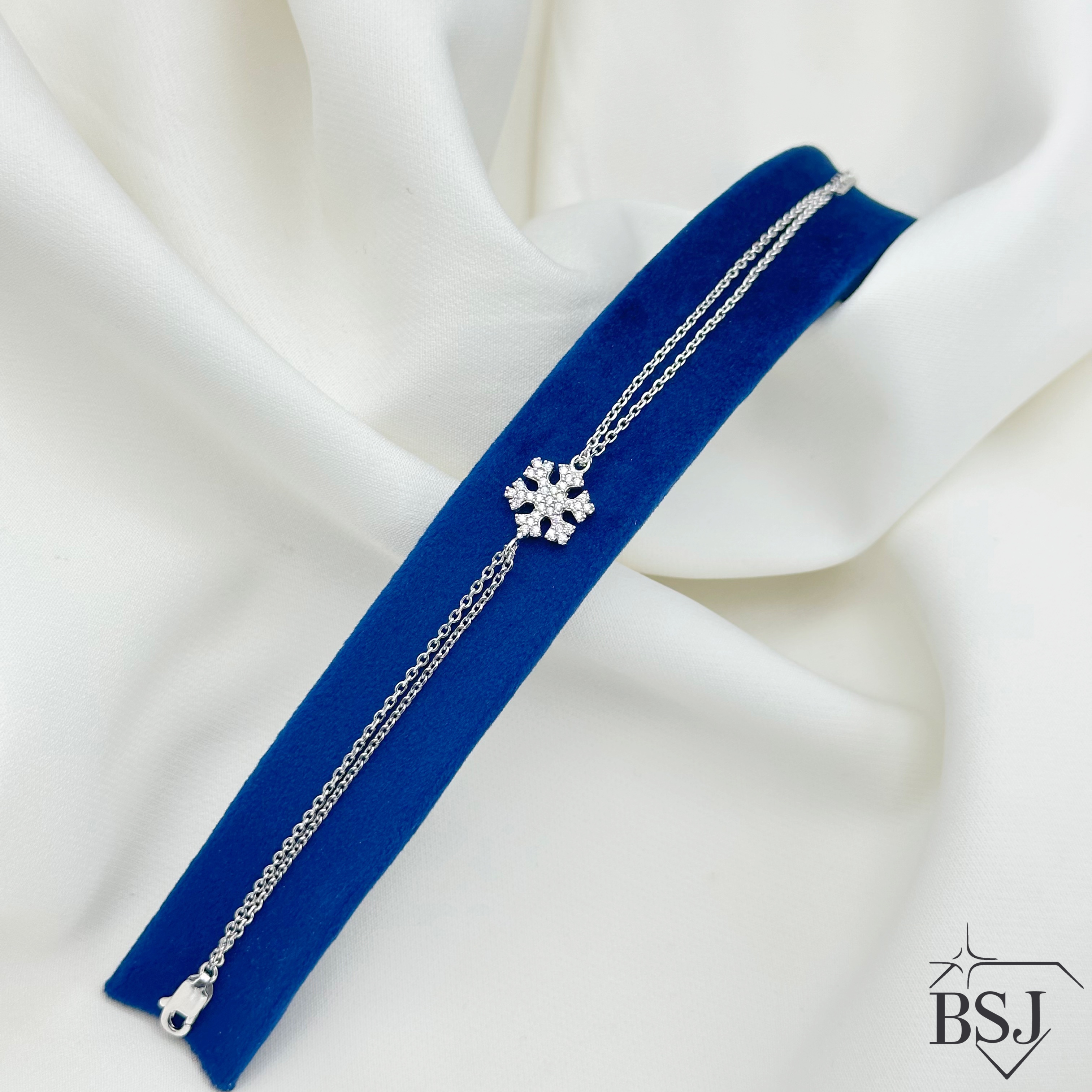دستبند نقره زنانه BSJ_D585 یکی از دستبندهای پرفروش و زیبای ساخته شده از نقره با عیار 925 می باشد.سنگ های به کار رفته در آن برلیان از جنس اتمی زیرکونیا می باشند که به صورت میکروستینگ مخراج کاری شده اند و در برابر ضربه مقاوم اند.آبکاری دو مرحله ای رودیوم (طلا سفید)، سبب کیفیت بی نظیر دوام رنگ آن شده است و به دلیل عدم استفاده از نیکل در ساختار آن، بدون حساسیت بوده و با پوست حساس سازگار است.وزن دستبند 2.99 گرم می باشد.