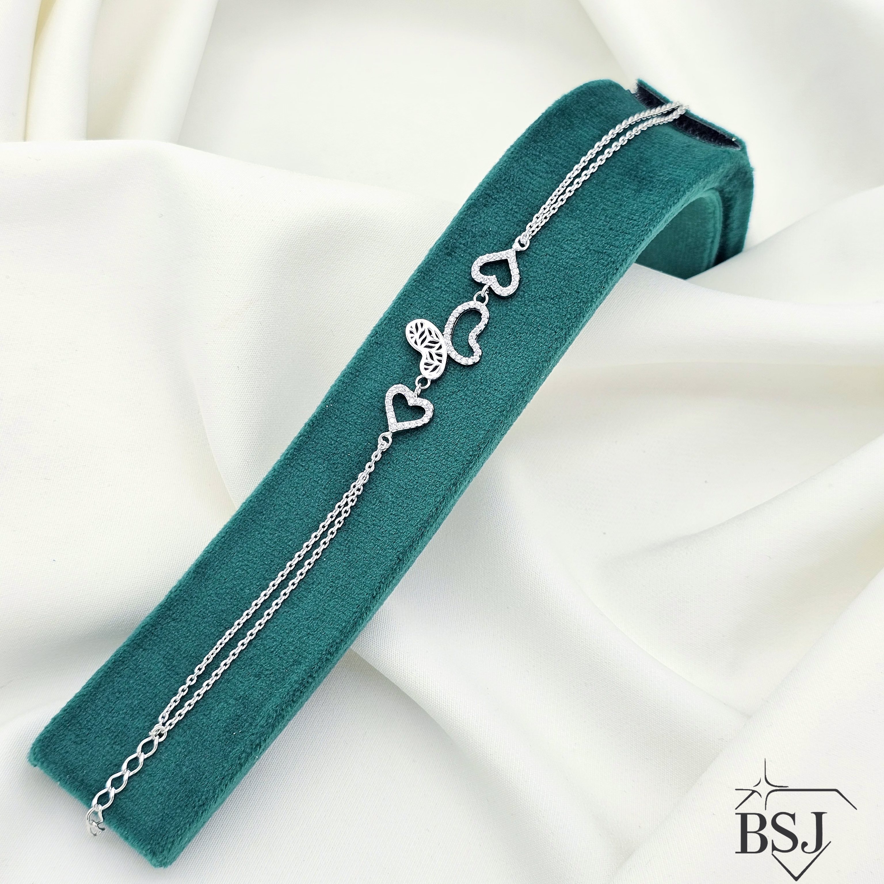 دستبند نقره زنانه BSJ_D593 یکی از دستبندهای پرفروش و زیبای ساخته شده از نقره با عیار 925 می باشد.سنگ های به کار رفته در آن برلیان از جنس اتمی زیرکونیا می باشند که به صورت میکروستینگ مخراج کاری شده اند و در برابر ضربه مقاوم اند.آبکاری دو مرحله ای رودیوم (طلا سفید)، سبب کیفیت بی نظیر دوام رنگ آن شده است و به دلیل عدم استفاده از نیکل در ساختار آن، بدون حساسیت بوده و با پوست حساس سازگار است.وزن دستبند 3.65 گرم می باشد.