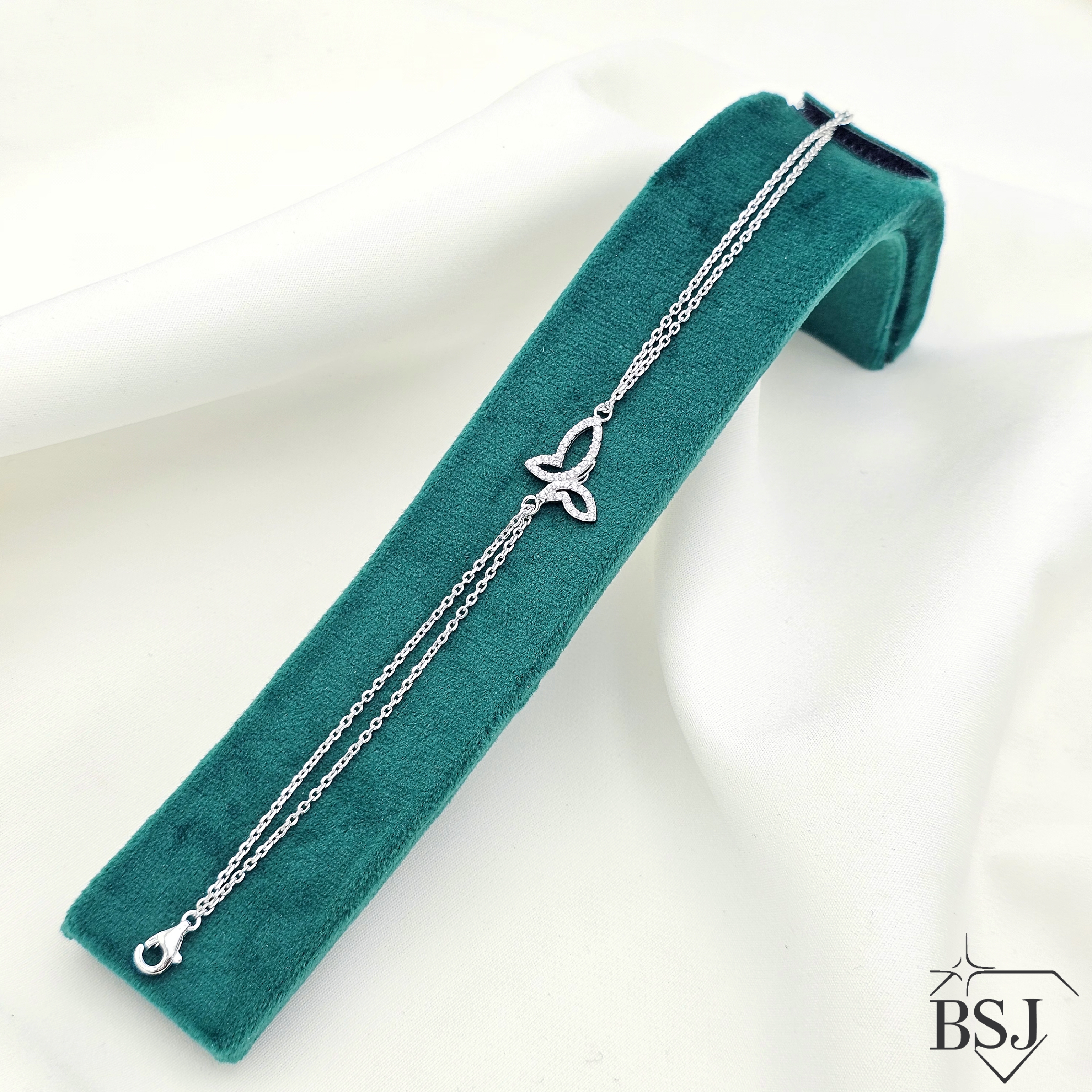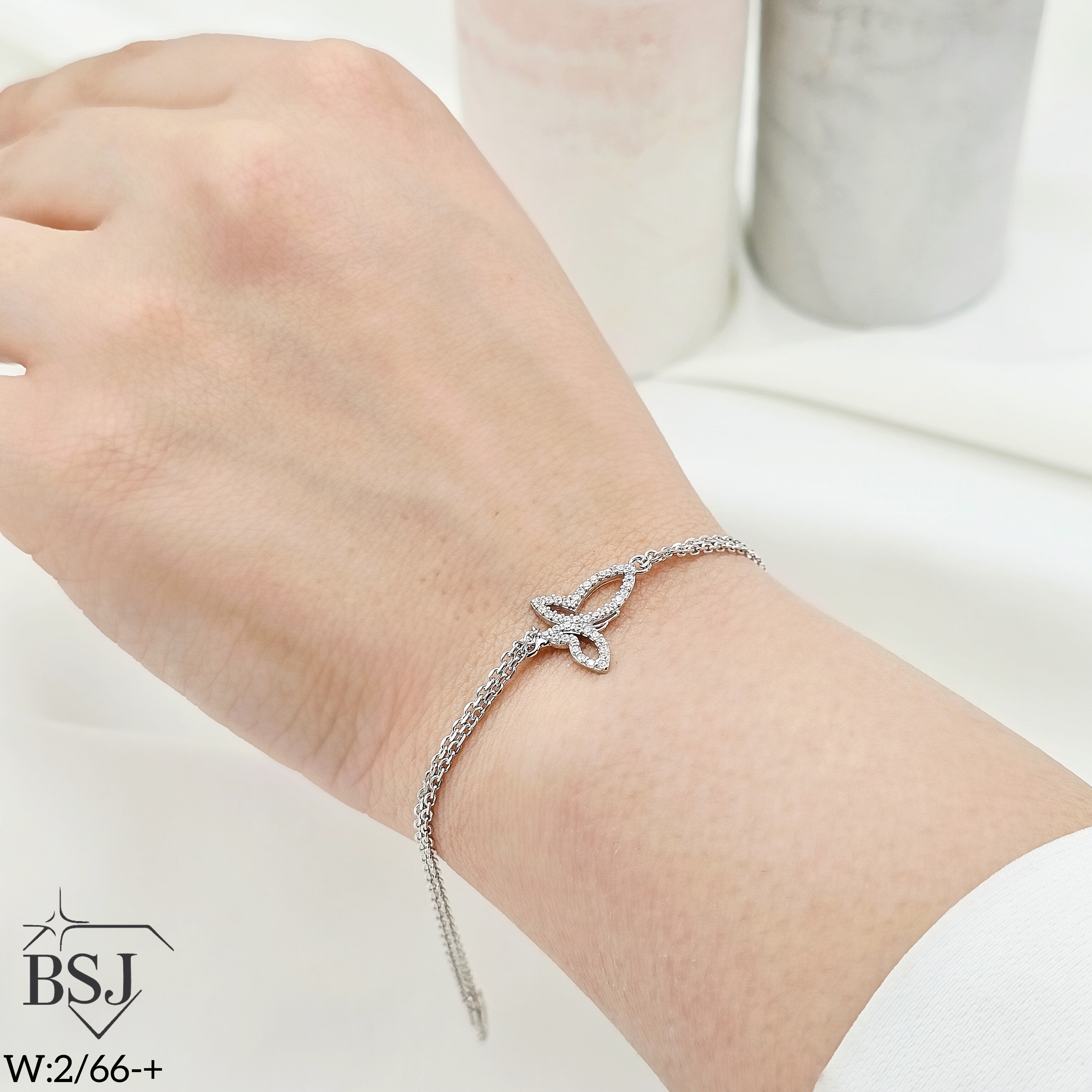 دستبند نقره زنانه BSJ_D594 یکی از دستبندهای پرفروش و زیبای ساخته شده از نقره با عیار 925 می باشد.سنگ های به کار رفته در آن برلیان از جنس اتمی زیرکونیا می باشند که به صورت میکروستینگ مخراج کاری شده اند و در برابر ضربه مقاوم اند.آبکاری دو مرحله ای رودیوم (طلا سفید)، سبب کیفیت بی نظیر دوام رنگ آن شده است و به دلیل عدم استفاده از نیکل در ساختار آن، بدون حساسیت بوده و با پوست حساس سازگار است.وزن دستبند 2.66 گرم می باشد.