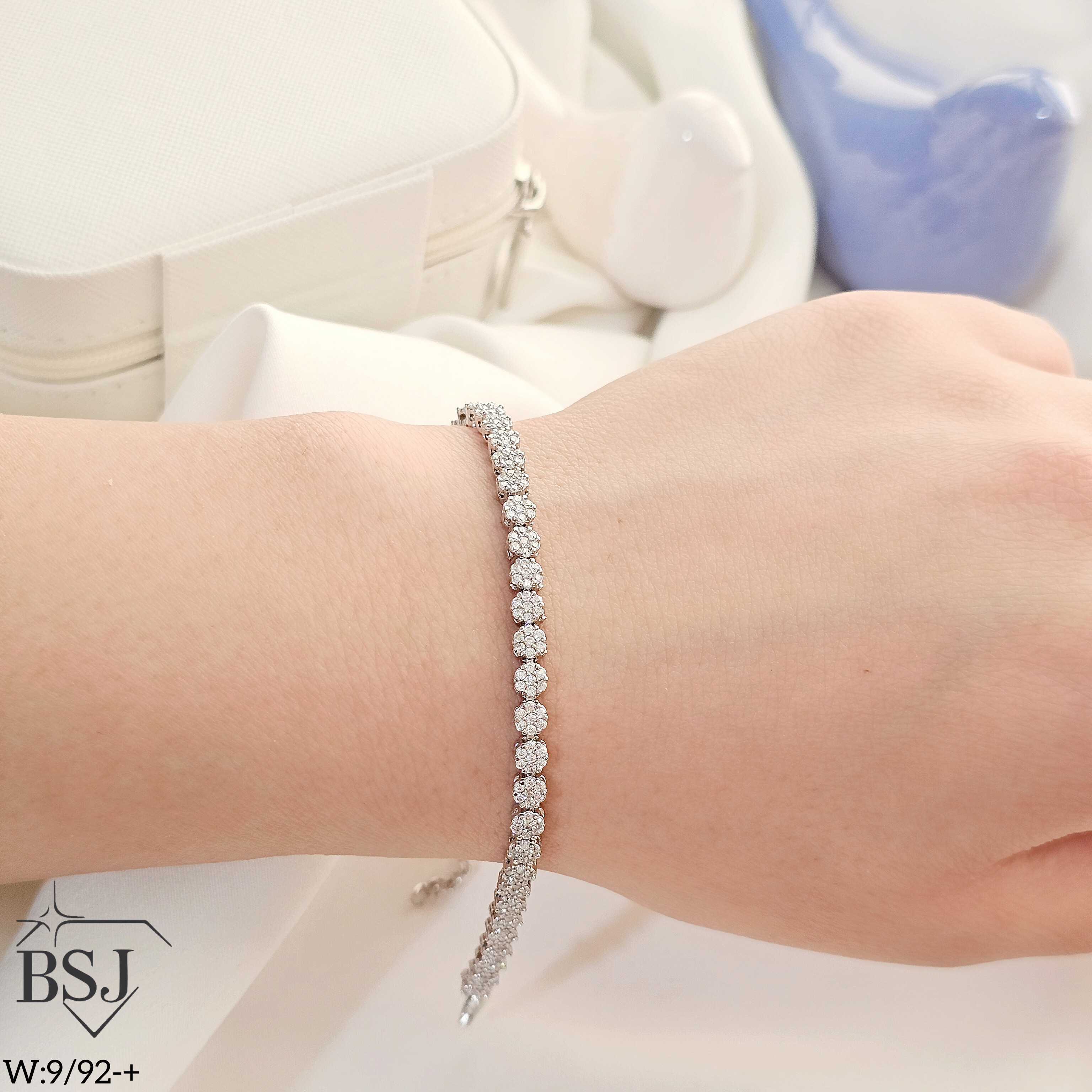 دستبند نقره BSJ_D596 یکی از دستبندهای مجلسی و ظریف ساخته شده از نقره با عیار 925 می باشد.سنگ های به کار رفته در آن برلیان از جنس اتمی زیرکونیا می باشند که به صورت میکروستینگ مخراج کاری شده اند و در برابر ضربه مقاوم اند.آبکاری دو مرحله ای رودیوم (طلا سفید)، سبب کیفیت بی نظیر دوام رنگ آن شده است و به دلیل عدم استفاده از نیکل در ساختار آن، بدون حساسیت بوده و با پوست حساس سازگار است.وزن تقریبی دستبند 9.92 گرم می باشد.