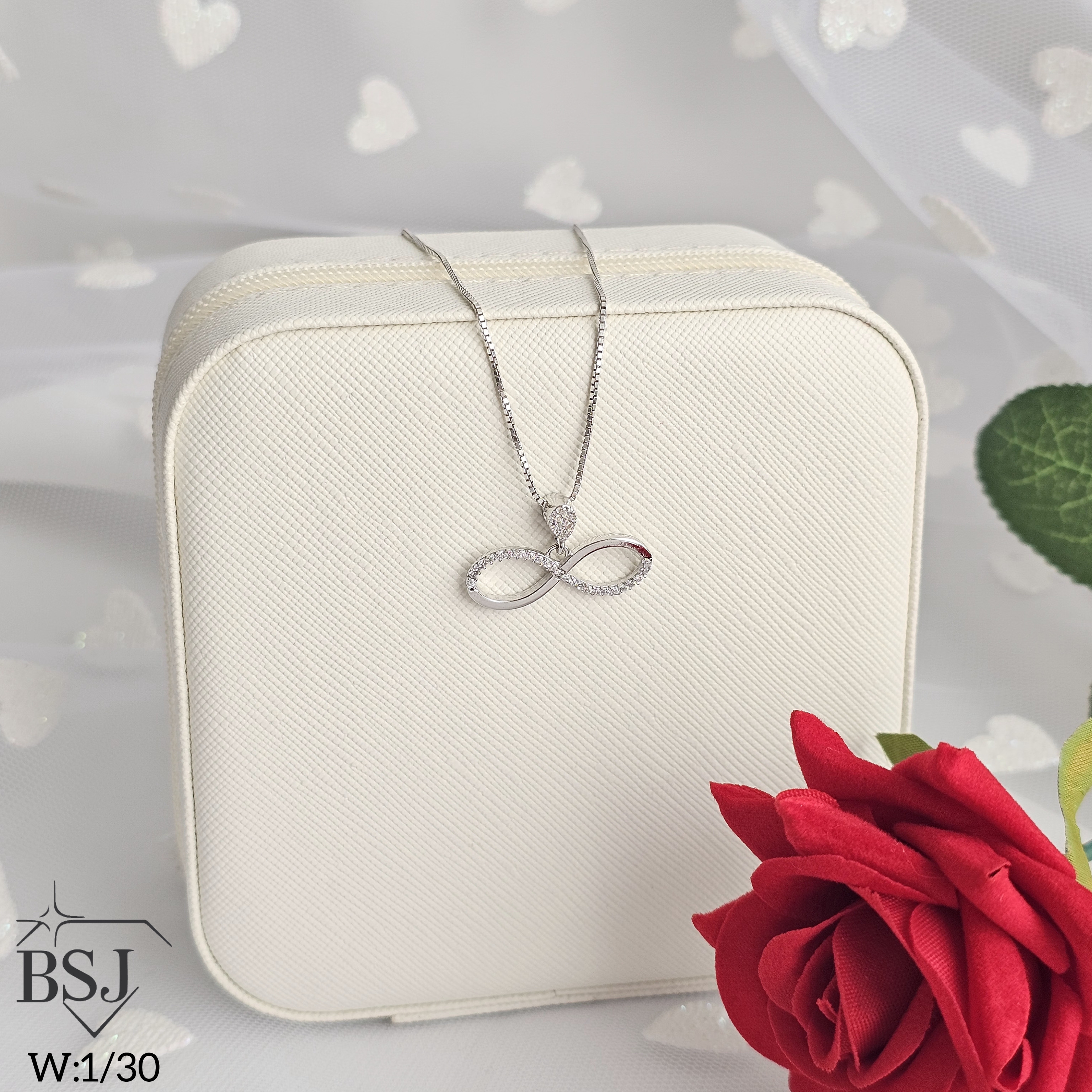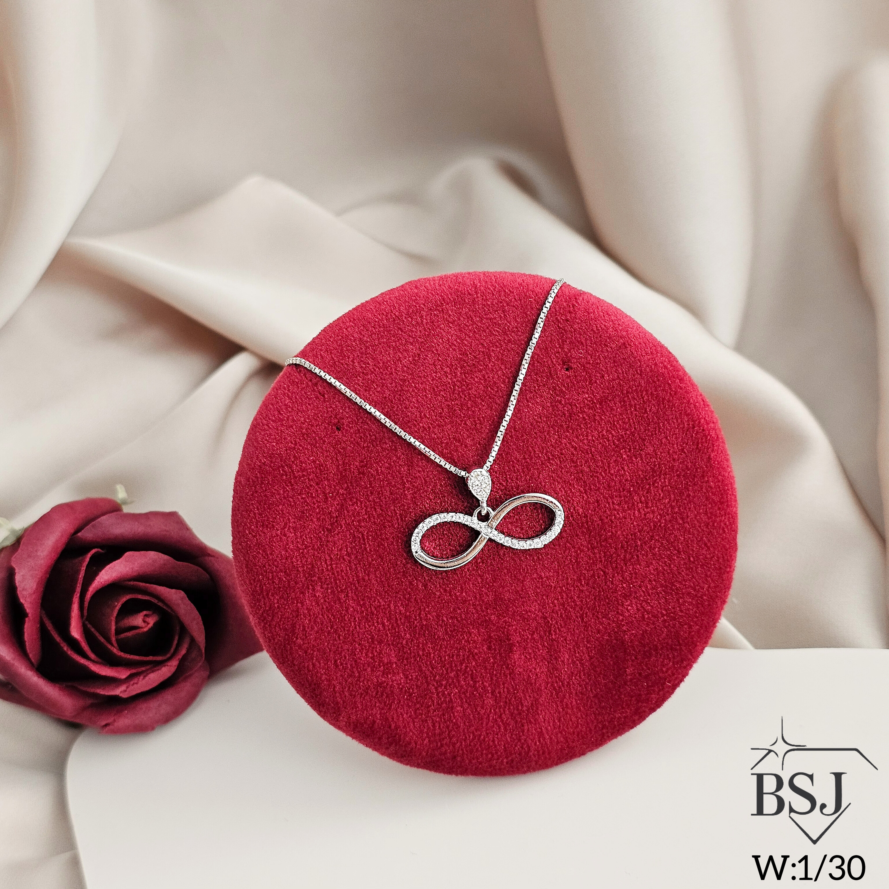 پلاک بینهایت نقره زنانه BSJ_G558 ازپلاک های ظریف ساخته شده از نقره با عیار 925 می باشد.سنگ های به کار رفته در آن برلیان از جنس اتمی زیرکونیا می باشند که به صورت میکروستینگ مخراج کاری شده اند و در برابر ضربه مقاوم اند.آبکاری دو مرحله ای رودیوم (طلا سفید)، سبب کیفیت بی نظیر دوام رنگ آن شده است و به دلیل عدم استفاده از نیکل در ساختار آن، بدون حساسیت بوده و با پوست حساس سازگار است.وزن این محصول 1.30 گرم می باشد.