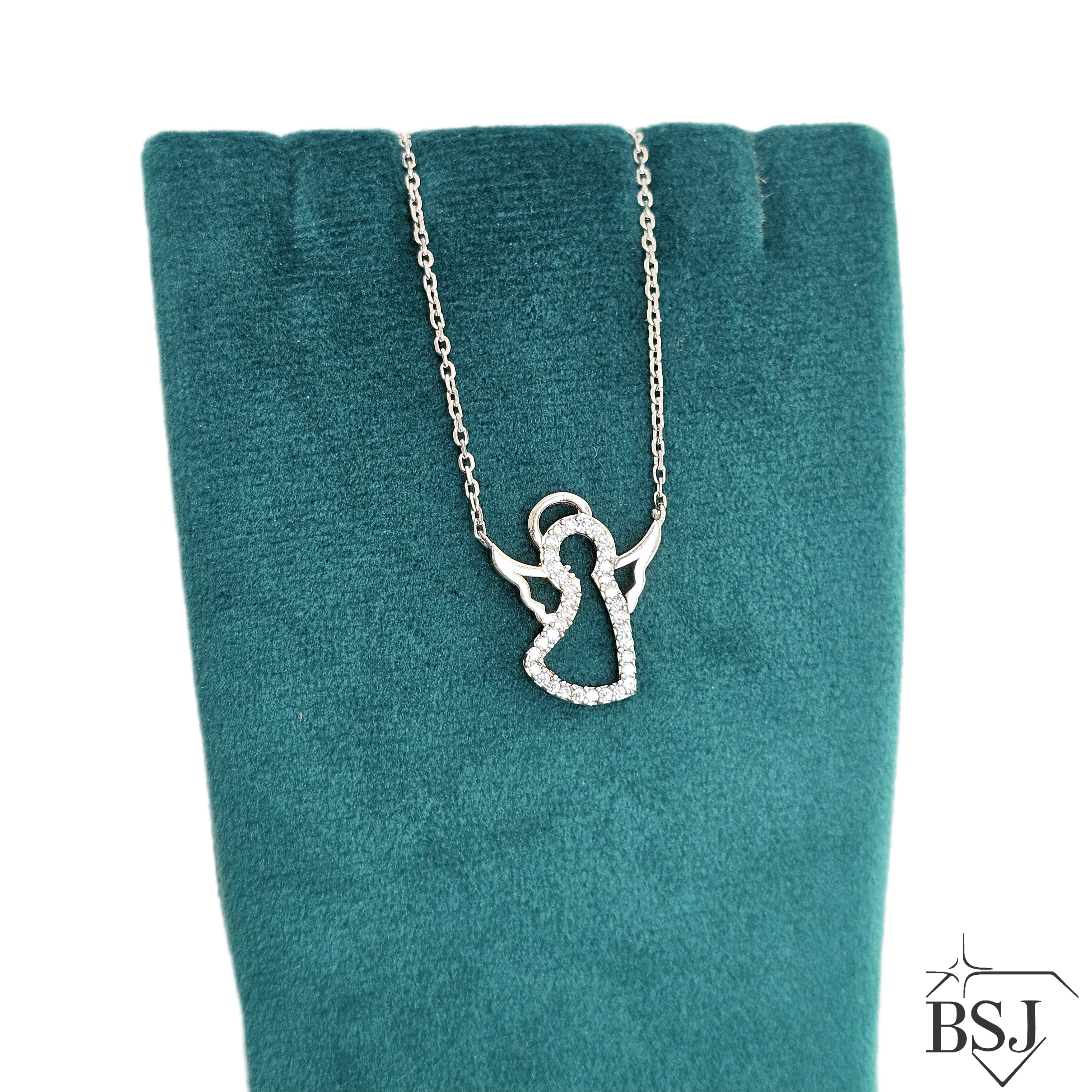 گردنبند زنجیری فرشته نقره زنانه BSJ_G562 از گردنبندهای ظریف ساخته شده از نقره با عیار 925 می باشد.سنگ های به کار رفته در آن برلیان از جنس اتمی زیرکونیا می باشند که به صورت میکروستینگ مخراج کاری شده اند و در برابر ضربه مقاوم اند.آبکاری دو مرحله ای رودیوم (طلا سفید)، سبب کیفیت بی نظیر دوام رنگ آن شده است و به دلیل عدم استفاده از نیکل در ساختار آن، بدون حساسیت بوده و با پوست حساس سازگار است.وزن این محصول 3.40 گرم می باشد.