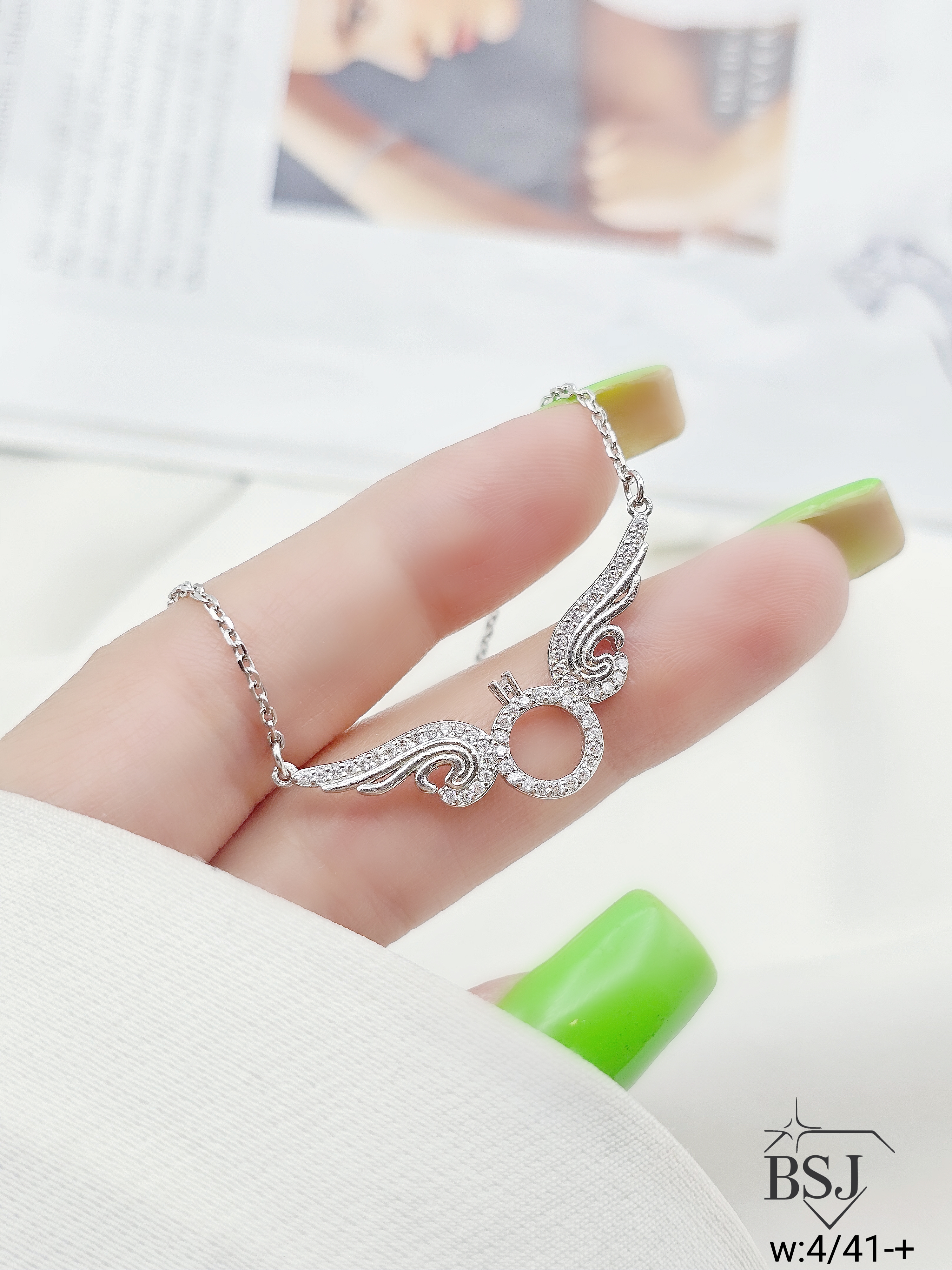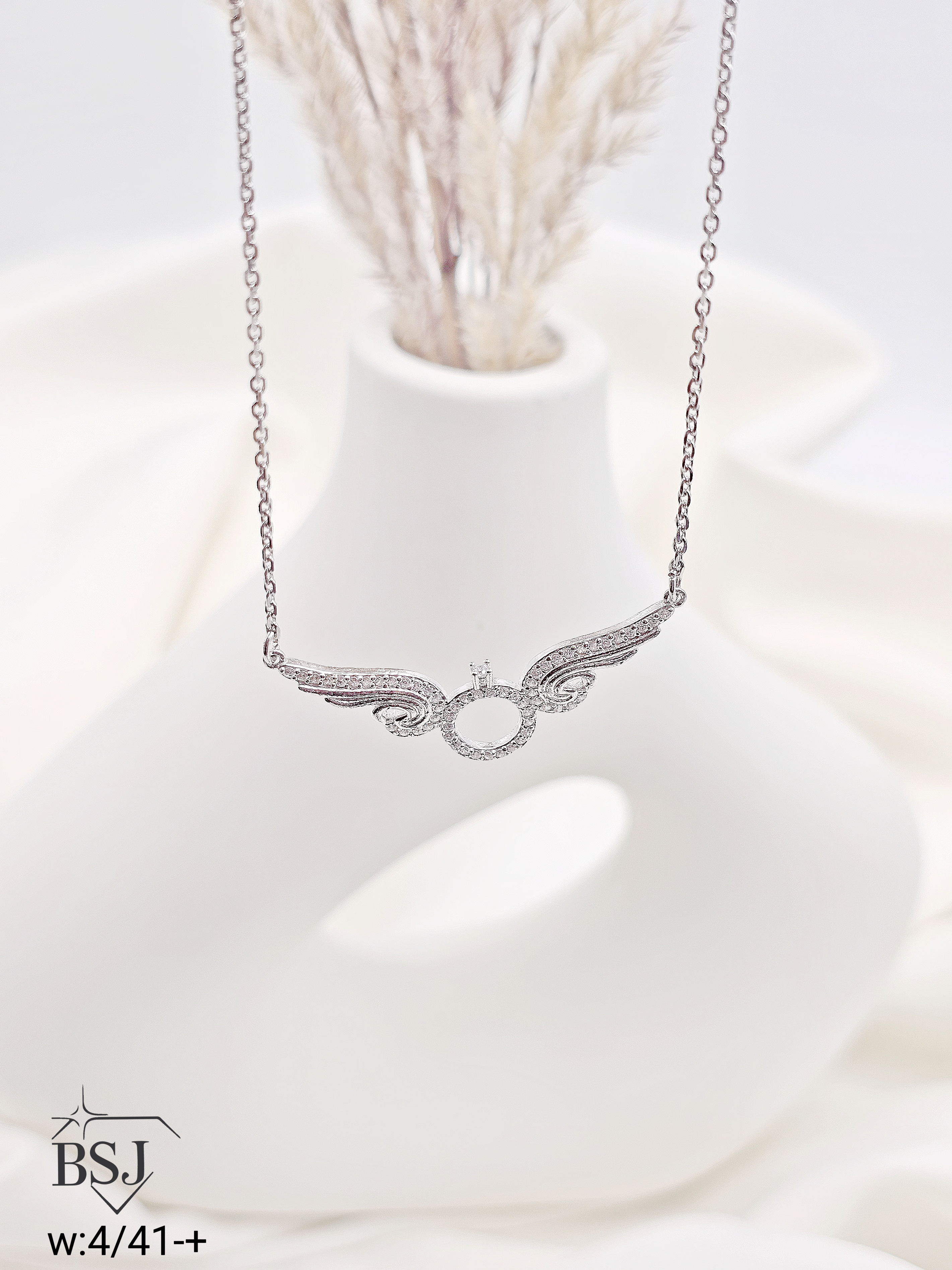 گردنبند زنجیری نقره زنانه BSJ_G570 به نماد تعهد از گردنبندهای ظریف ساخته شده از نقره با عیار 925 می باشد.سنگ های به کار رفته در آن برلیان از جنس اتمی زیرکونیا می باشند که به صورت میکروستینگ مخراج کاری شده اند و در برابر ضربه مقاوم اند.آبکاری دو مرحله ای رودیوم (طلا سفید)، سبب کیفیت بی نظیر دوام رنگ آن شده است و به دلیل عدم استفاده از نیکل در ساختار آن، بدون حساسیت بوده و با پوست حساس سازگار است.وزن این محصول 4.41 گرم می باشد.