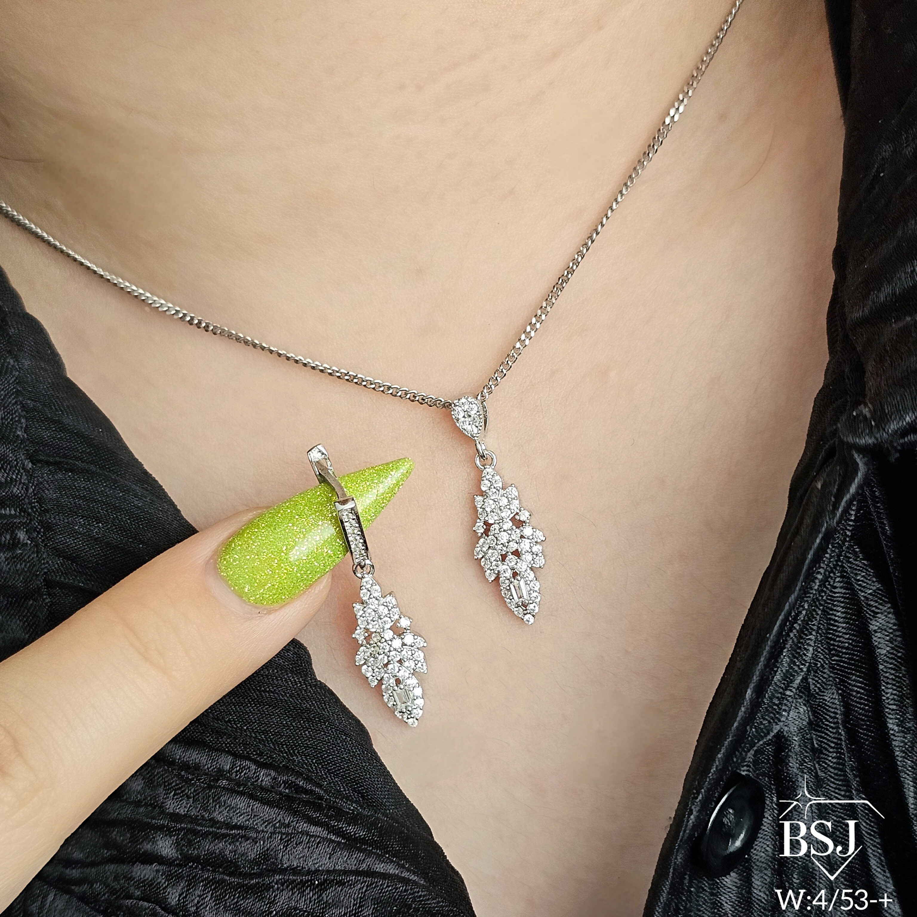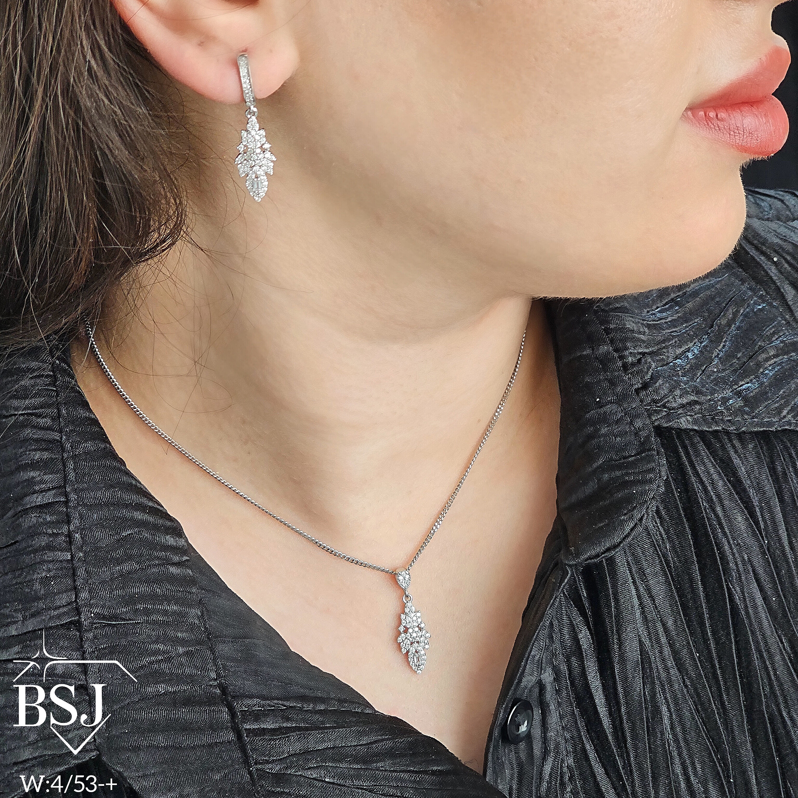 نیمست نقره زنانه BSJ_N610 یکی از نیمست های مجلسی و شیک ساخته شده از نقره با عیار 925 می باشد.سنگ های به کار رفته در آن برلیان از جنس اتمی زیرکونیا می باشند که به صورت میکروستینگ مخراج کاری شده اند و در برابر ضربه مقاوم اند.آبکاری دو مرحله ای رادیوم(طلا سفید)، سبب کیفیت بی نظیر دوام رنگ آن شده است و به دلیل عدم استفاده از نیکل در ساختار آن، بدون حساسیت بوده و با پوست حساس سازگار است.به دلیل کیفیت فوق العاده و درخشش عالی سنگ های آن، تفاوتی با نمونه طلا ندارد.وزن نیمست بدون زنجیر 4.53 گرم می باشد.