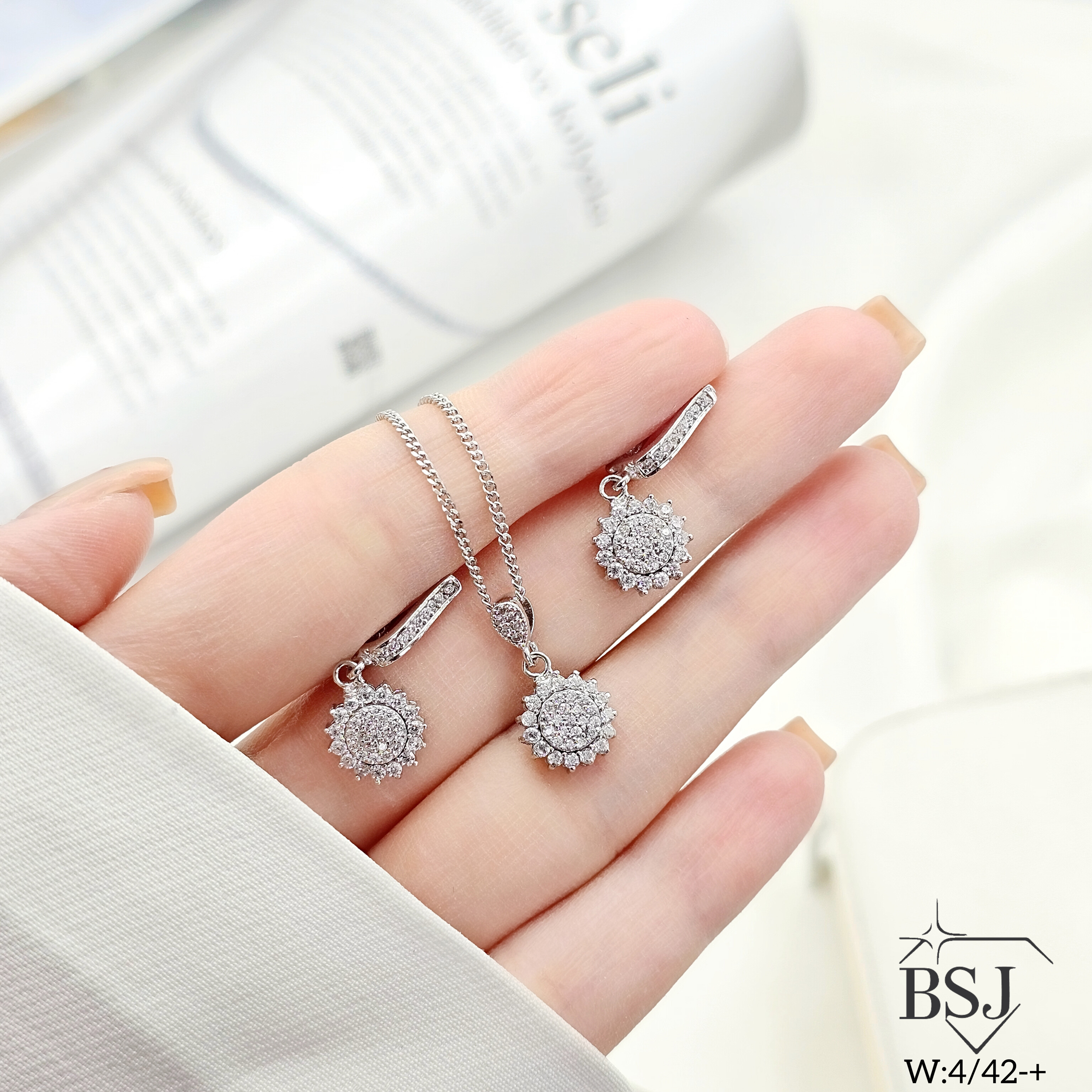 نیمست نقره زنانه BSJ_N600 یکی از نیمست های مجلسی و شیک ساخته شده از نقره با عیار 925 می باشد.سنگ های به کار رفته در آن برلیان از جنس اتمی زیرکونیا می باشند که به صورت میکروستینگ مخراج کاری شده اند و در برابر ضربه مقاوم اند.آبکاری دو مرحله ای رادیوم(طلا سفید)، سبب کیفیت بی نظیر دوام رنگ آن شده است و به دلیل عدم استفاده از نیکل در ساختار آن، بدون حساسیت بوده و با پوست حساس سازگار است.به دلیل کیفیت فوق العاده و درخشش عالی سنگ های آن، تفاوتی با نمونه طلا ندارد.وزن نیمست بدون زنجیر 4.42 گرم می باشد.
