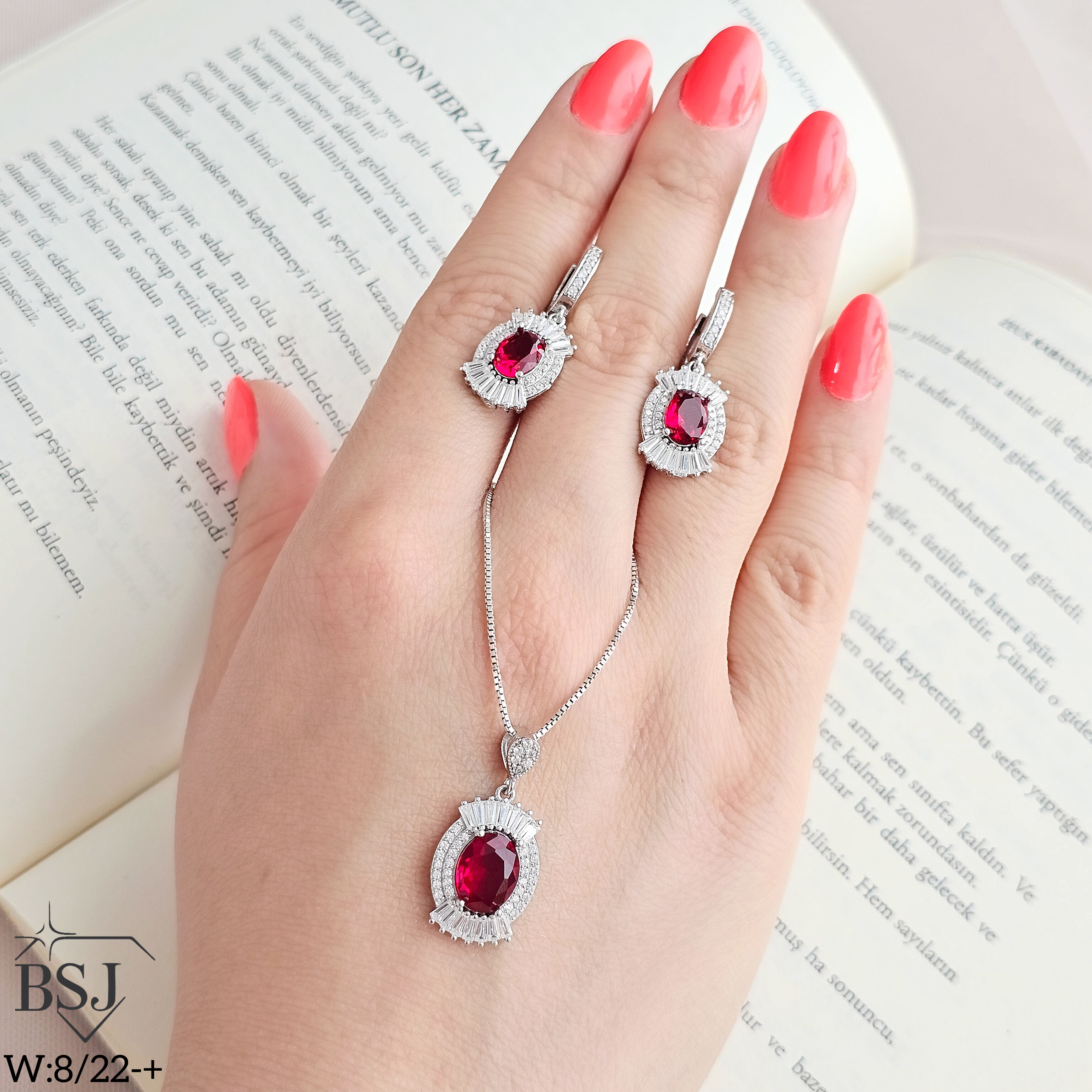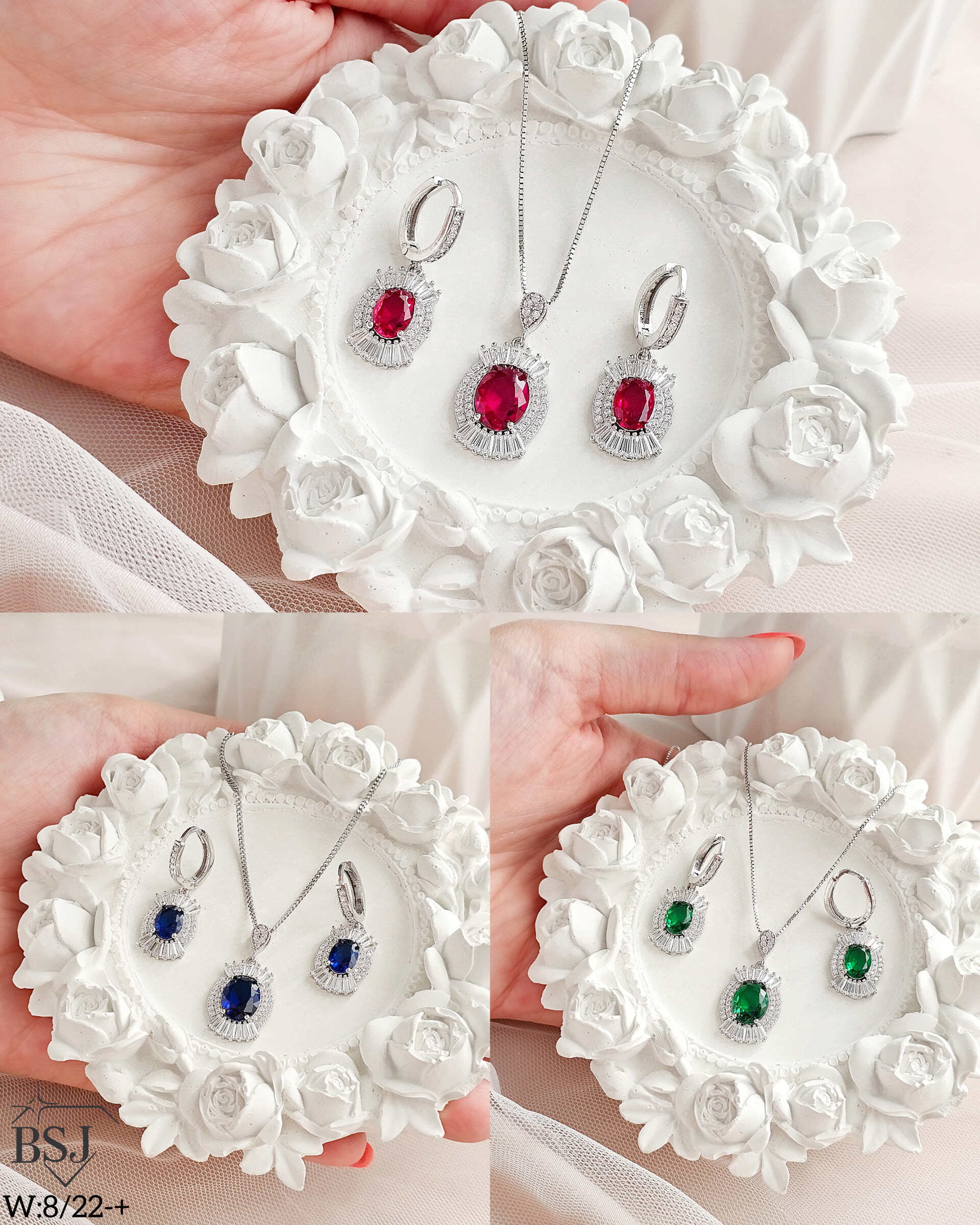 نیمست نقره جواهری زنانه BSJ_N608 از نیمست های لوکس و جذاب ساخته شده از نقره با عیار 925 می باشد.سنگ های به کار رفته در آن برلیان از جنس اتمی زیرکونیا و سنگ های رنگی سنتتیک (آزمایشگاهی) می باشند که به صورت میکروستینگ مخراج کاری شده اند و در برابر ضربه مقاوم اند.آبکاری دو مرحله ای رودیوم(طلا سفید)، سبب کیفیت بی نظیر دوام رنگ آن شده است و به دلیل عدم استفاده از نیکل در ساختار آن، بدون حساسیت بوده و با پوست حساس سازگار است.به دلیل کیفیت فوق العاده و درخشش عالی آن، تفاوتی با نمونه طلا ندارد.وزن نیمست بدون زنجیر 8.22 گرم می باشد.