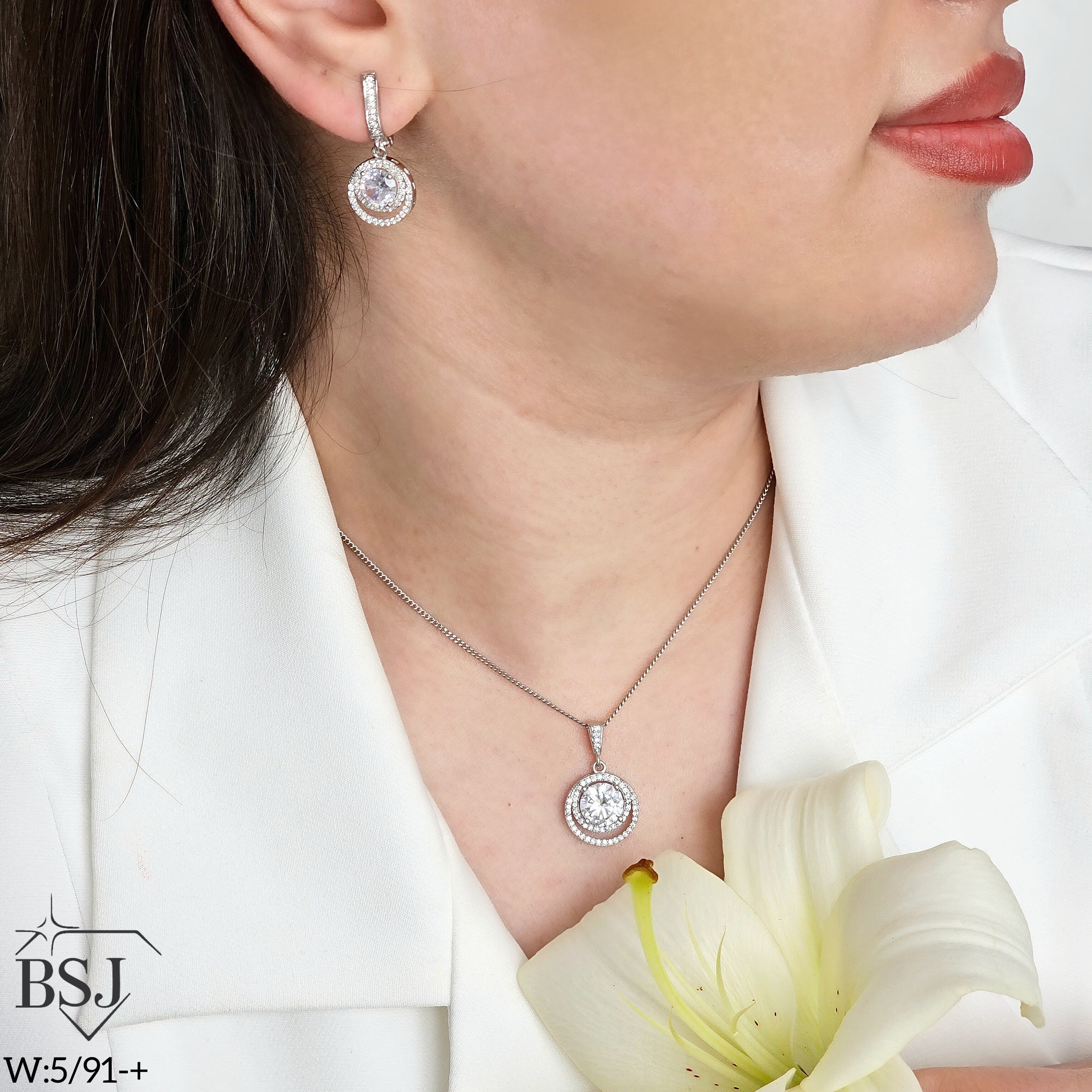 نیمست نقره زنانه BSJ_N612 یکی از نیمست های مجلسی و شیک ساخته شده از نقره با عیار 925 می باشد.سنگ های به کار رفته در آن برلیان از جنس اتمی زیرکونیا می باشند که به صورت میکروستینگ مخراج کاری شده اند و در برابر ضربه مقاوم اند.آبکاری دو مرحله ای رادیوم(طلا سفید)، سبب کیفیت بی نظیر دوام رنگ آن شده است و به دلیل عدم استفاده از نیکل در ساختار آن، بدون حساسیت بوده و با پوست حساس سازگار است.به دلیل کیفیت فوق العاده و درخشش عالی سنگ های آن، تفاوتی با نمونه طلا ندارد.وزن نیمست بدون زنجیر 5.91 گرم می باشد.
