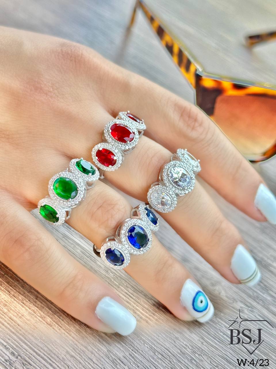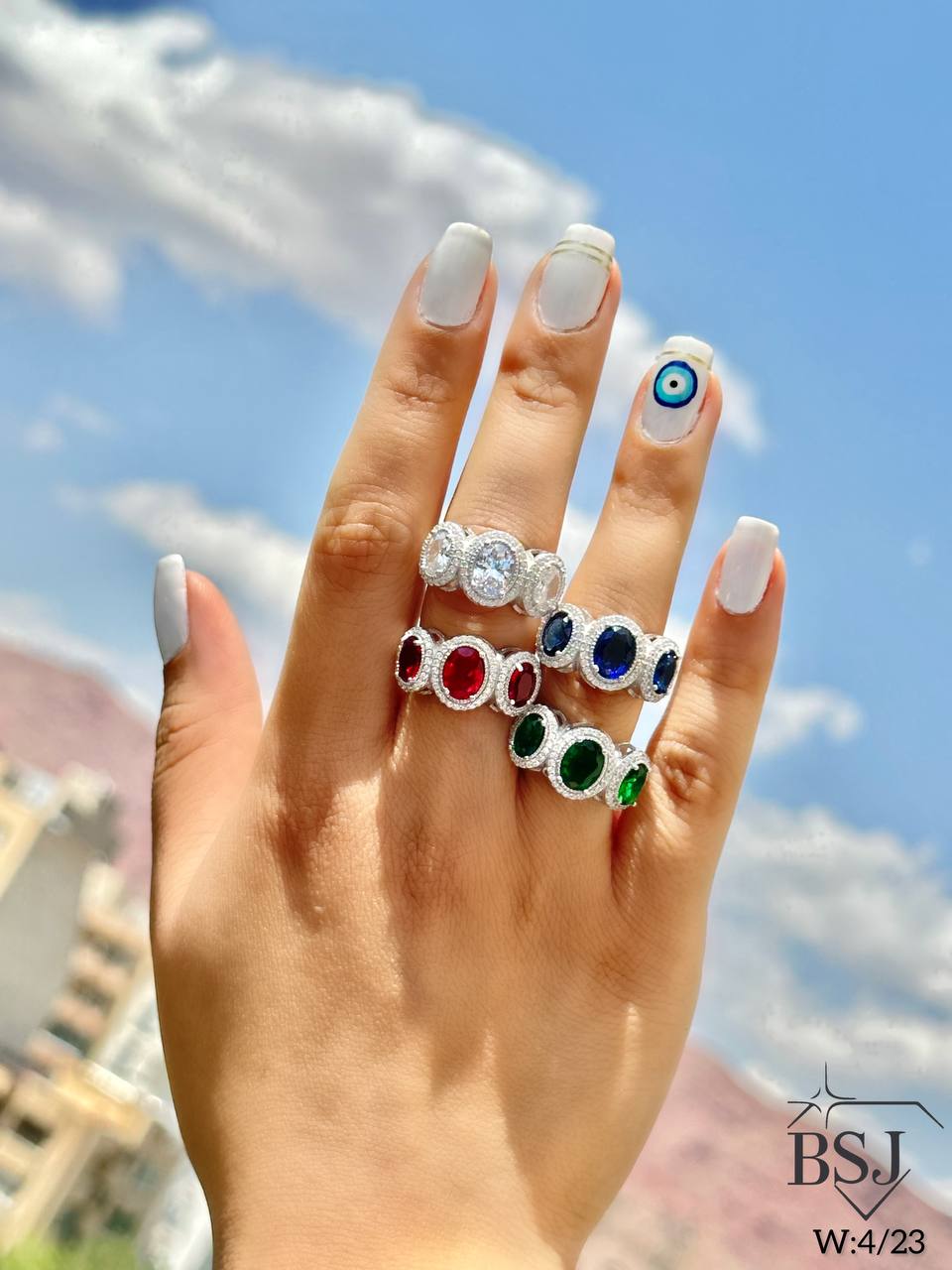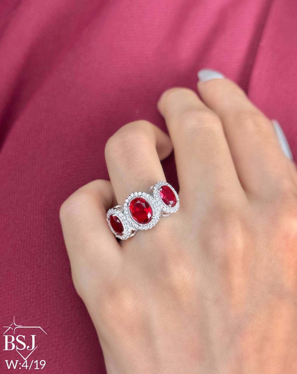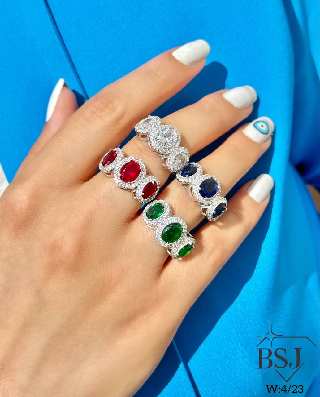 انگشتر نقره BSJ_r174 یکی از زیباترین انگشترهای ساخته شده از نقره با عیار 925 می باشد.سنگ های به کار رفته در آن برلیان از جنس اتمی زیرکونیا و نگین های یاقوت سنتتیک (آزمایشگاهی) که در چهار رنگ جذاب تولید شده است می باشند.سنگ ها به صورت میکروستینگ مخراج کاری شده اند و در برابر ضربه مقاوم اند.آبکاری دو مرحله ای رودیوم(طلا سفید)، سبب کیفیت بی نظیر دوام رنگ آن شده است و به دلیل عدم استفاده از نیکل در ساختار آن، بدون حساسیت بوده و با پوست حساس سازگار است.به دلیل کیفیت فوق العاده و درخشش عالی، تفاوتی با نمونه طلا ندارد.وزن انگشتر 4.23 گرم می باشد.