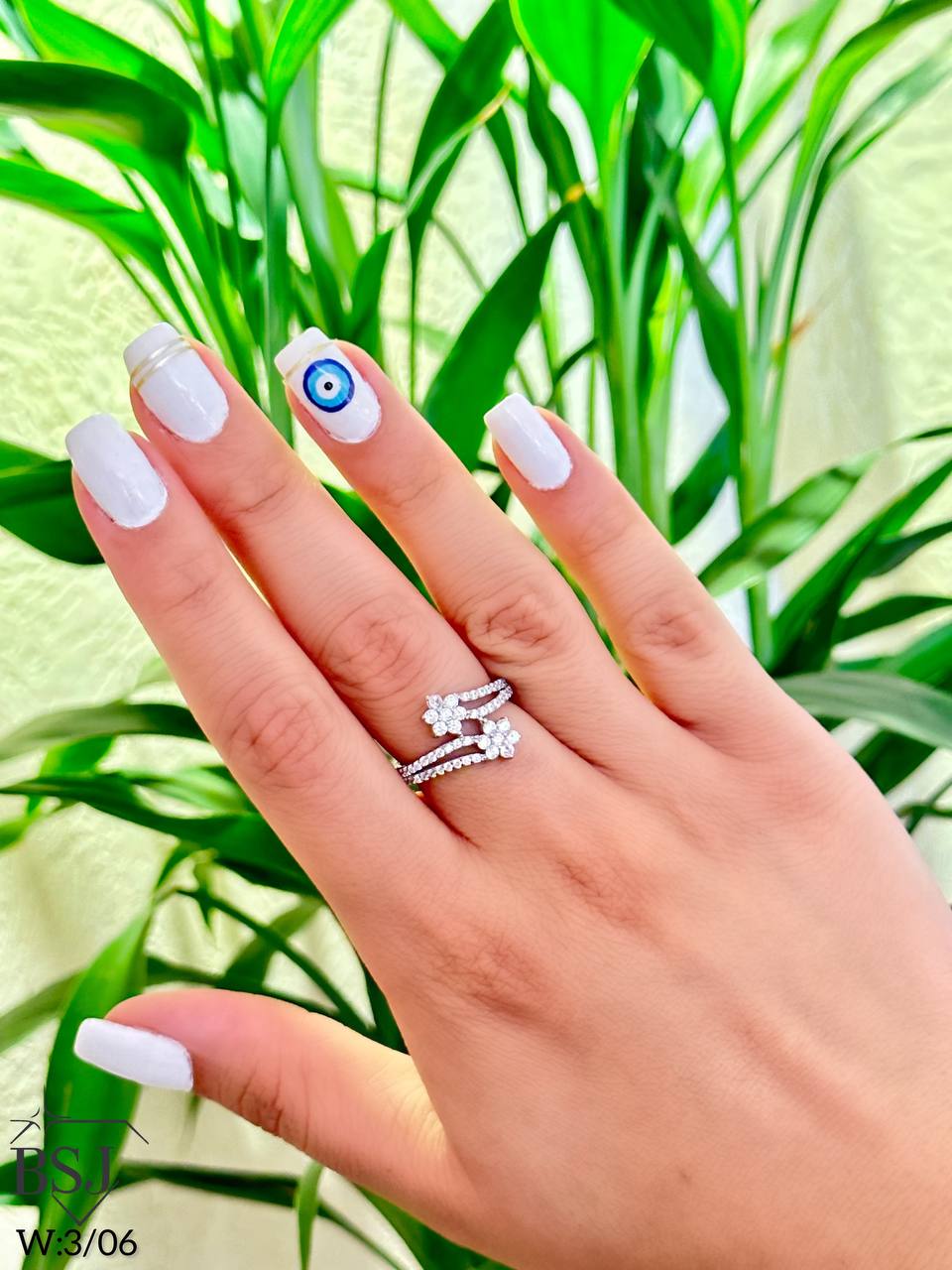 انگشتر نقره BSJ_r178 یکی از انگشترهای فانتزی زیبای ساخته شده از نقره با عیار 925 می باشد.سنگ های به کار رفته در آن برلیان از جنس اتمی زیرکونیا می باشند که به صورت میکروستینگ مخراج کاری شده اند و در برابر ضربه مقاوم اند.آبکاری دو مرحله ای رودیوم(طلا سفید)، سبب کیفیت بی نظیر دوام رنگ آن شده است و به دلیل عدم استفاده از نیکل در ساختار آن، بدون حساسیت بوده و با پوست حساس سازگار است.به دلیل کیفیت فوق العاده و درخشش عالی، تفاوتی با نمونه طلا ندارد.وزن انگشتر 3.06 گرم می باشد.
