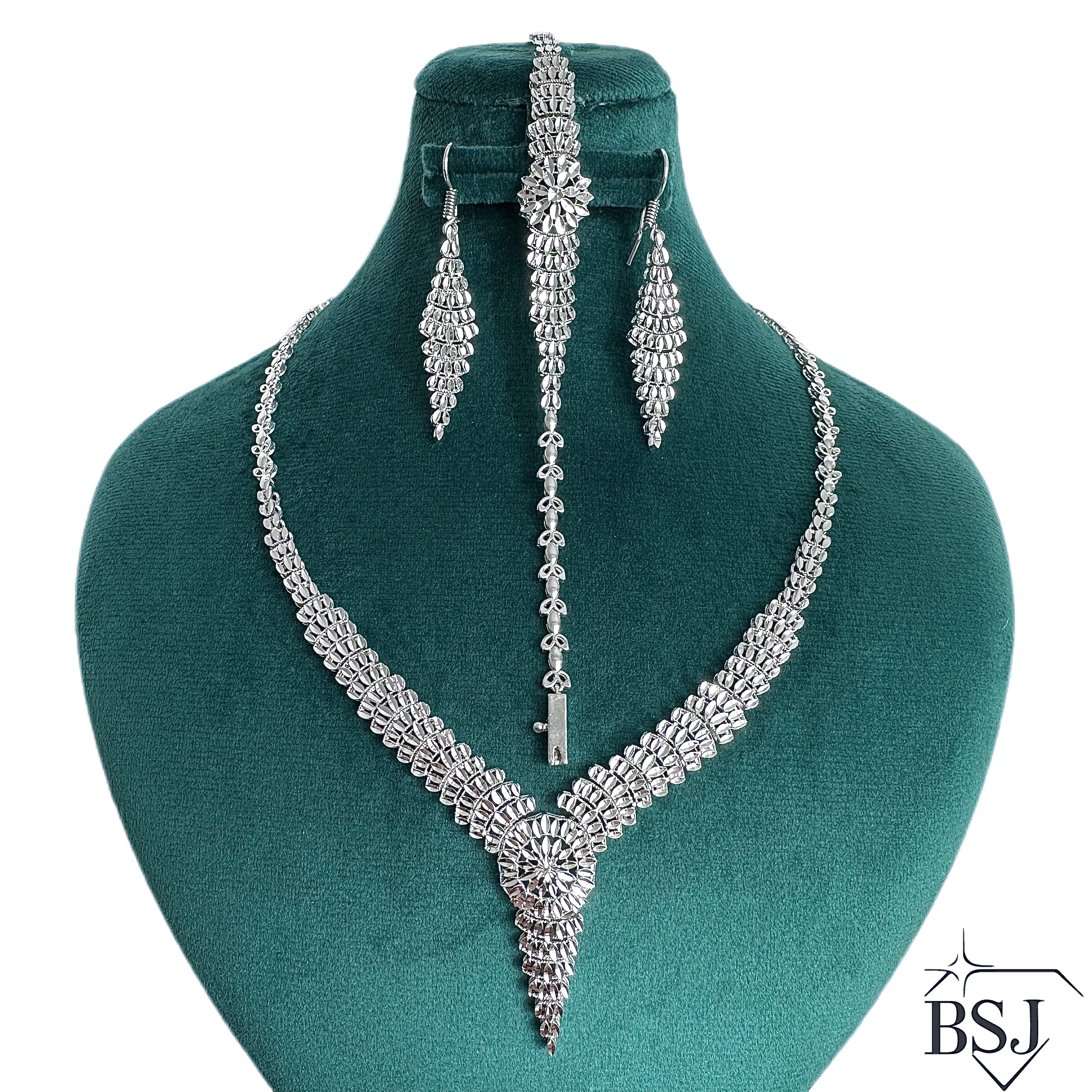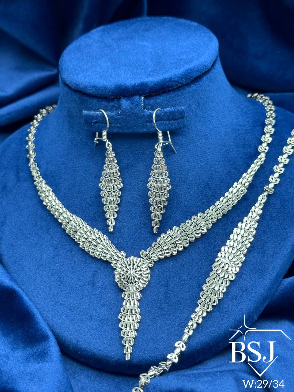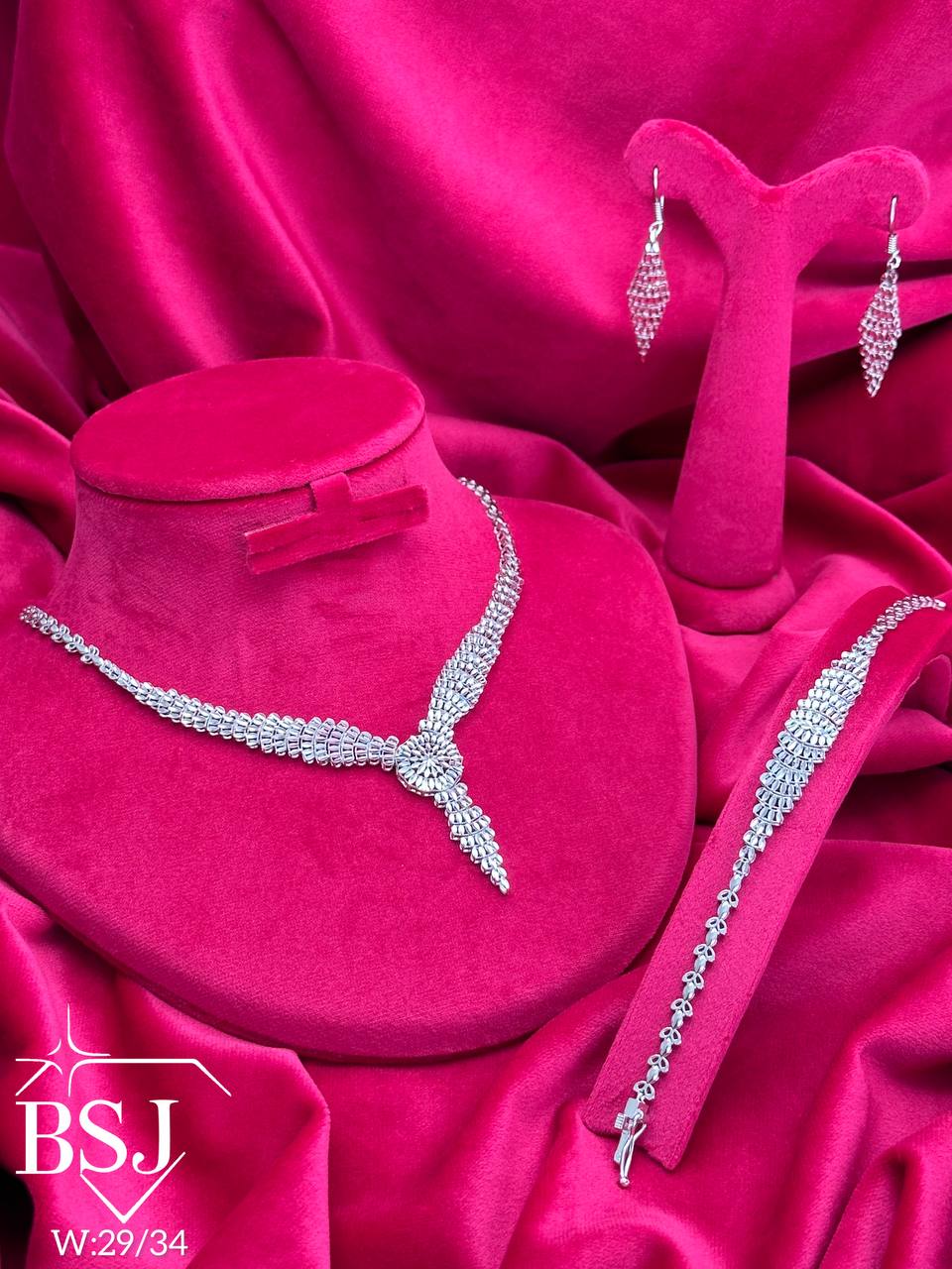 سرویس نقره تراش زنانه BSJ_S196 یکی از سرویس های لوکس ساخته شده از نقره با عیار 925 می باشد.این سرویس زیبا، بدون نگین و کاملا تراش بوده است.آبکاری دو مرحله ای رودیوم (طلا سفید)، سبب کیفیت بی نظیر دوام رنگ آن شده است و به دلیل عدم استفاده از نیکل در ساختار آن، بدون حساسیت بوده و با پوست حساس سازگار است.به دلیل کیفیت فوق العاده آبکاری آن، تفاوتی با نمونه طلا ندارد.وزن سرویس 29.34 گرم می باشد.