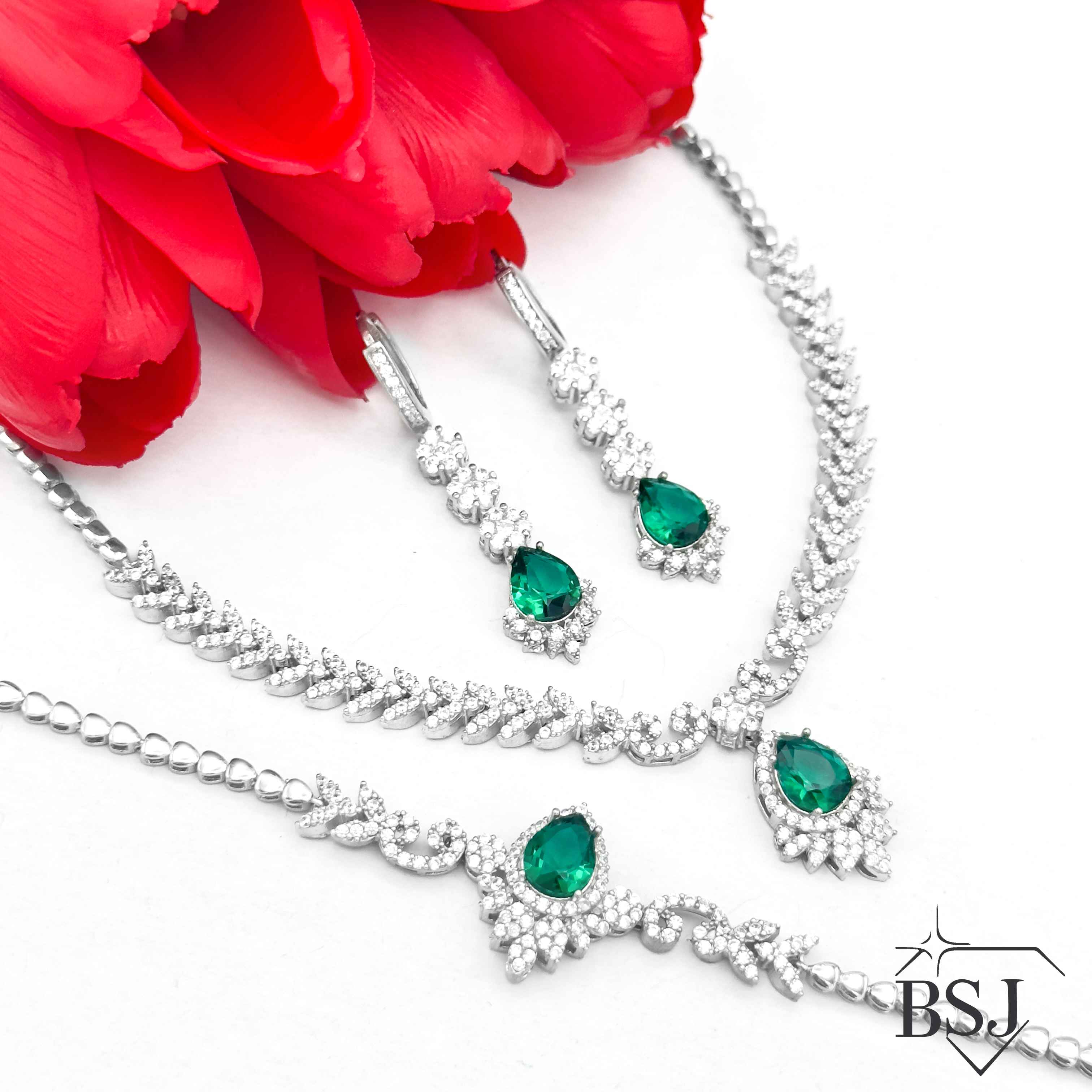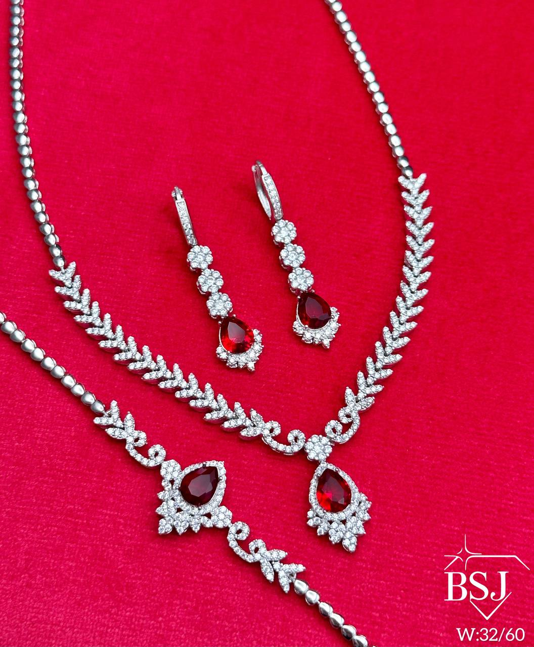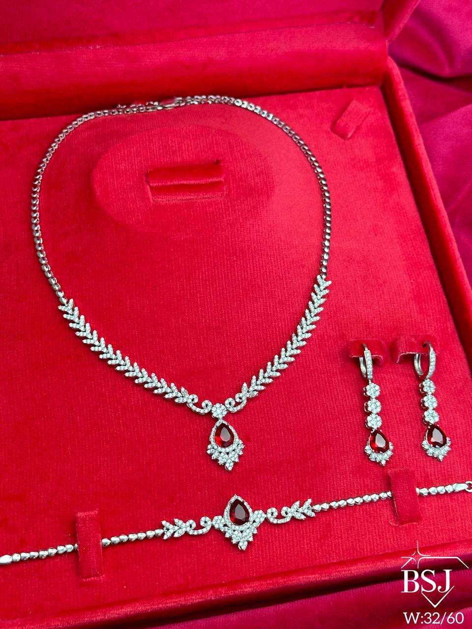 سرویس نقره جواهری زنانه BSJ_S273 از سرویس های مجلسی ساخته شده از نقره با عیار 925 می باشد.سنگ های به کار رفته در آن برلیان و از جنس اتمی زیرکونیا و سنگ های یاقوت سنتتیک (آزمایشگاهی) می باشند که به صورت میکروستینگ مخراج کاری شده اند و در برابر ضربه مقاوم اند.آبکاری دو مرحله ای رودیوم (طلا سفید)، سبب کیفیت بی نظیر دوام رنگ آن شده است و به دلیل عدم استفاده از نیکل در ساختار آن، بدون حساسیت بوده و با پوست حساس سازگار است.به دلیل کیفیت فوق العاده و درخشش عالی سنگ ها، تفاوتی با نمونه طلا ندارد.وزن سرویس 32.60گرم می باشد.