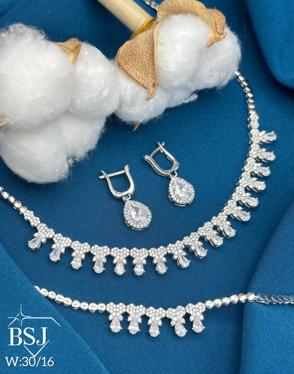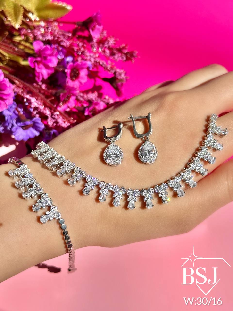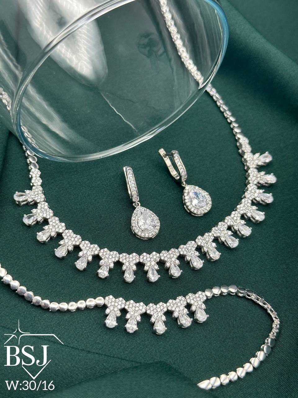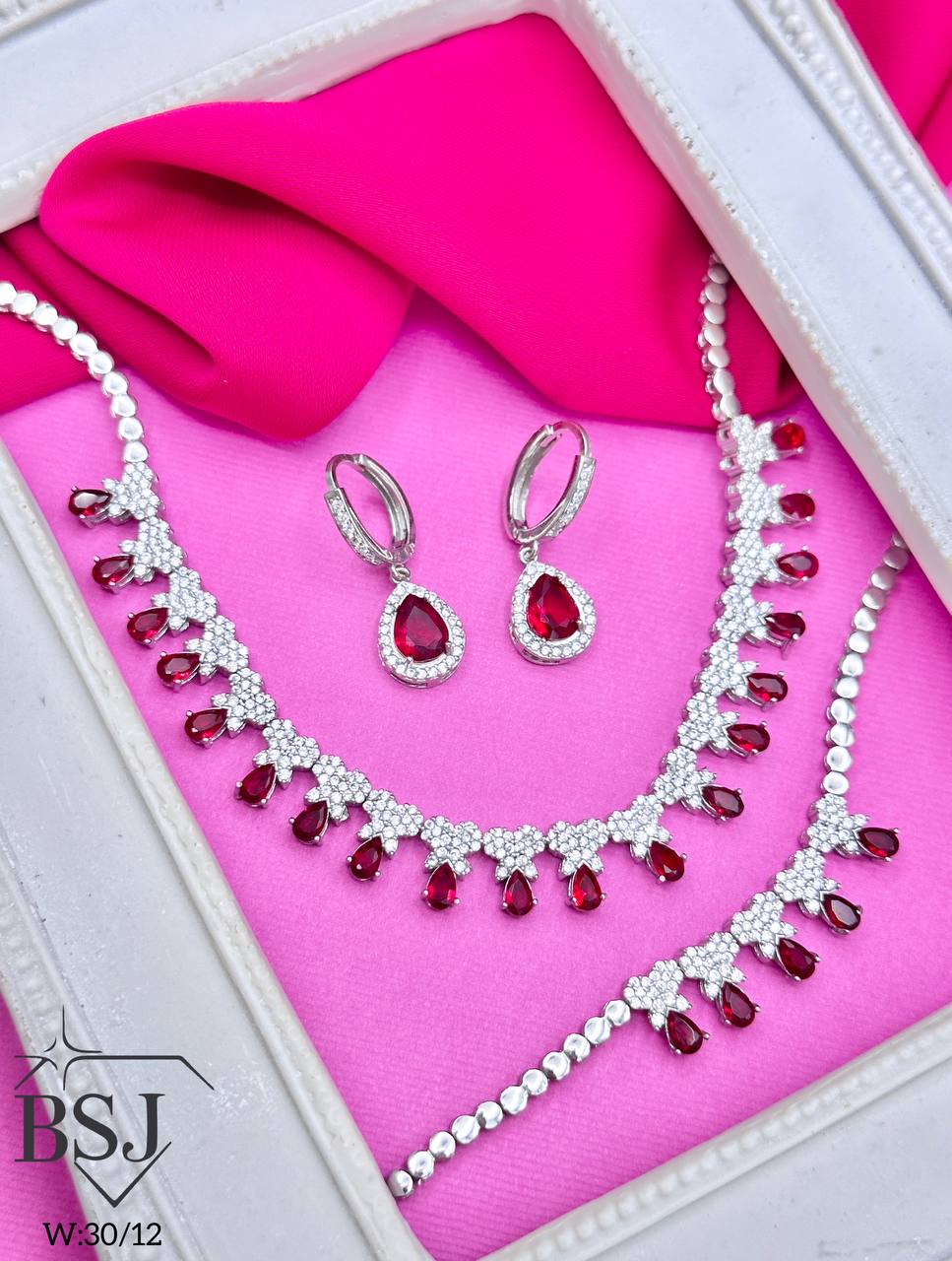 سرویس نقره جواهری زنانه BSJ_S290 از سرویس های اعیانی ساخته شده از نقره با عیار 925 می باشد.سنگ های به کار رفته در آن برلیان و از جنس اتمی زیرکونیا و نگین های سفید و قرمز سنتتیک (آزمایشگاهی) به شکل اشک می باشند که به صورت میکروستینگ مخراج کاری شده اند و در برابر ضربه مقاوم اند.آبکاری دو مرحله ای رودیوم (طلا سفید)، سبب کیفیت بی نظیر دوام رنگ آن شده است و به دلیل عدم استفاده از نیکل در ساختار آن، بدون حساسیت بوده و با پوست حساس سازگار است.به دلیل کیفیت فوق العاده و درخشش عالی سنگ ها، تفاوتی با نمونه طلا ندارد.وزن سرویس 30.16 گرم می باشد.