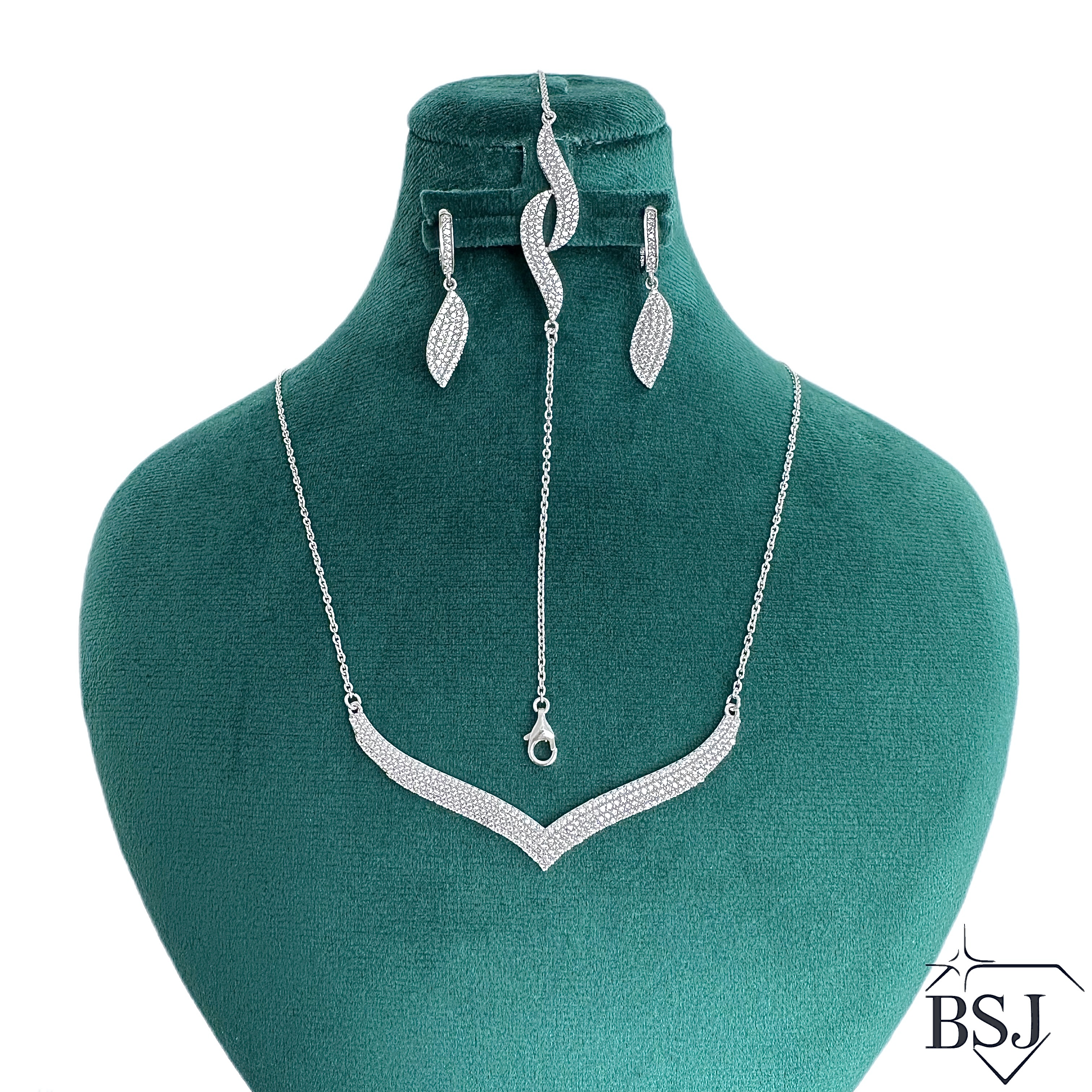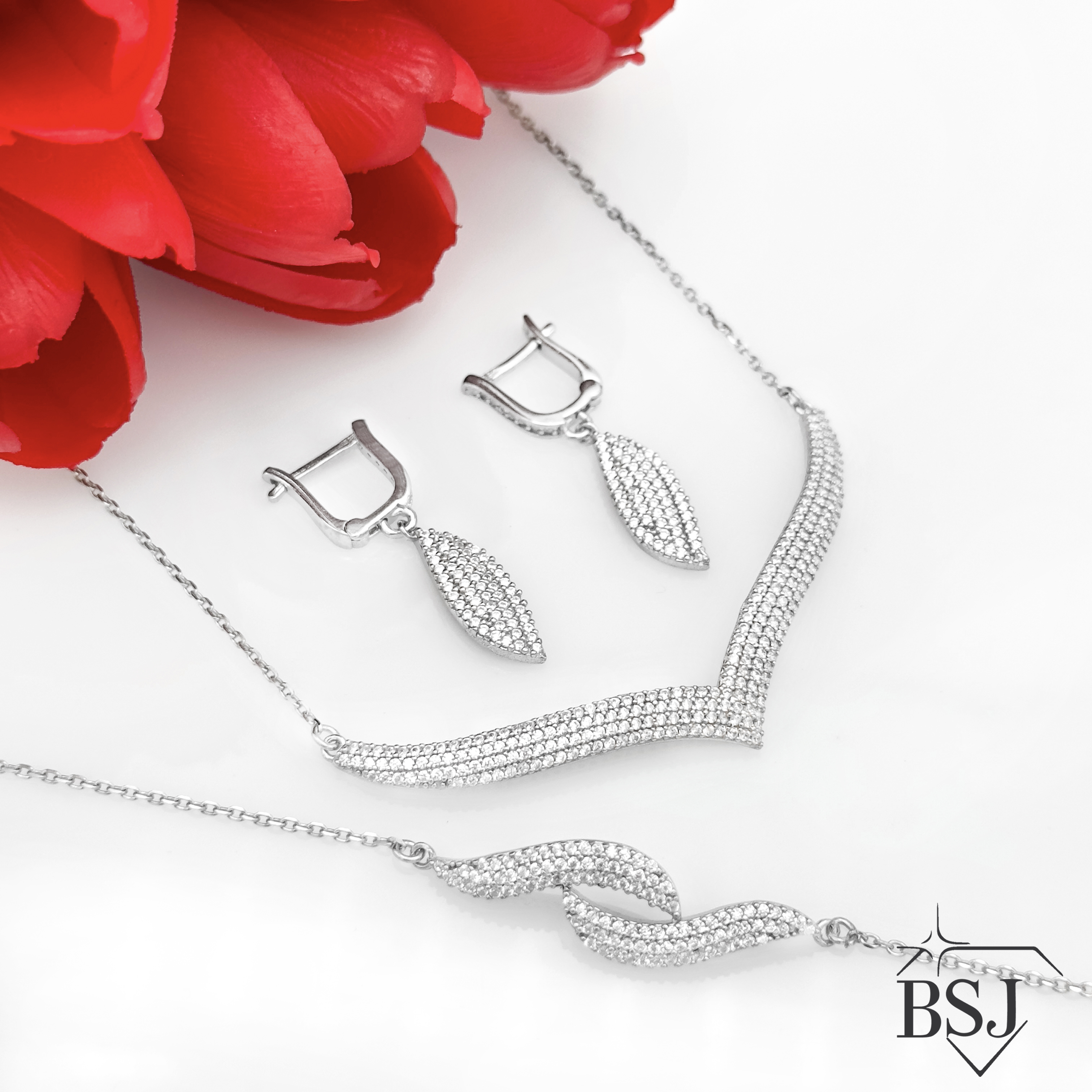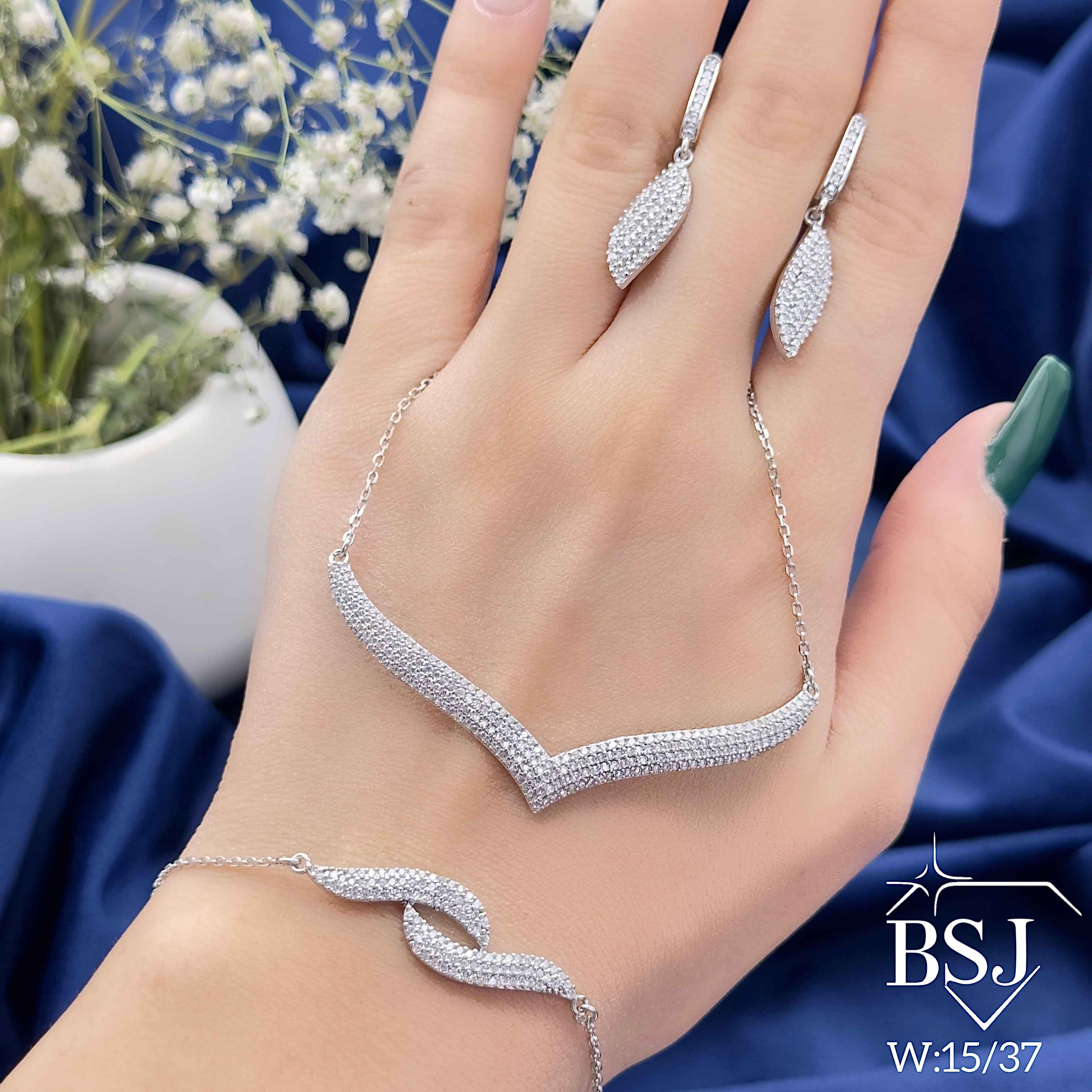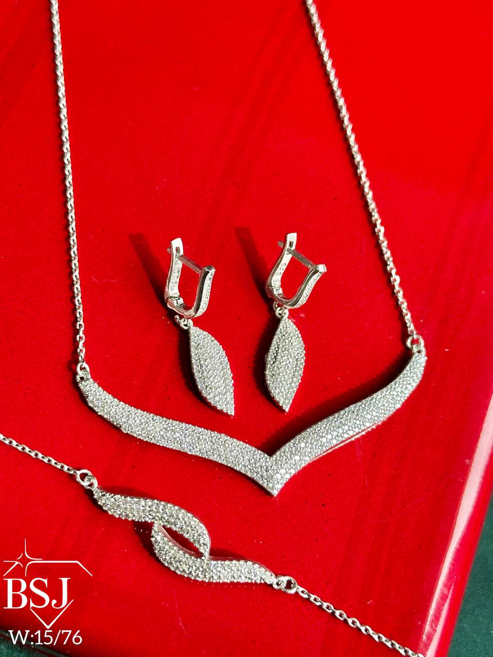 سرویس نقره زنجیری زنانه BSJ_S392 از سرویس های اعیانی ساخته شده از نقره با عیار 925 می باشد.سنگ های به کار رفته در آن برلیان از جنس اتمی زیرکونیا می باشند که به صورت میکروستینگ مخراج کاری شده اند و در برابر ضربه مقاوم اند.آبکاری دو مرحله ای رودیوم (طلا سفید)، سبب کیفیت بی نظیر دوام رنگ آن شده است و به دلیل عدم استفاده از نیکل در ساختار آن،بدون حساسیت بوده و با پوست حساس سازگار است.به دلیل کیفیت فوق العاده و درخشش عالی سنگ ها، تفاوتی با نمونه طلا ندارد.وزن سرویس 15.76 گرم می باشد.