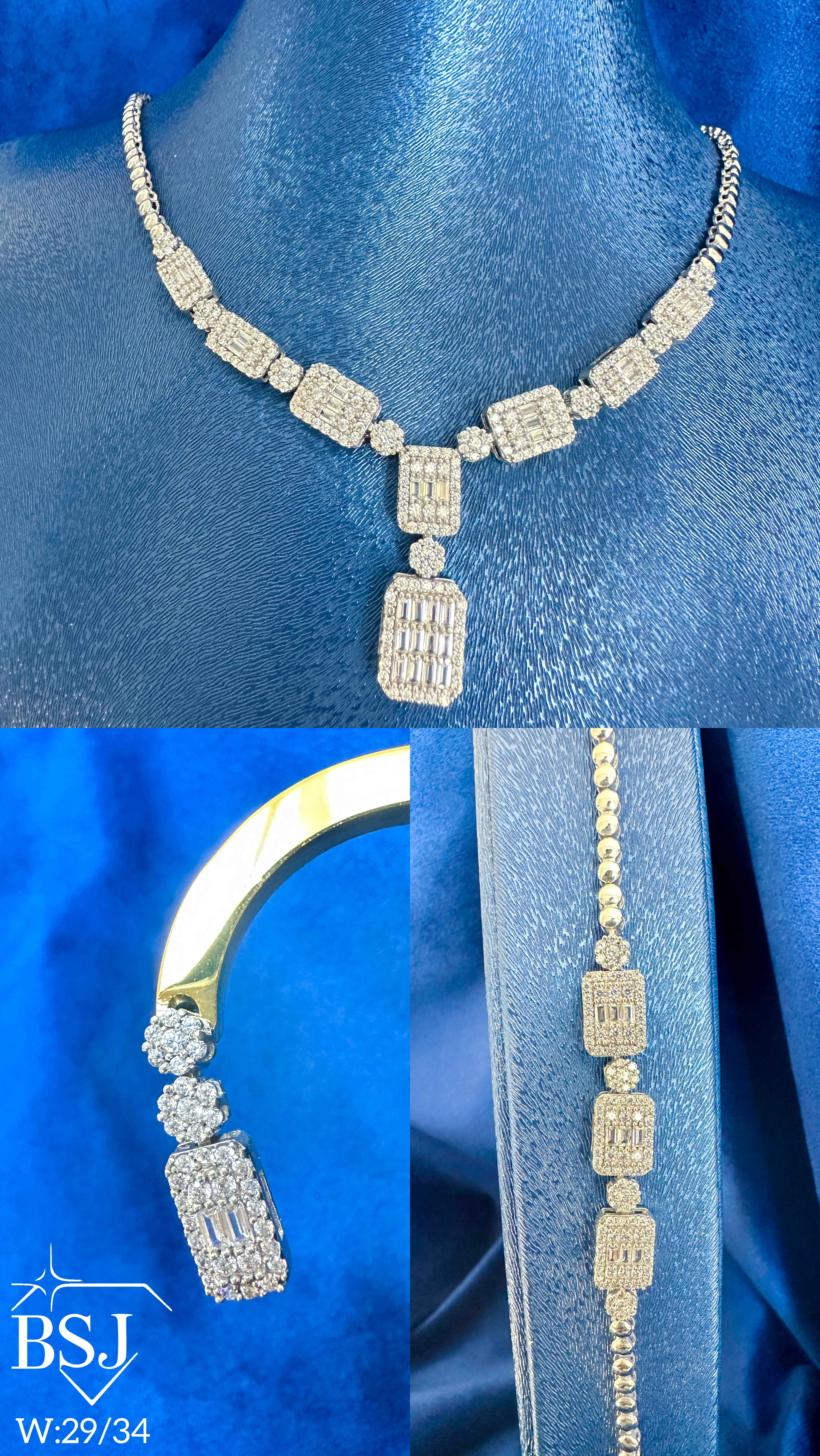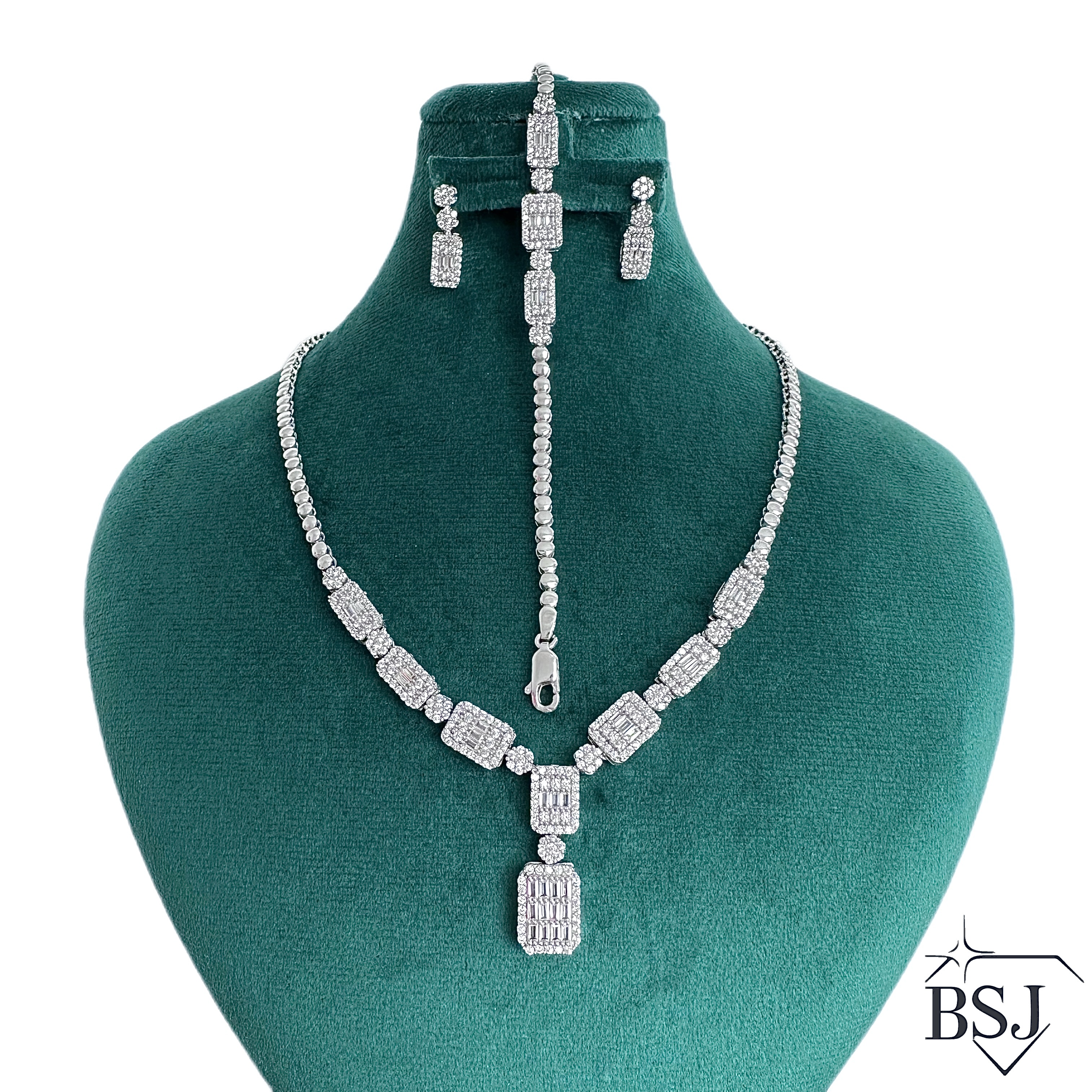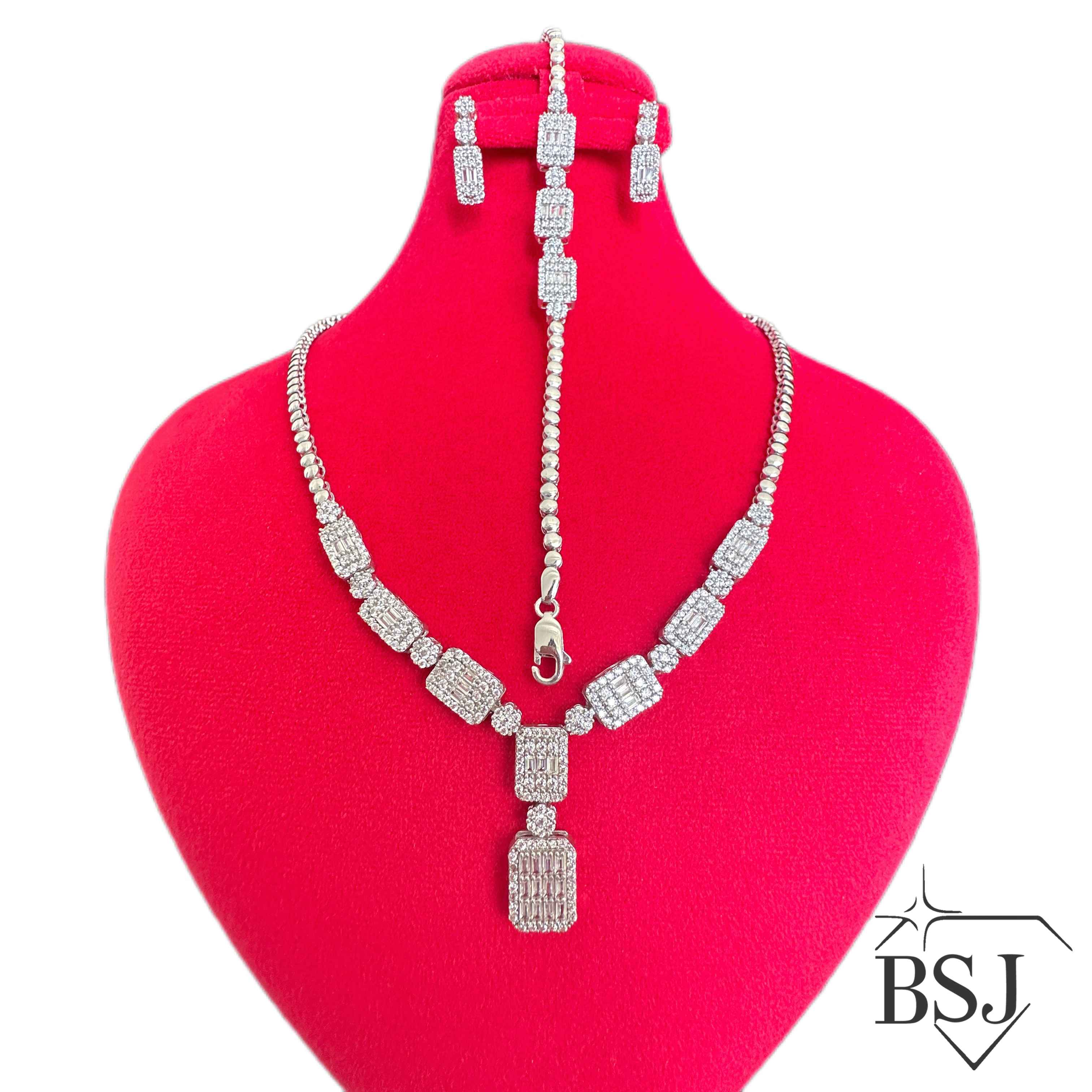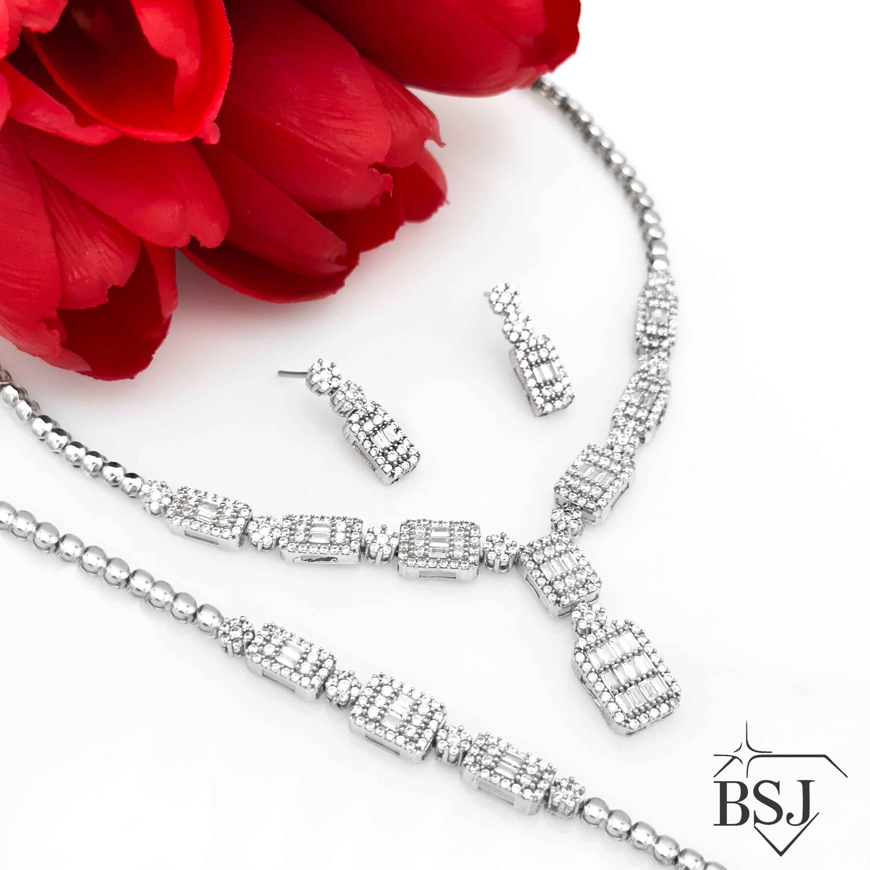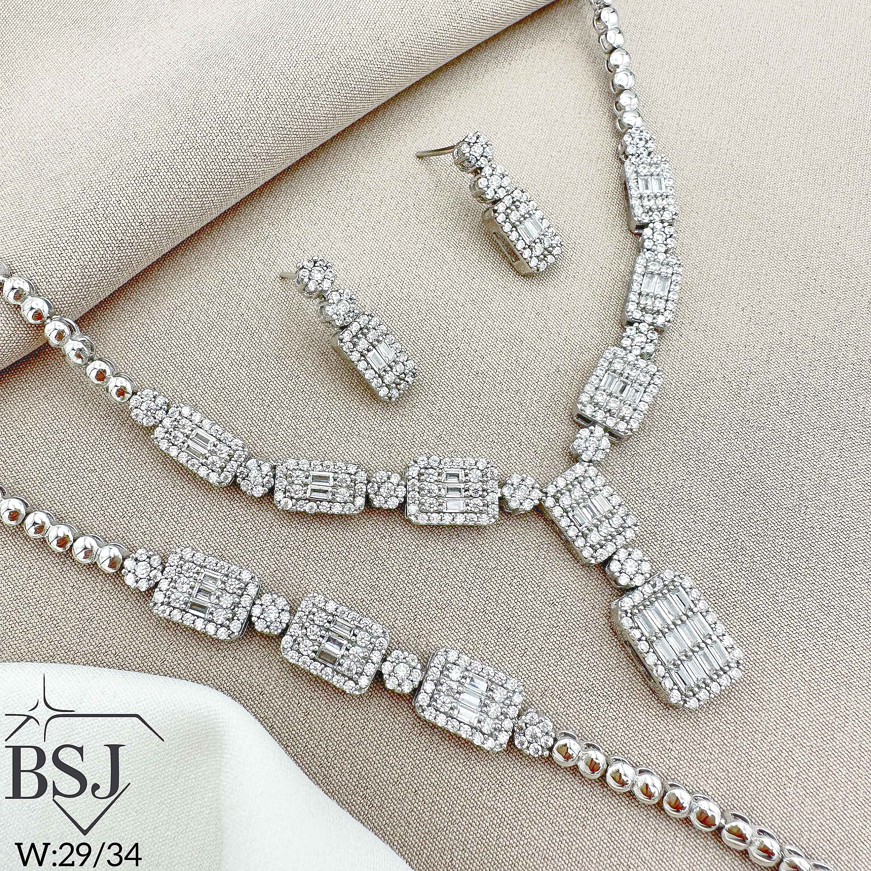 سرویس نقره جواهری زنانه BSJ_S550 از سرویس های شیک و لوکس ساخته شده از نقره با عیار 925 می باشد.سنگ های به کار رفته در آن برلیان و امرالد از جنس اتمی زیرکونیا می باشند که به صورت میکروستینگ مخراج کاری شده اند و در برابر ضربه مقاوم اند.آبکاری دو مرحله ای رودیوم (طلا سفید)، سبب کیفیت بی نظیر دوام رنگ آن شده است و به دلیل عدم استفاده از نیکل در ساختار آن،بدون حساسیت بوده و با پوست حساس سازگار است.به دلیل کیفیت فوق العاده و درخشش عالی سنگ ها، تفاوتی با نمونه طلا ندارد.وزن سرویس 27.54 گرم می باشد.