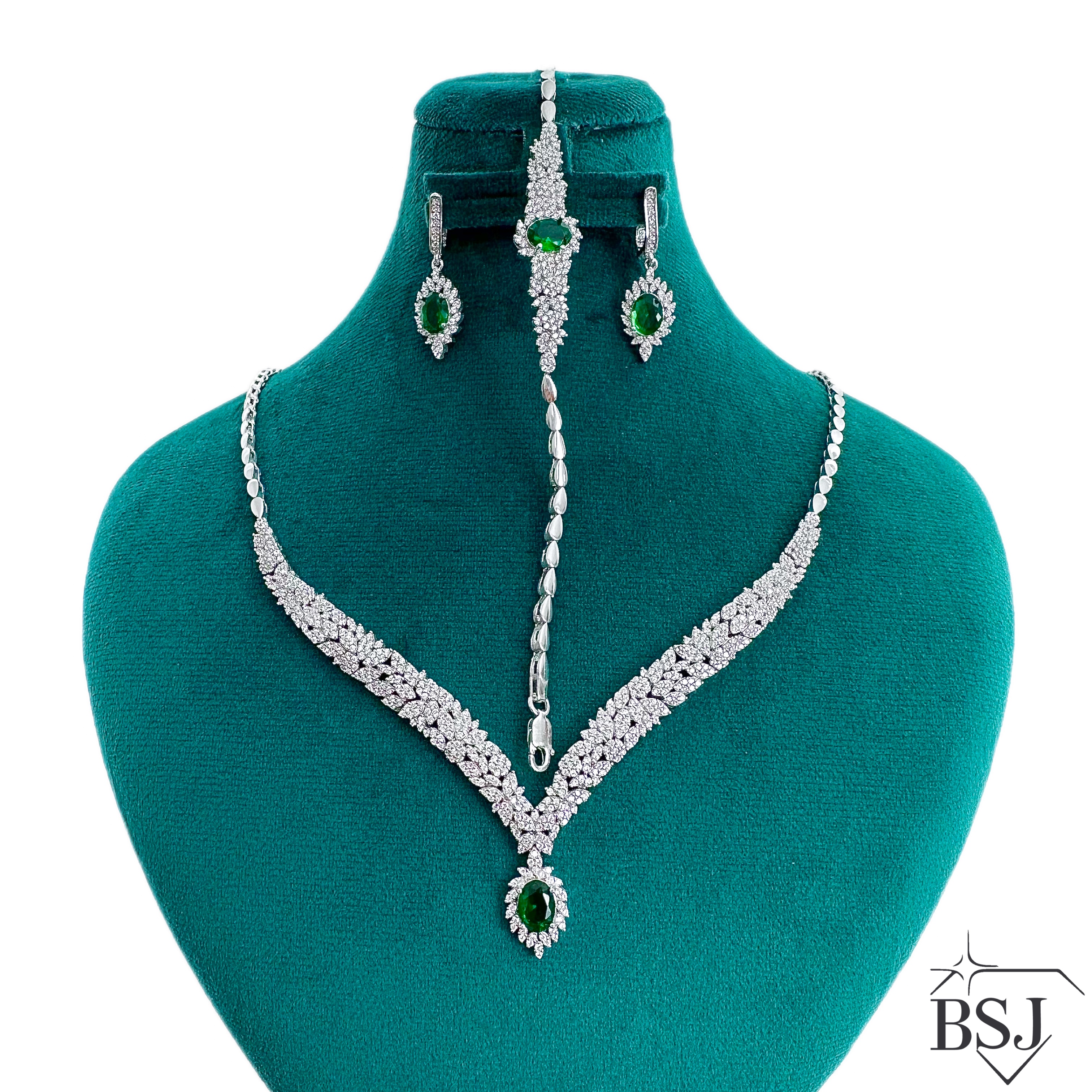 سرویس نقره جواهری زنانه BSJ_S403 از سرویس های چشم نواز و اعیانی ساخته شده از نقره با عیار 925 می باشد.سنگ های به کار رفته در آن برلیان و سنگ های کبود سنتتیک (آزمایشگاهی) از جنس اتمی زیرکونیا می باشند که به صورت میکروستینگ مخراج کاری شده اند و در برابر ضربه مقاوم اند.آبکاری دو مرحله ای رودیوم (طلا سفید)، سبب کیفیت بی نظیر دوام رنگ آن شده است و به دلیل عدم استفاده از نیکل در ساختار آن،بدون حساسیت بوده و با پوست حساس سازگار است.به دلیل کیفیت فوق العاده و درخشش عالی سنگ ها، تفاوتی با نمونه طلا ندارد.وزن سرویس 35.84 گرم می باشد.