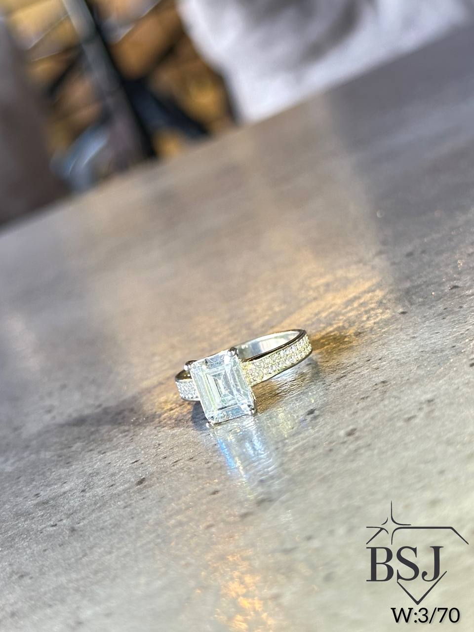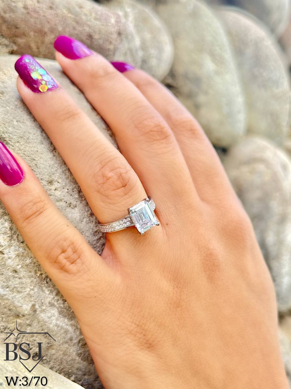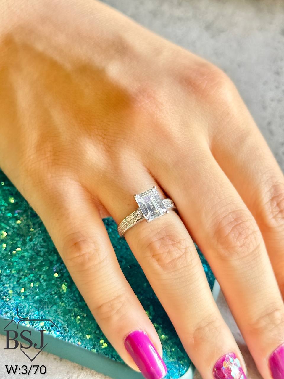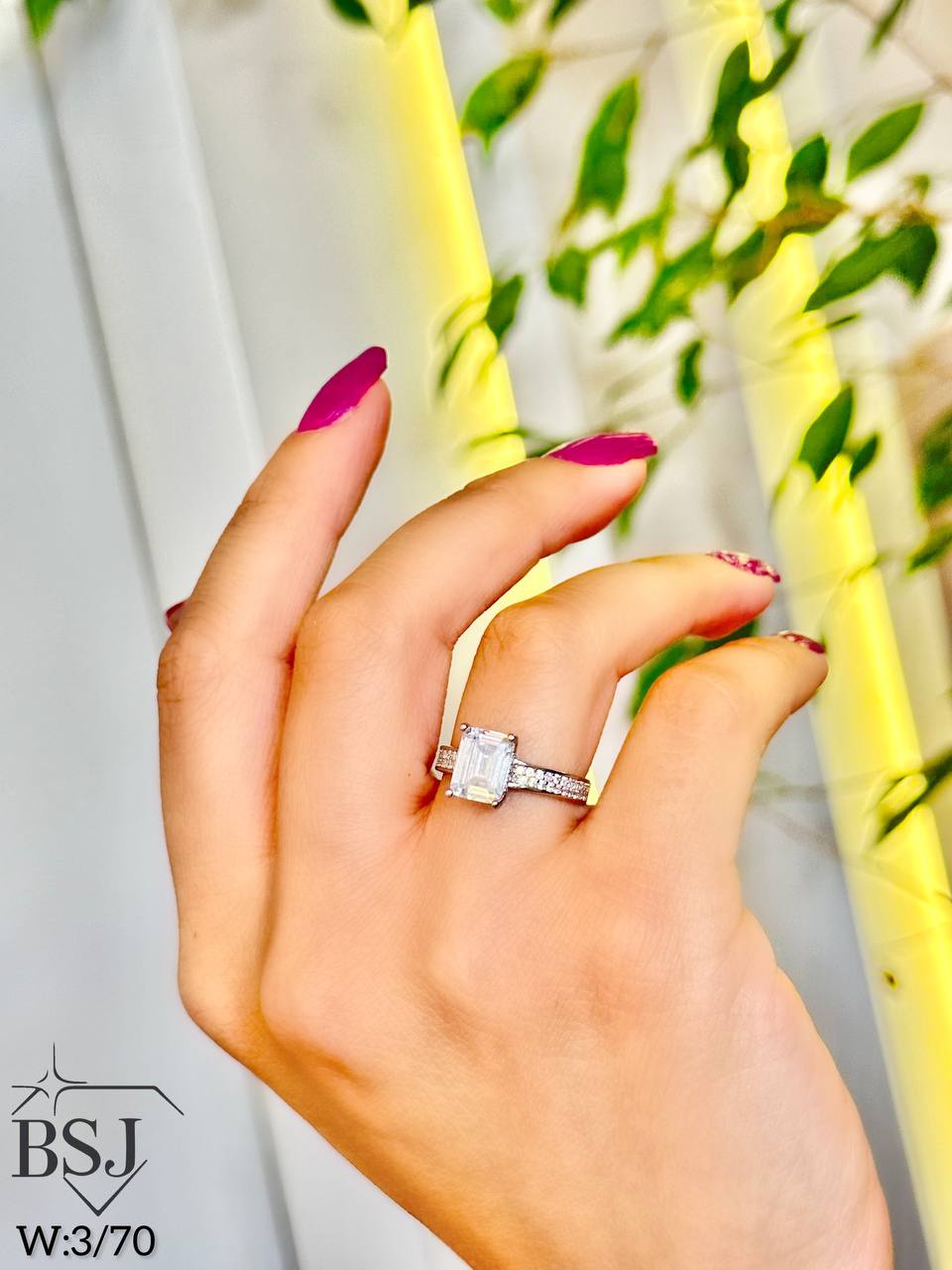 انگشتر نقره میکرو BSJ_r108 یکی از زیباترین انگشترهای ساخته شده از نقره با عیار 925 می باشد.سنگ های به کار رفته در آن برلیان و امرالد اتمی از جنس زیرکونیا می باشند که به صورت میکروستینگ مخراج کاری شده اند و در برابر ضربه مقاوم اند.آبکاری دو مرحله ای رودیوم(طلا سفید)، سبب کیفیت بی نظیر دوام رنگ آن شده است و به دلیل عدم استفاده از نیکل در ساختار آن، بدون حساسیت بوده و با پوست های حساس سازگار است.به دلیل کیفیت فوق العاده و درخشش عالی، تفاوتی با نمونه طلا ندارد.وزن انگشتر 3.7 گرم می باشد.