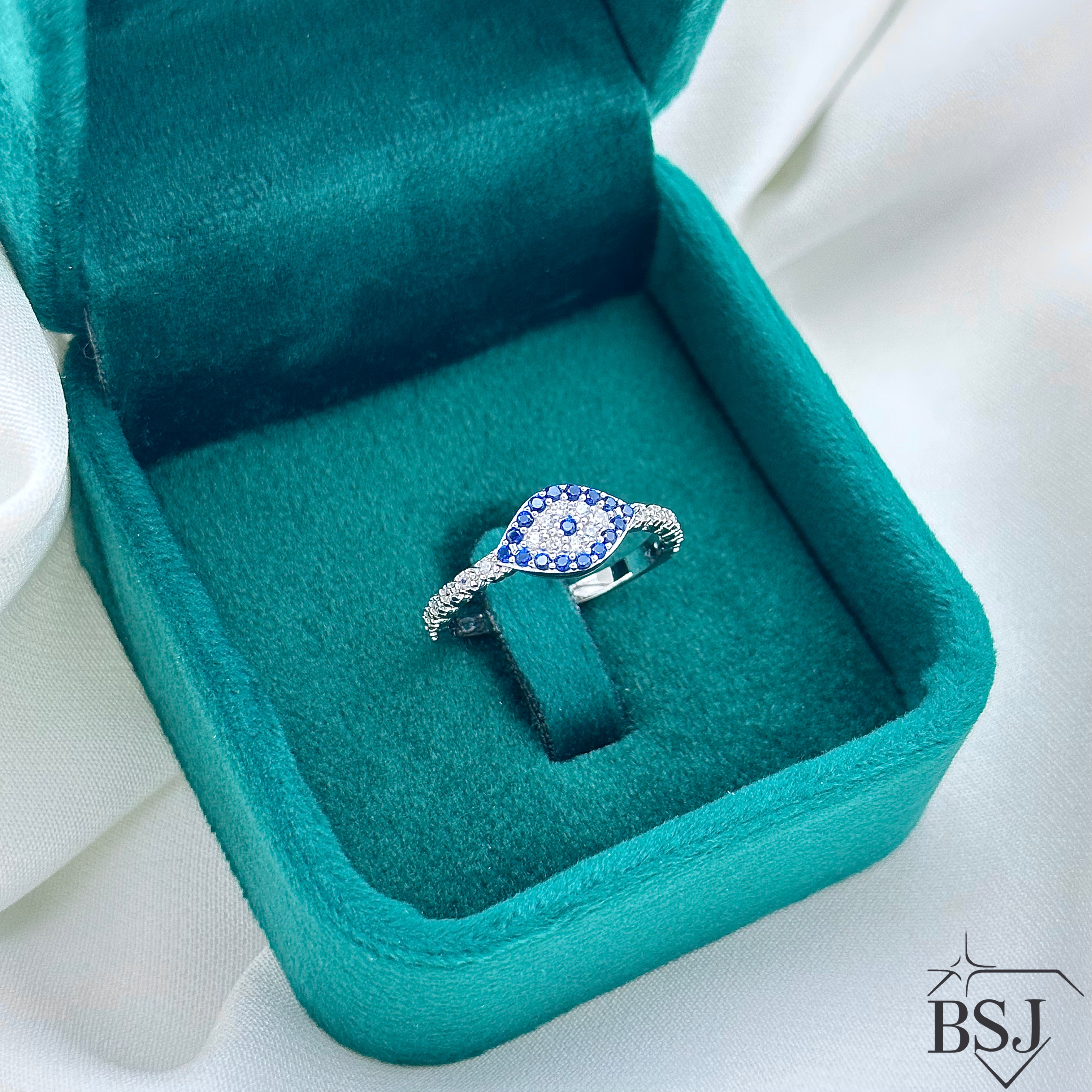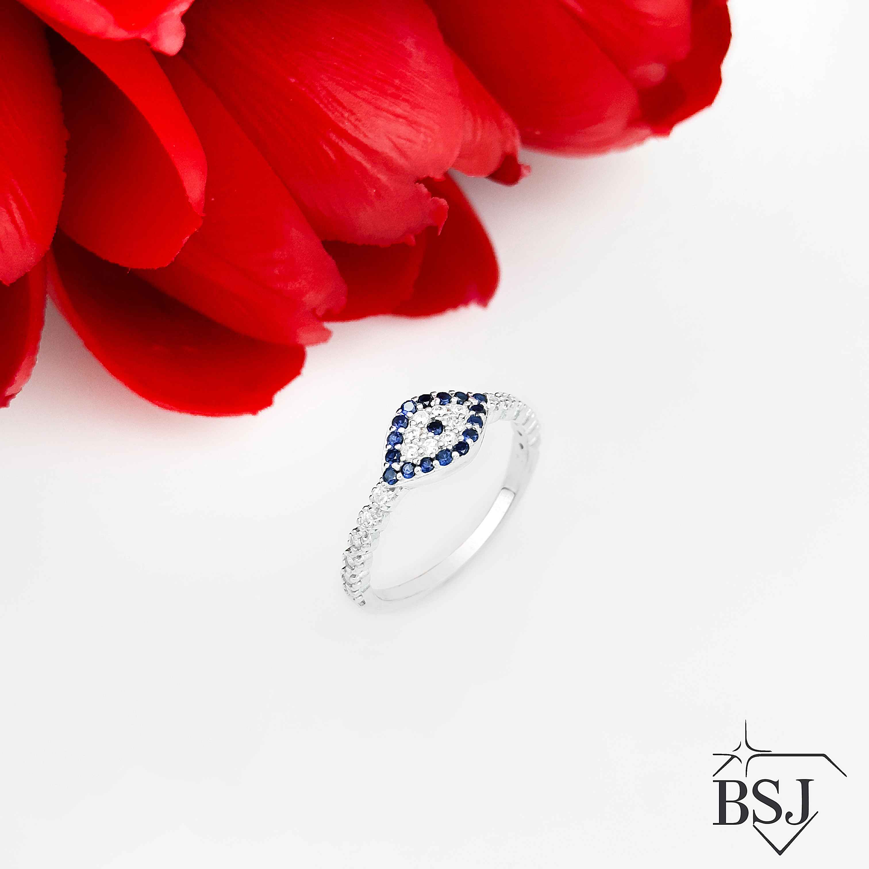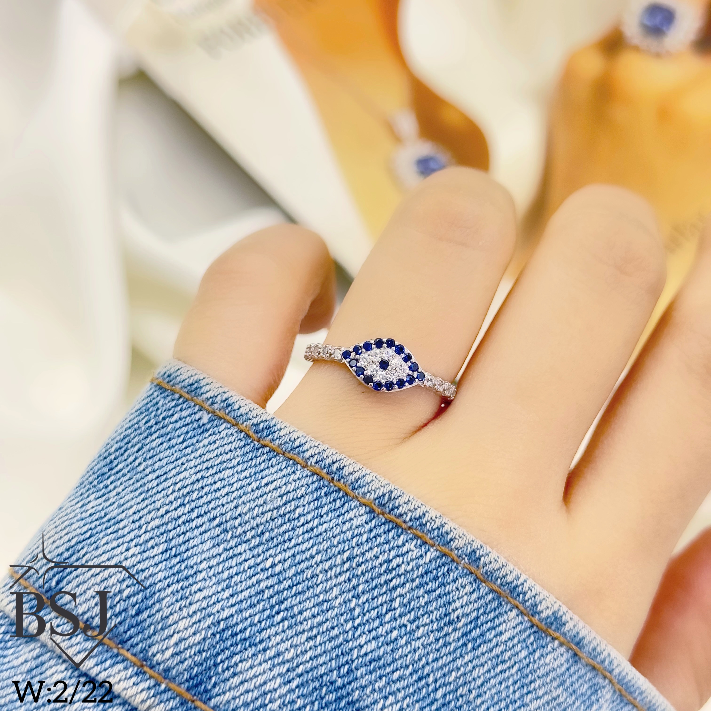 انگشتر نقره چشم نظر زنانه BSJ_r445 از انگشترهای اسپورت و زیبای ساخته شده از نقره با عیار 925 می باشد.سنگ برلیان از جنس اتمی زیرکونیا در ساختار آن به کار رفته است که به صورت میکروستینگ مخراج کاری شده و در برابر ضربه مقاوم است.آبکاری دو مرحله ای رودیوم(طلا سفید)، سبب کیفیت بی نظیر دوام رنگ آن شده است و به دلیل عدم استفاده از نیکل در ساختار آن، بدون حساسیت بوده و با پوست حساس سازگار است.به دلیل کیفیت فوق العاده و درخشش عالی، تفاوتی با نمونه طلا ندارد.وزن انگشتر 2.22گرم می باشد.