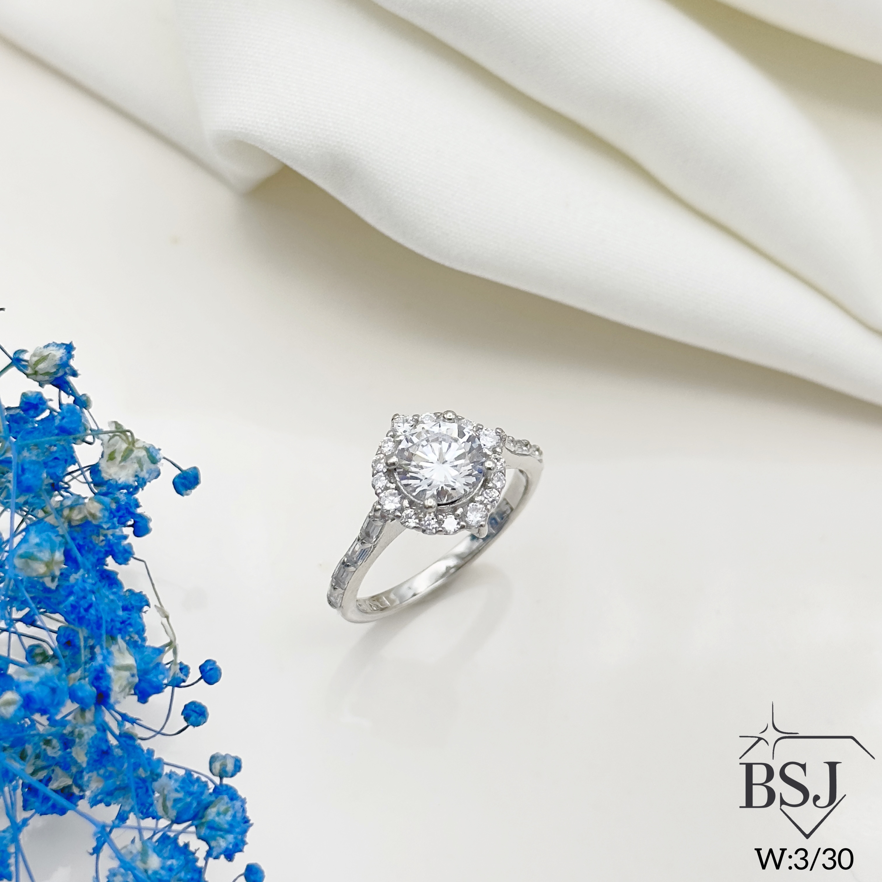 انگشتر نقره جواهری BSJ_r111 یکی از به روز ترین انگشترهای ساخته شده از نقره با عیار 925 می باشد.سنگ های به کار رفته در آن برلیان اتمی از جنس زیرکونیا می باشند که به صورت میکروستینگ مخراج کاری شده اند و در برابر ضربه مقاوم اند.آبکاری دو مرحله ای رودیوم(طلا سفید)، سبب کیفیت بی نظیر دوام رنگ آن شده است و به دلیل عدم استفاده از نیکل در ساختار آن، بدون حساسیت بوده و با پوست های حساس سازگار است.به دلیل کیفیت فوق العاده و درخشش عالی، تفاوتی با نمونه طلا ندارد.وزن انگشتر 3.10 گرم می باشد.