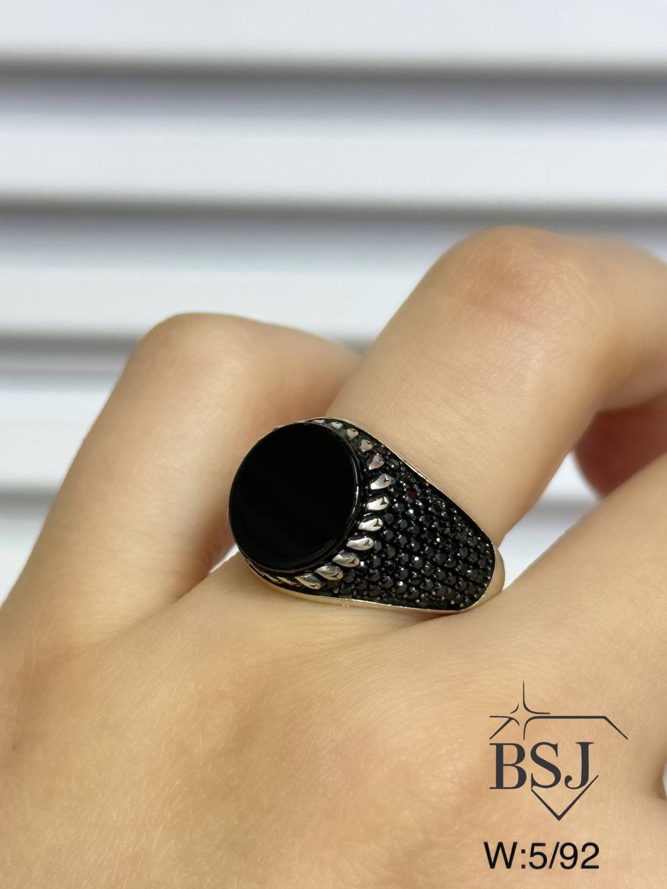 انگشتر نقره اسپورت مردانه BSJ_r462 از انگشترهای شیک ساخته شده از نقره با عیار 925 می باشد.سنگ های به کار رفته در آن برلیان مشکی از جنس اتمی زیرکونیا و سنگ طرح اونیکس می باشند.سنگ ها به صورت میکروستینگ مخراج کاری شده اند و در برابر ضربه مقاوم اند.آبکاری دو مرحله ای رودیوم(طلاسفید)، سبب کیفیت بی نظیر دوام رنگ آن شده است و به دلیل عدم استفاده از نیکل در ساختار آن، بدون حساسیت بوده و با انواع پوست سازگار است.وزن انگشتر 5.92 گرم می باشد.این انگشتر در سایزهای 8 الی 11 (57 الی 63) قابل سفارش می باشد لذا هنگام سفارش، سایز انگشت خود را در قسمت توضیحات درج بفرمایید.