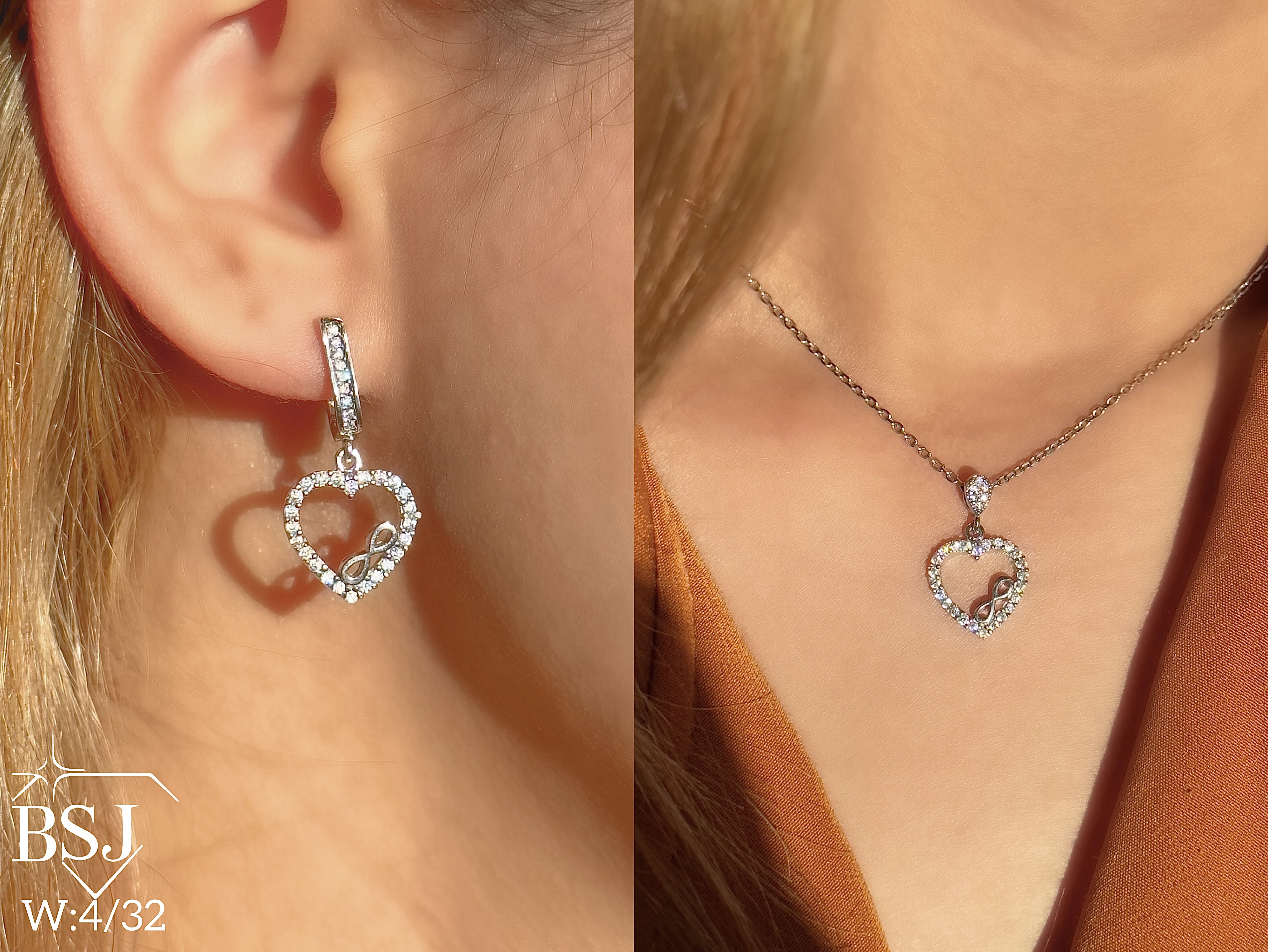 نیمست نقره قلب بینهایت زنانه BSJ_N469 از نیمست های اسپورت ساخته شده از نقره با عیار 925 می باشد.سنگ های به کار رفته در آن برلیان از جنس اتمی زیرکونیا می باشند که به صورت میکروستینگ مخراج کاری شده اند و در برابر ضربه مقاوم اند.آبکاری دو مرحله ای رودیوم(طلا سفید)، سبب کیفیت بی نظیر دوام رنگ آن شده است و به دلیل عدم استفاده از نیکل در ساختار آن، بدون حساسیت بوده و با پوست حساس سازگار است.به دلیل کیفیت فوق العاده و درخشش عالی آن، تفاوتی با نمونه طلا ندارد.وزن نیمست 4.57 گرم می باشد.