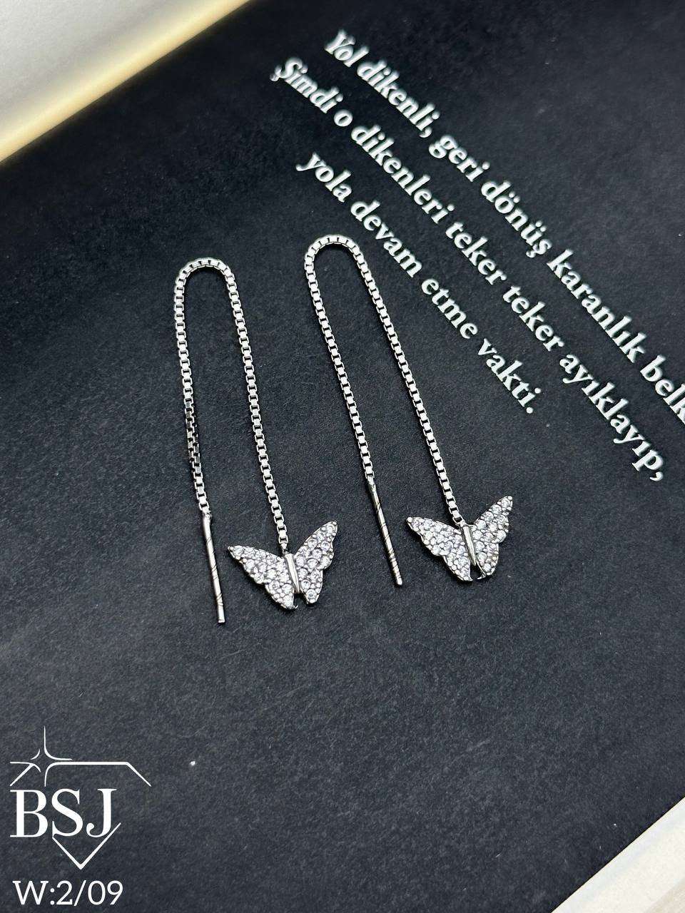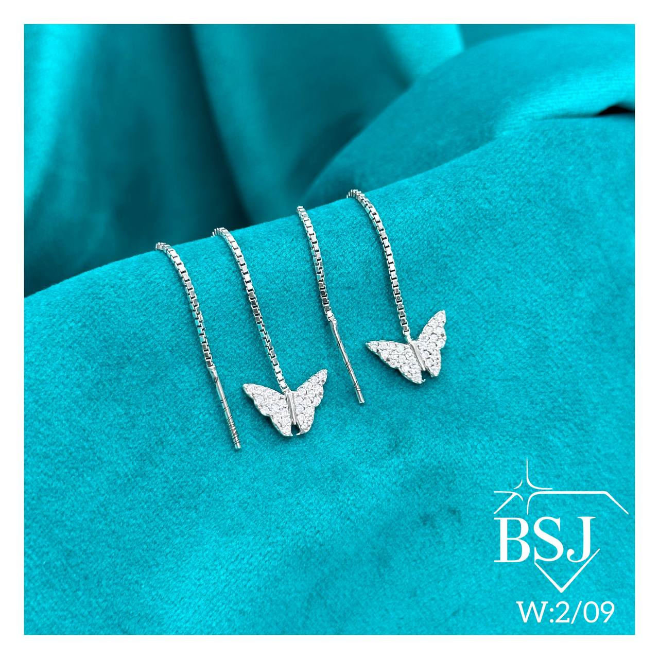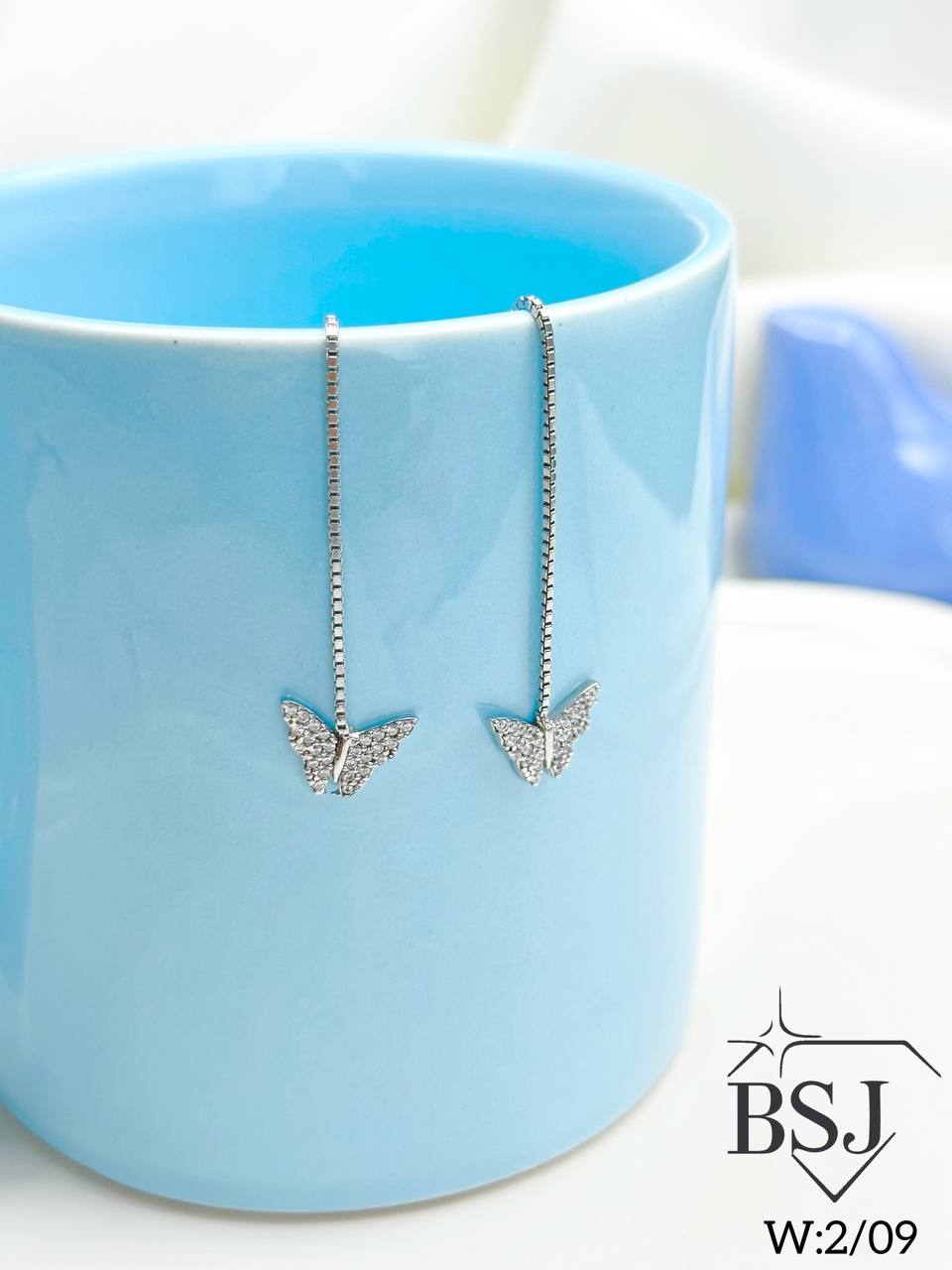 گوشواره آویز نقره طرح بخیه پروانه BSJ-G474 ساخته شده از نقره با عیار 925 می باشد.نگین های بکار رفته در این گوشواره از جنس برلیان اتمی زیرکونیا می باشد.آبکاری دو مرحله ای رودیوم(طلا سفید)، سبب کیفیت بی نظیر دوام رنگ آن شده است و به دلیل عدم استفاده از نیکل در ساختار آن، بدون حساسیت بوده و با پوست حساس سازگار است.به دلیل کیفیت فوق العاده و درخشش عالی آن، تفاوتی با نمونه طلا ندارد.وزن گوشواره 2.09 گرم می باشد.
