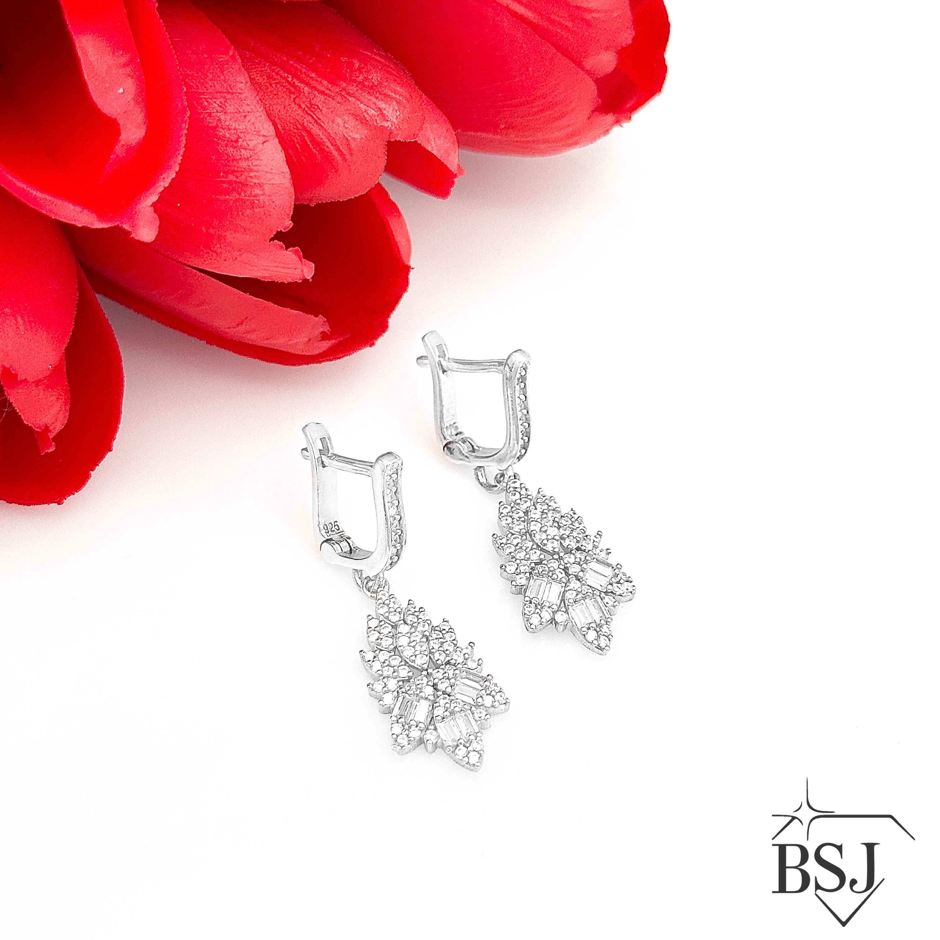 گوشواره نقره BSJ-G549 ساخته شده از نقره با عیار 925 می باشد.نگین های بکار رفته در این گوشواره از جنس برلیان اتمی زیرکونیا می باشد.آبکاری دو مرحله ای رودیوم(طلا سفید)، سبب کیفیت بی نظیر دوام رنگ آن شده است و به دلیل عدم استفاده از نیکل در ساختار آن، بدون حساسیت بوده و با پوست حساس سازگار است.به دلیل کیفیت فوق العاده و درخشش عالی آن، تفاوتی با نمونه طلا ندارد.وزن گوشواره +-4.50گرم می باشد.