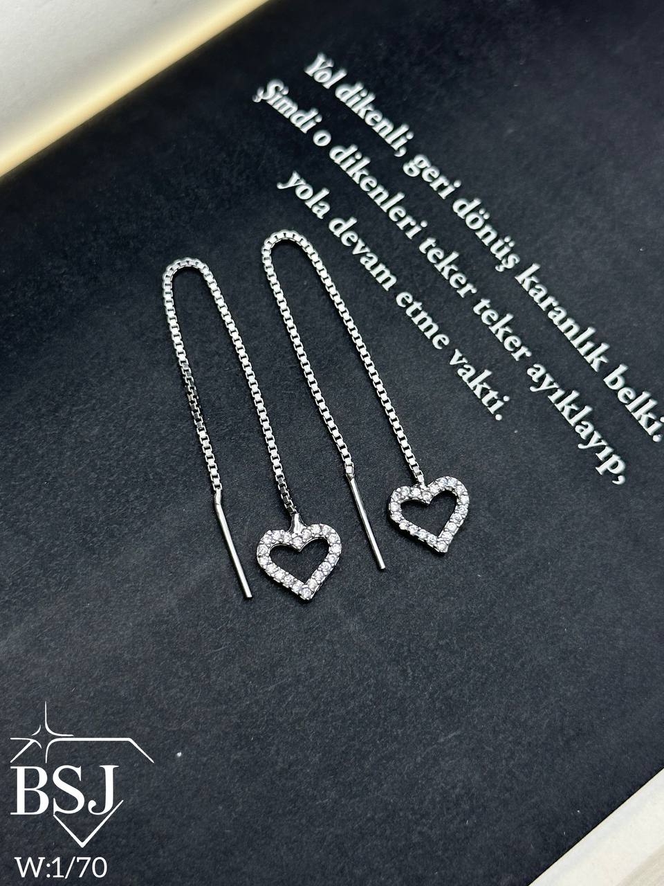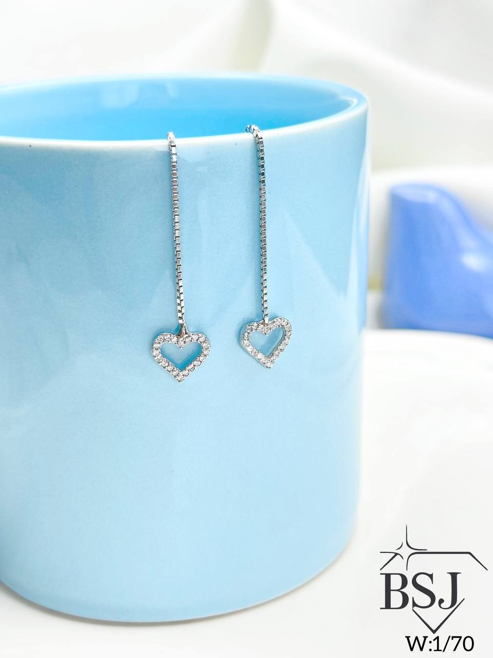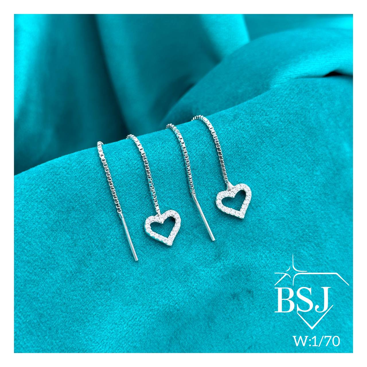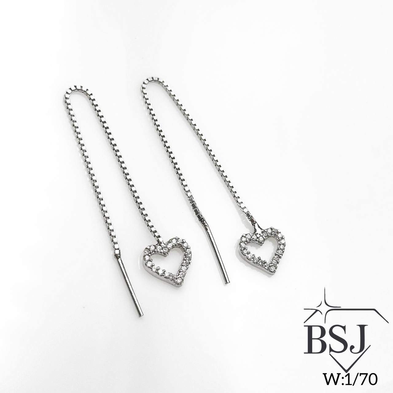 گوشواره آویز نقره طرح بخیه قلب BSJ-G479 ساخته شده از نقره با عیار 925 می باشد.نگین های بکار رفته در این گوشواره از جنس برلیان اتمی زیرکونیا می باشد.آبکاری دو مرحله ای رودیوم(طلا سفید)، سبب کیفیت بی نظیر دوام رنگ آن شده است و به دلیل عدم استفاده از نیکل در ساختار آن، بدون حساسیت بوده و با پوست حساس سازگار است.به دلیل کیفیت فوق العاده و درخشش عالی آن، تفاوتی با نمونه طلا ندارد.وزن گوشواره 1.70 گرم می باشد.