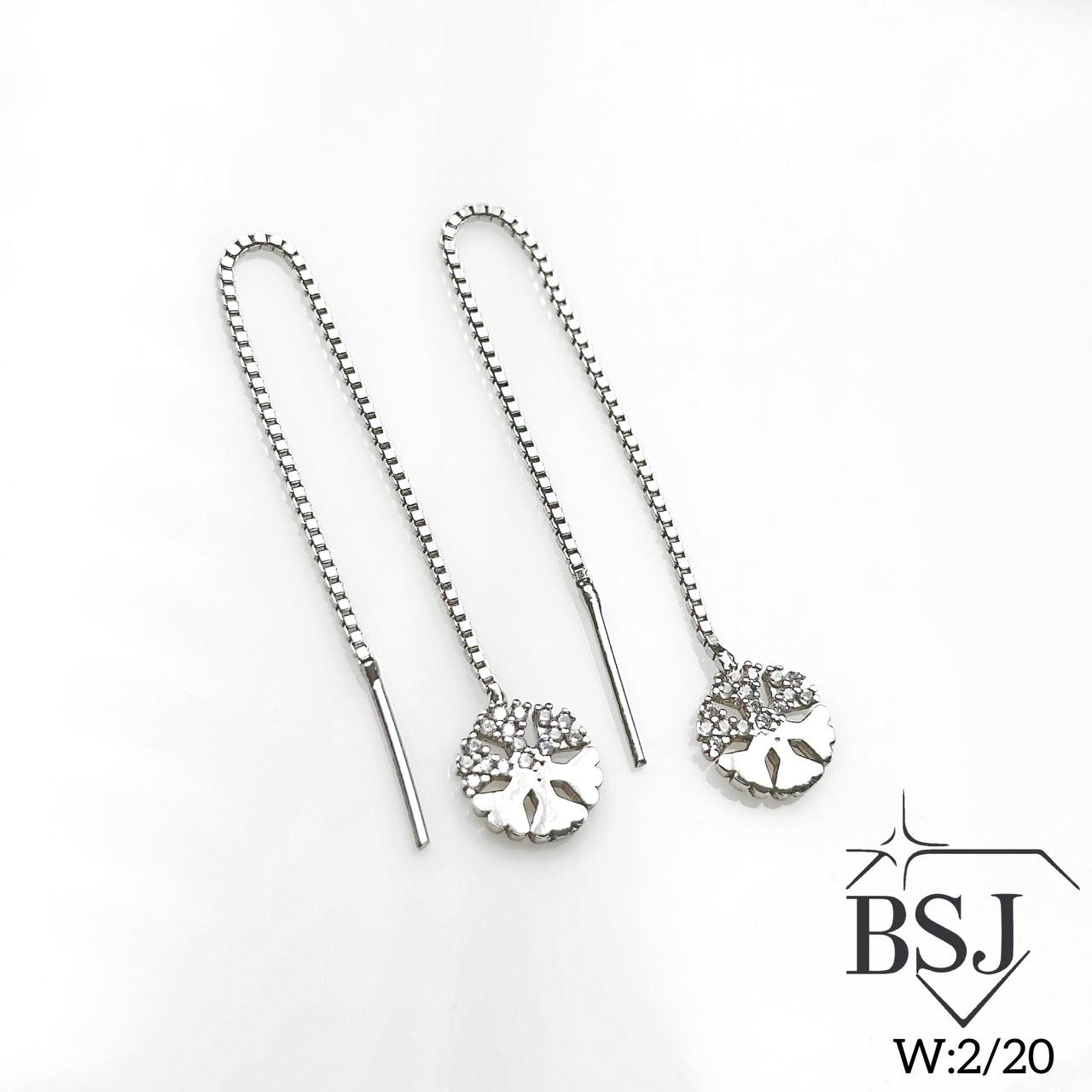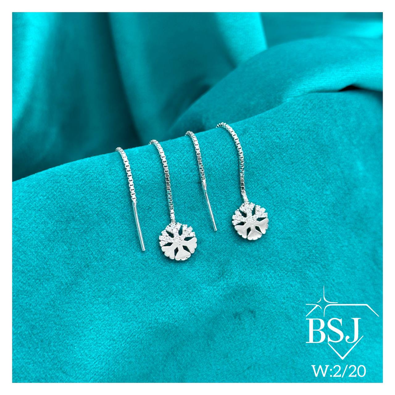 گوشواره آویز نقره طرح بخیه BSJ-G491 ساخته شده از نقره با عیار 925 می باشد.نگین های بکار رفته در این گوشواره از جنس برلیان اتمی زیرکونیا می باشد.آبکاری دو مرحله ای رودیوم(طلا سفید)، سبب کیفیت بی نظیر دوام رنگ آن شده است و به دلیل عدم استفاده از نیکل در ساختار آن، بدون حساسیت بوده و با پوست حساس سازگار است.به دلیل کیفیت فوق العاده و درخشش عالی آن، تفاوتی با نمونه طلا ندارد.وزن گوشواره 2.20گرم می باشد.