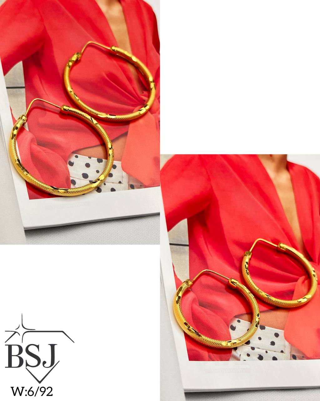 گوشواره نقره زنانه BSJ-G495 ساخته شده از نقره با عیار 925 می باشد.این گوشواره بدون نگین بوده و تماما از جنس نقره می باشد و در سطح آن تراش های منظم زیبایی دیده می شود.آبکاری طلا زرد، سبب کیفیت بی نظیر دوام رنگ آن شده است و بدون حساسیت بوده و با پوست حساس سازگار است.به دلیل کیفیت فوق العاده و درخشش عالی آن، تفاوتی با نمونه طلا ندارد.وزن گوشواره 6.92 گرم می باشد.