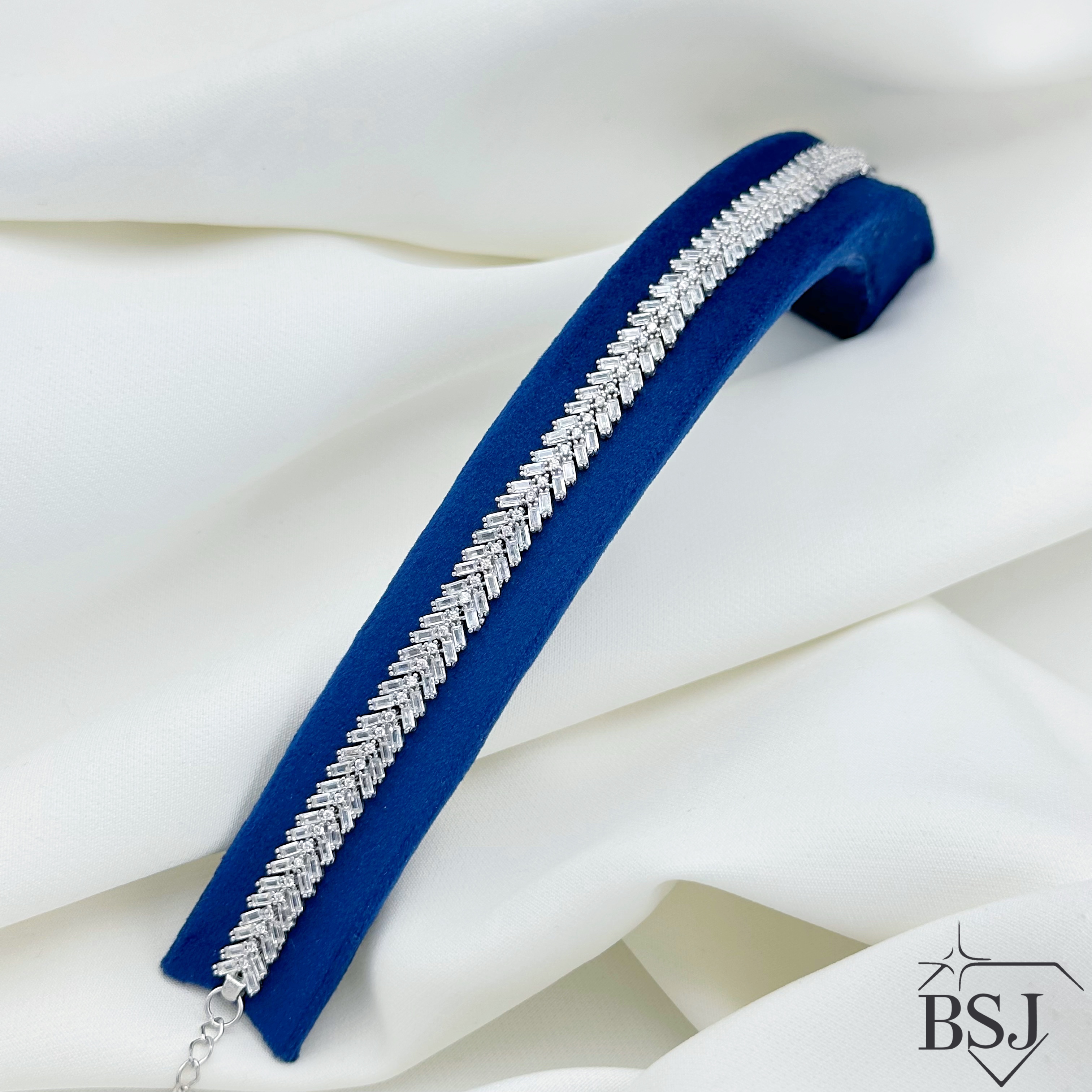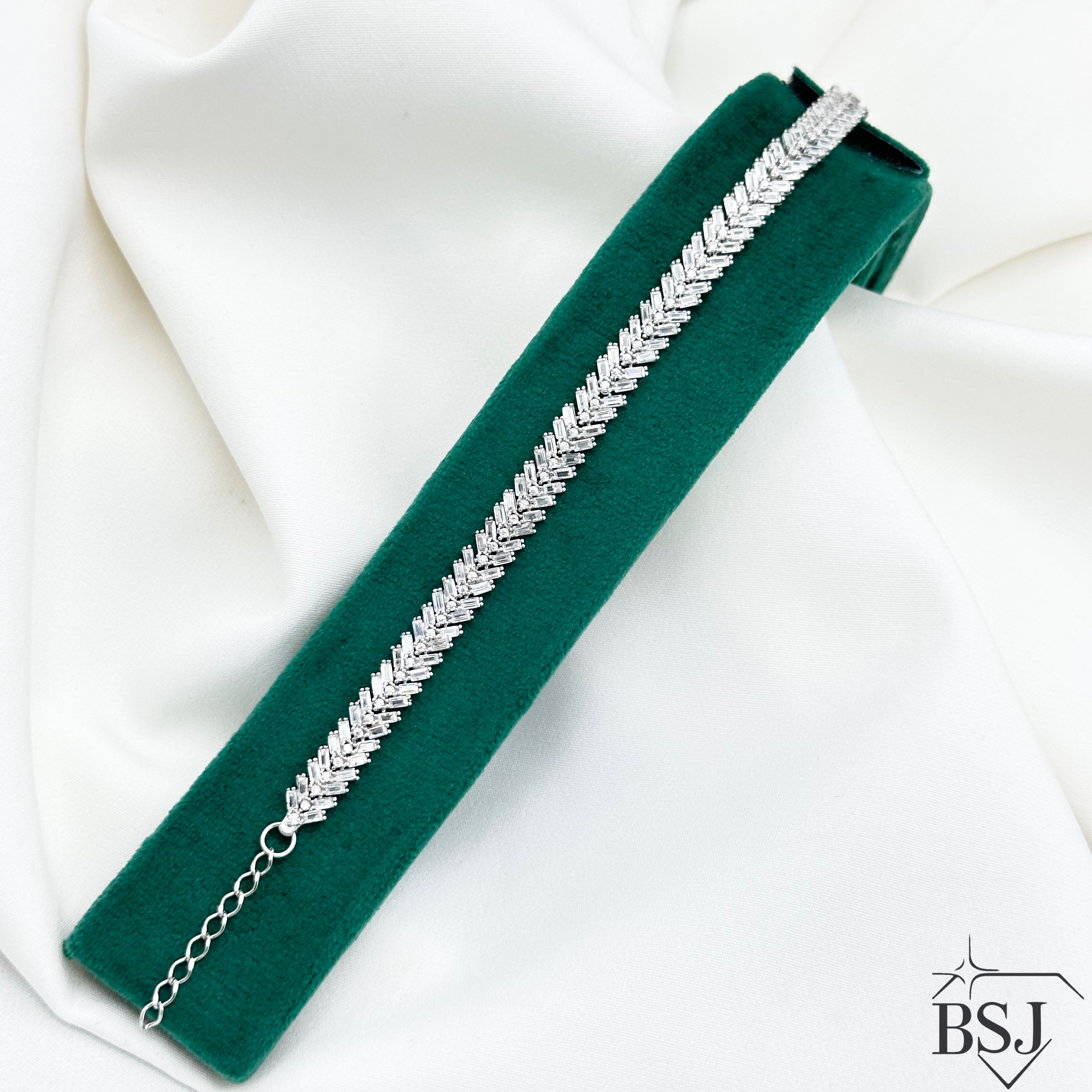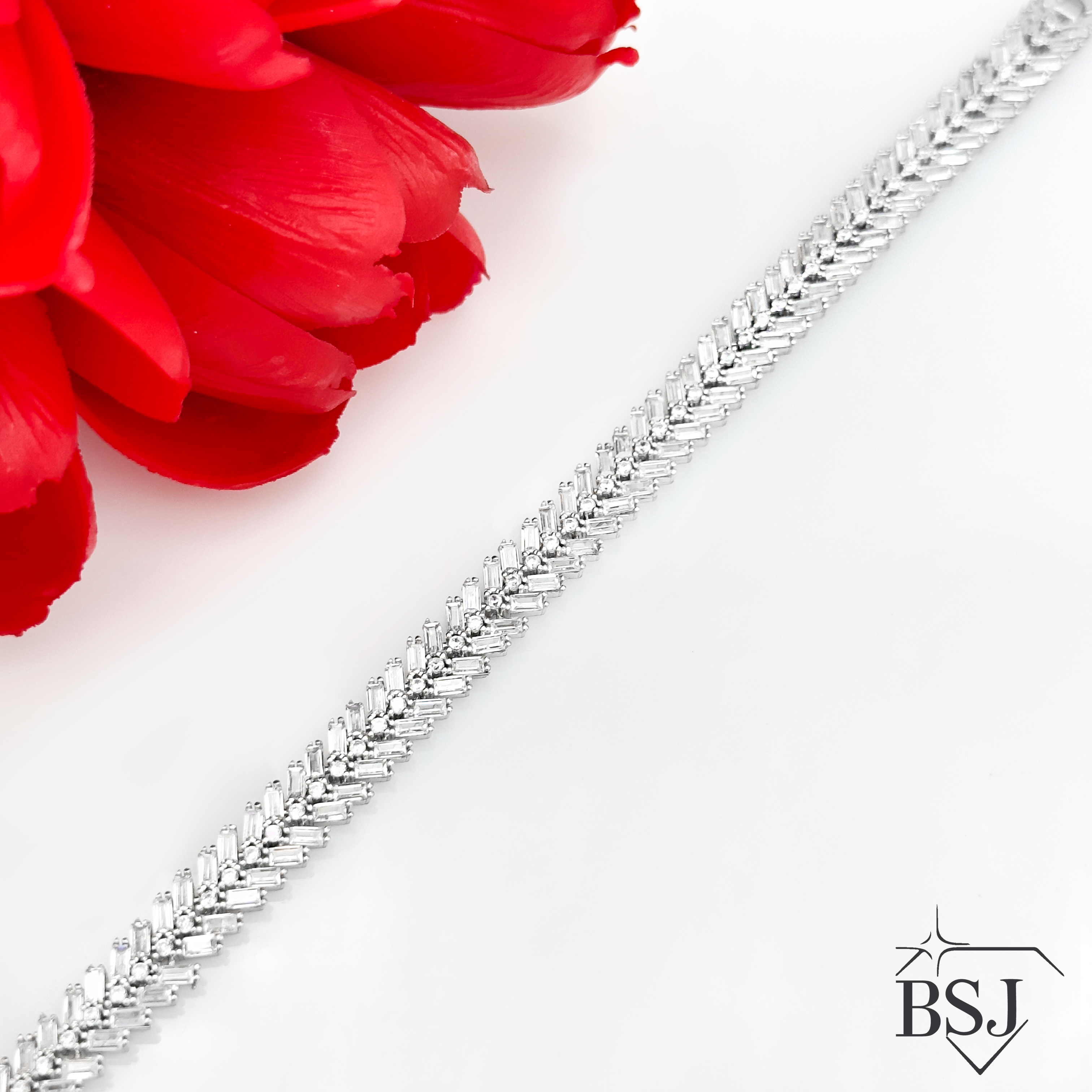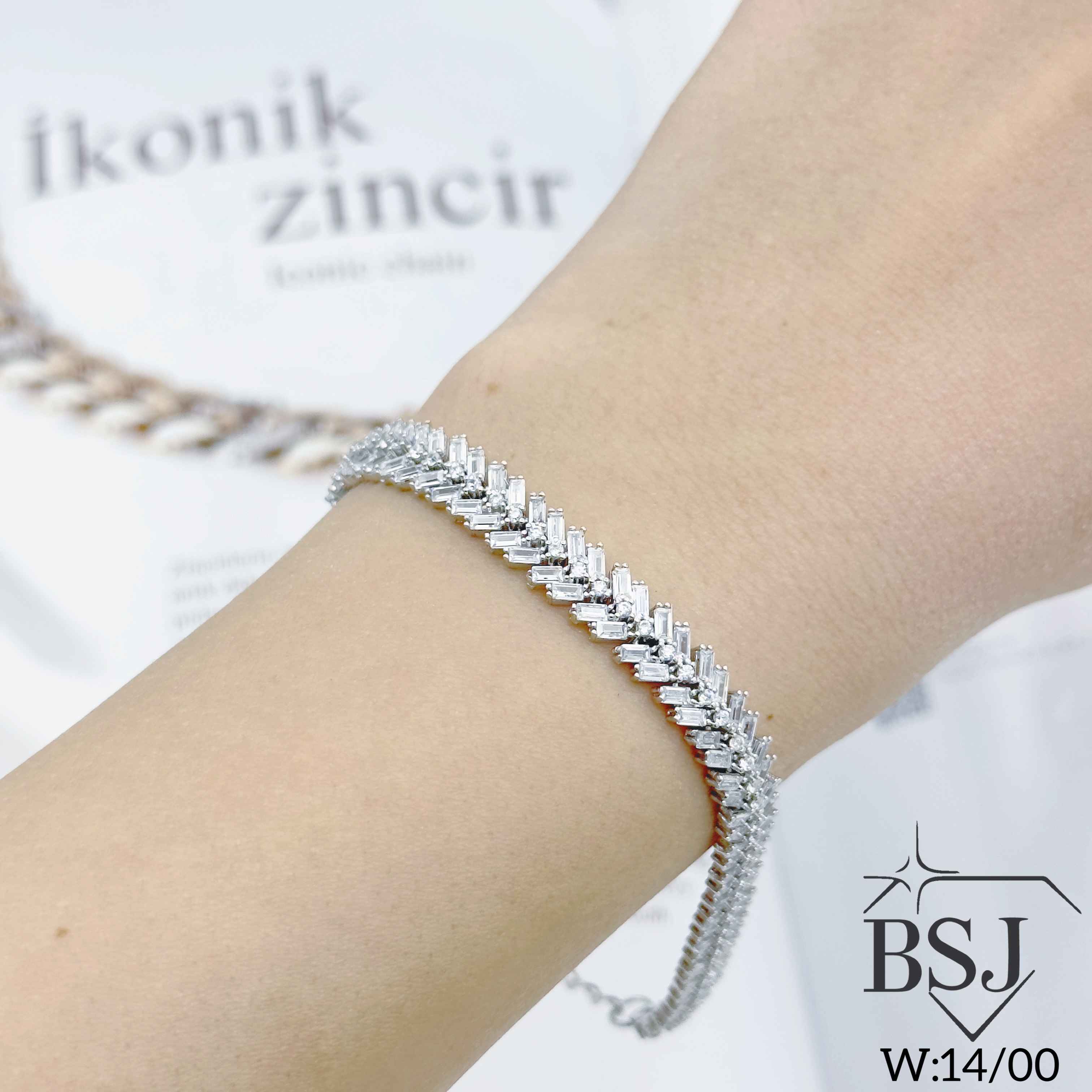 دستبند نقره جواهری زنانه BSJ_D567 از دستبندهای پرفروش و شیک ساخته شده از نقره با عیار 925 می باشد.سنگ های به کار رفته در آن از جنس اتمی زیرکونیا می باشند که به صورت میکروستینگ مخراج کاری شده اند و در برابر ضربه مقاوم اند.آبکاری دو مرحله ای رودیوم (طلا سفید)، سبب کیفیت بی نظیر دوام رنگ آن شده است و به دلیل عدم استفاده از نیکل در ساختار آن، بدون حساسیت بوده و با پوست حساس سازگار است.وزن دستبند 14.00گرم می باشد.