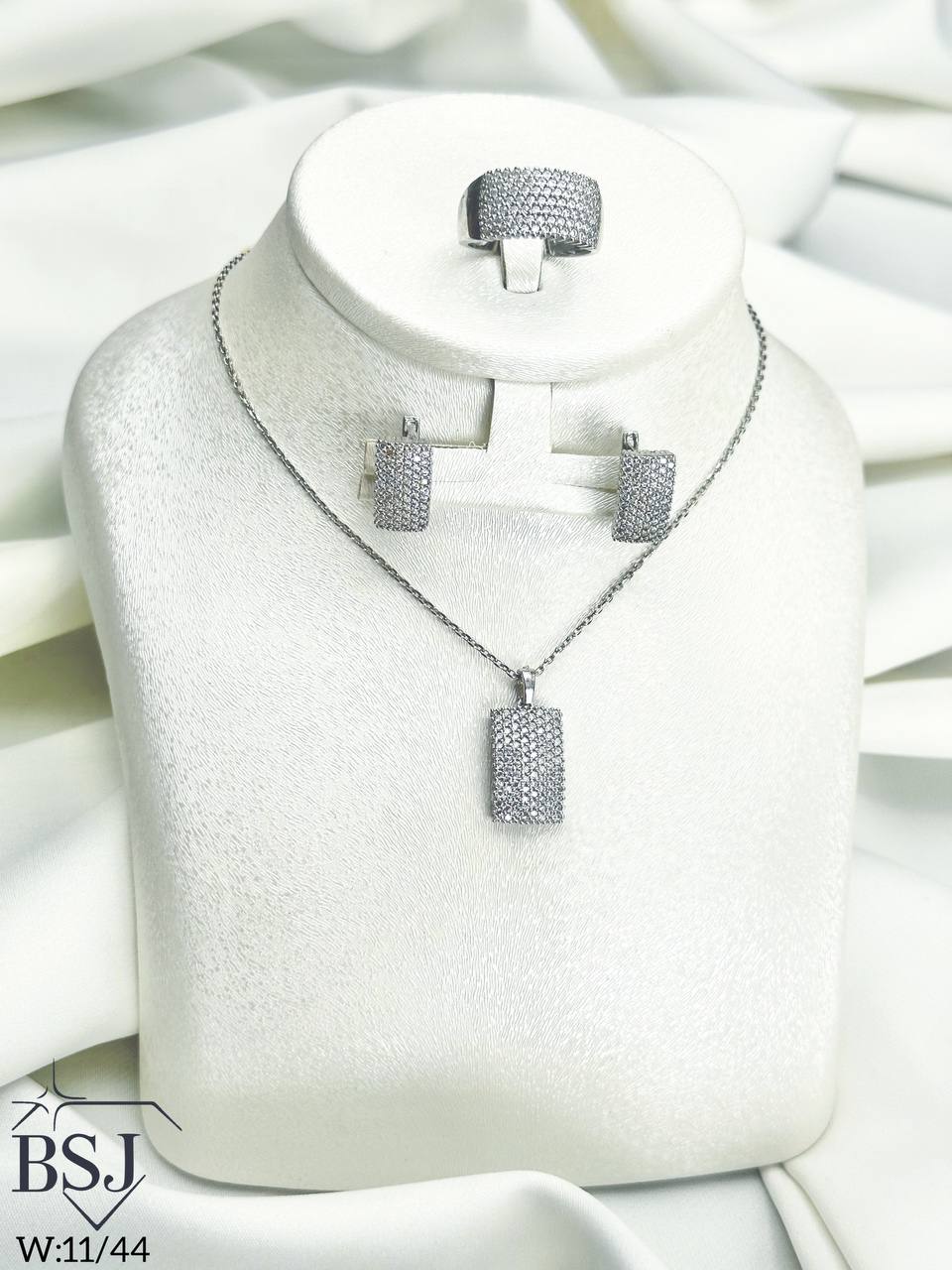 نیمست نقره جواهری زنانه طرح پرنس BSJ_N513 از نیمست های لوکس و پرفروش ساخته شده از نقره با عیار 925 می باشد.سنگ های به کار رفته در آن برلیان از جنس اتمی زیرکونیا می باشند که به صورت میکروستینگ مخراج کاری شده اند و در برابر ضربه مقاوم اند.آبکاری دو مرحله ای رودیوم(طلا سفید)، سبب کیفیت بی نظیر دوام رنگ آن شده است و به دلیل عدم استفاده از نیکل در ساختار آن، بدون حساسیت بوده و با پوست حساس سازگار است.به دلیل کیفیت فوق العاده و درخشش عالی آن، تفاوتی با نمونه طلا ندارد.وزن نیمست بدون زنجیر 11.44 گرم می باشد.