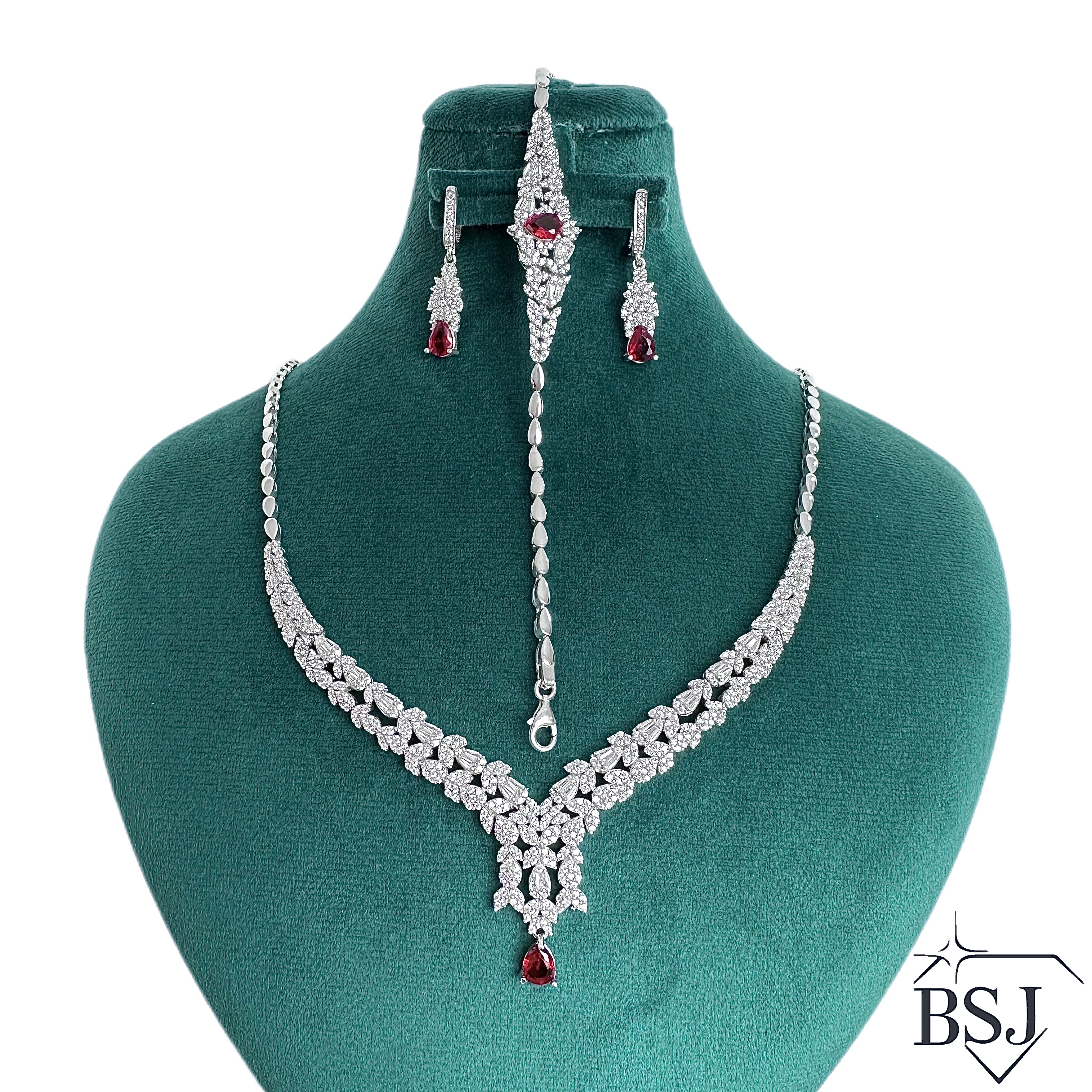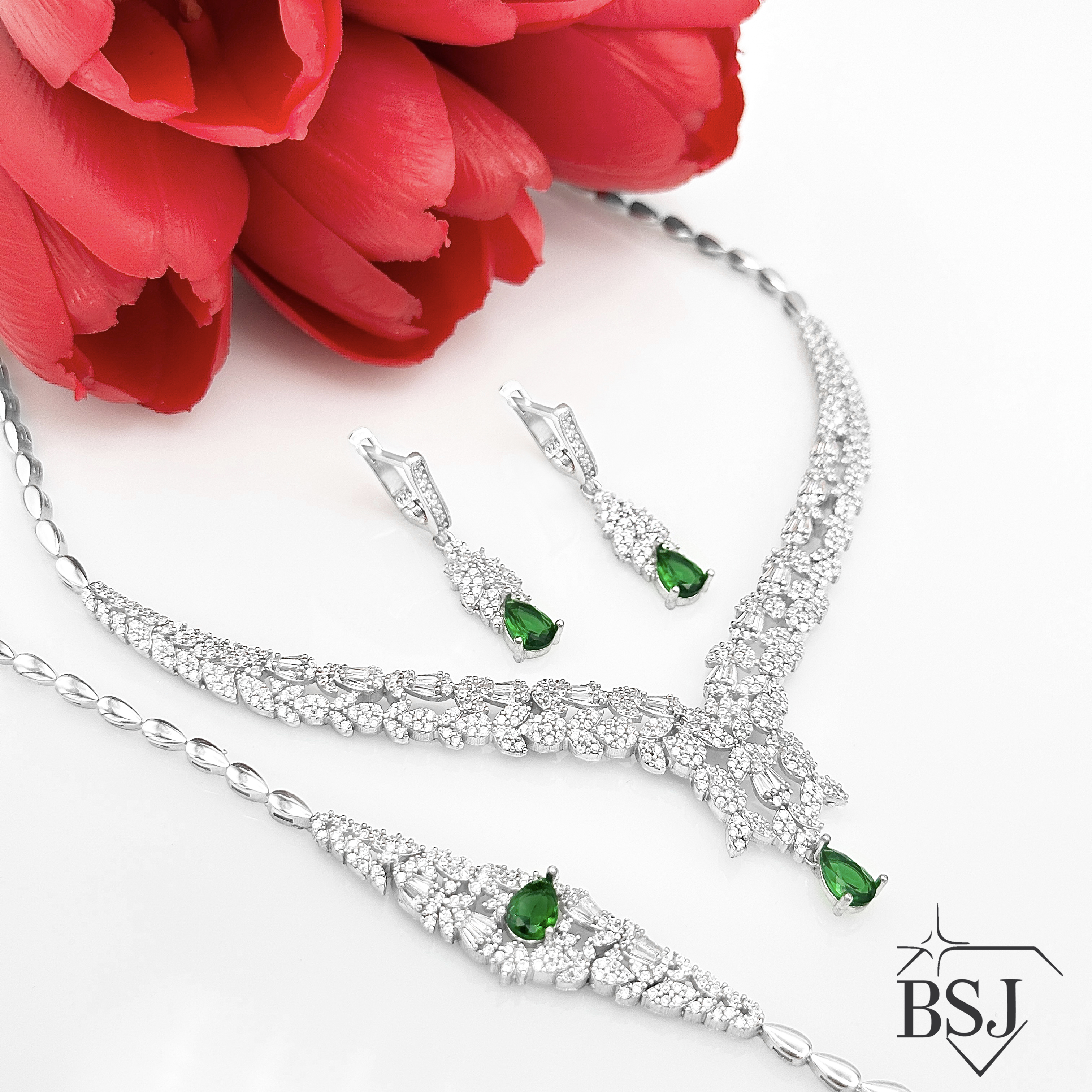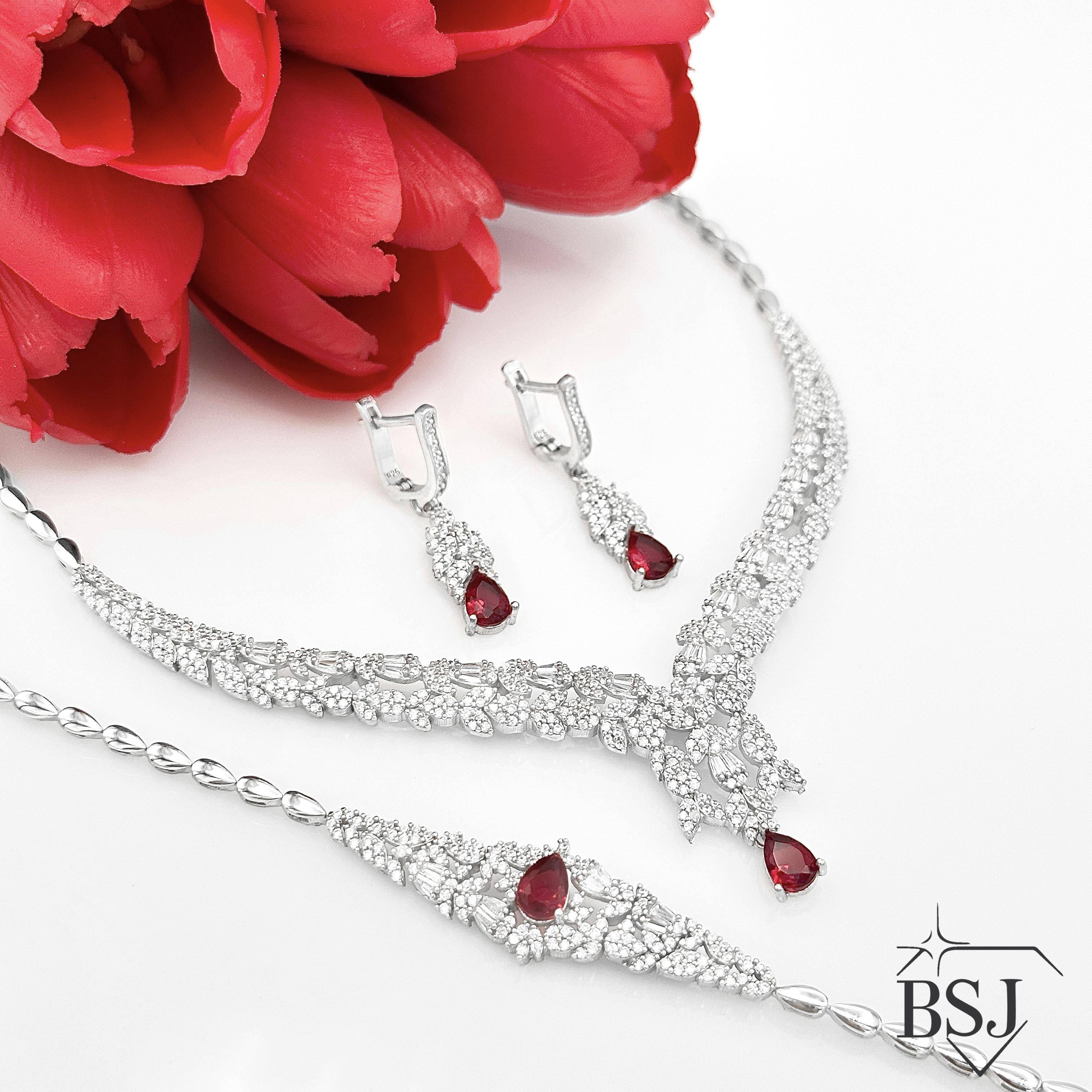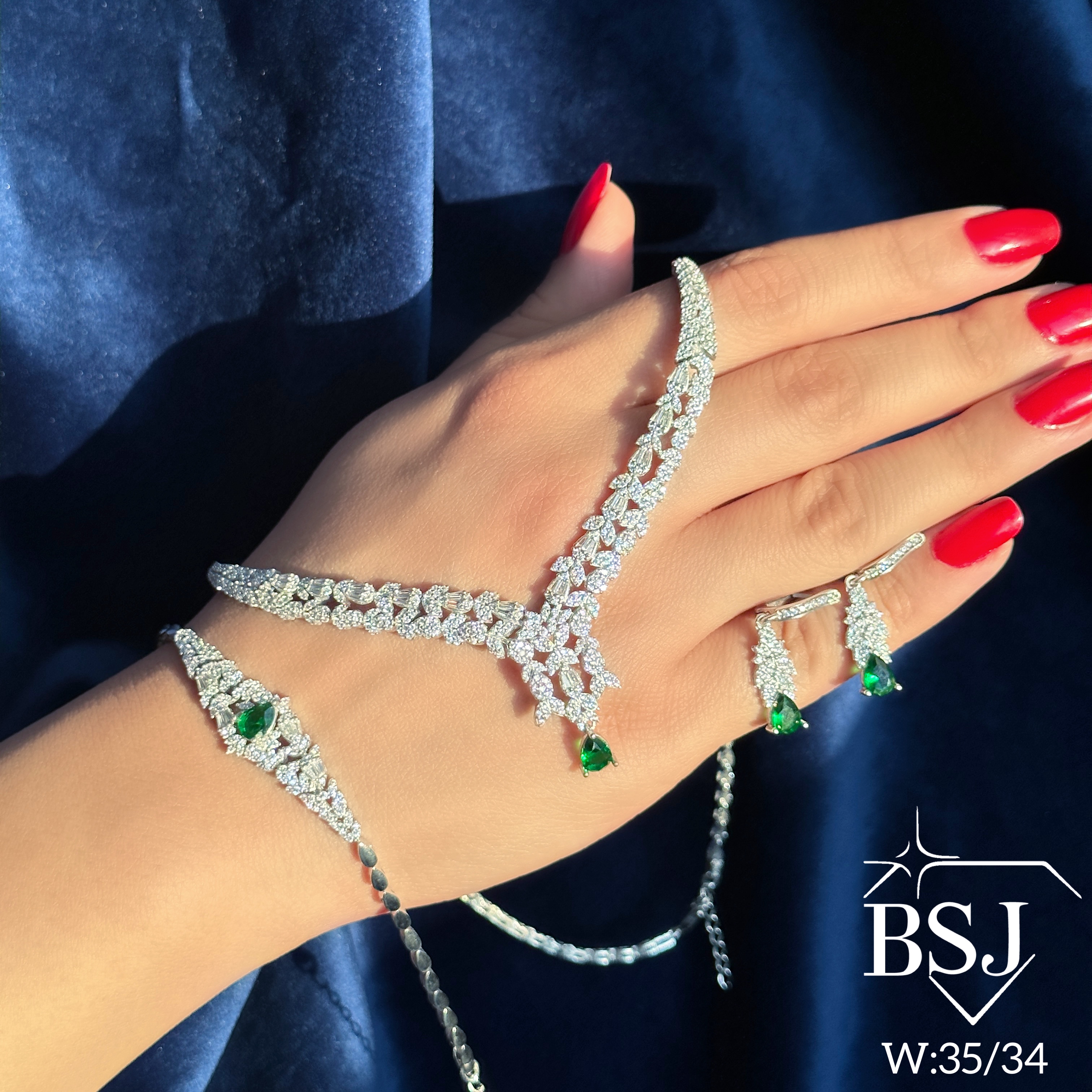 سرویس نقره جواهری کبود زنانه BSJ_S544 از سرویس های اعیانی ساخته شده از نقره با عیار 925 می باشد.سنگ های به کار رفته در آن برلیان و از جنس اتمی زیرکونیا و سنگ های برلیان سنتتیک (آزمایشگاهی) می باشند که به صورت میکروستینگ مخراج کاری شده اند و در برابر ضربه مقاوم اند.آبکاری دو مرحله ای رودیوم (طلاسفید)، سبب کیفیت بی نظیر دوام رنگ آن شده است و به دلیل عدم استفاده از نیکل در ساختار آن، بدون حساسیت بوده و با پوست حساس سازگار است.به دلیل کیفیت فوق العاده و درخشش عالی سنگ ها، تفاوتی با نمونه طلا ندارد.وزن سرویس35+ گرم می باشد.