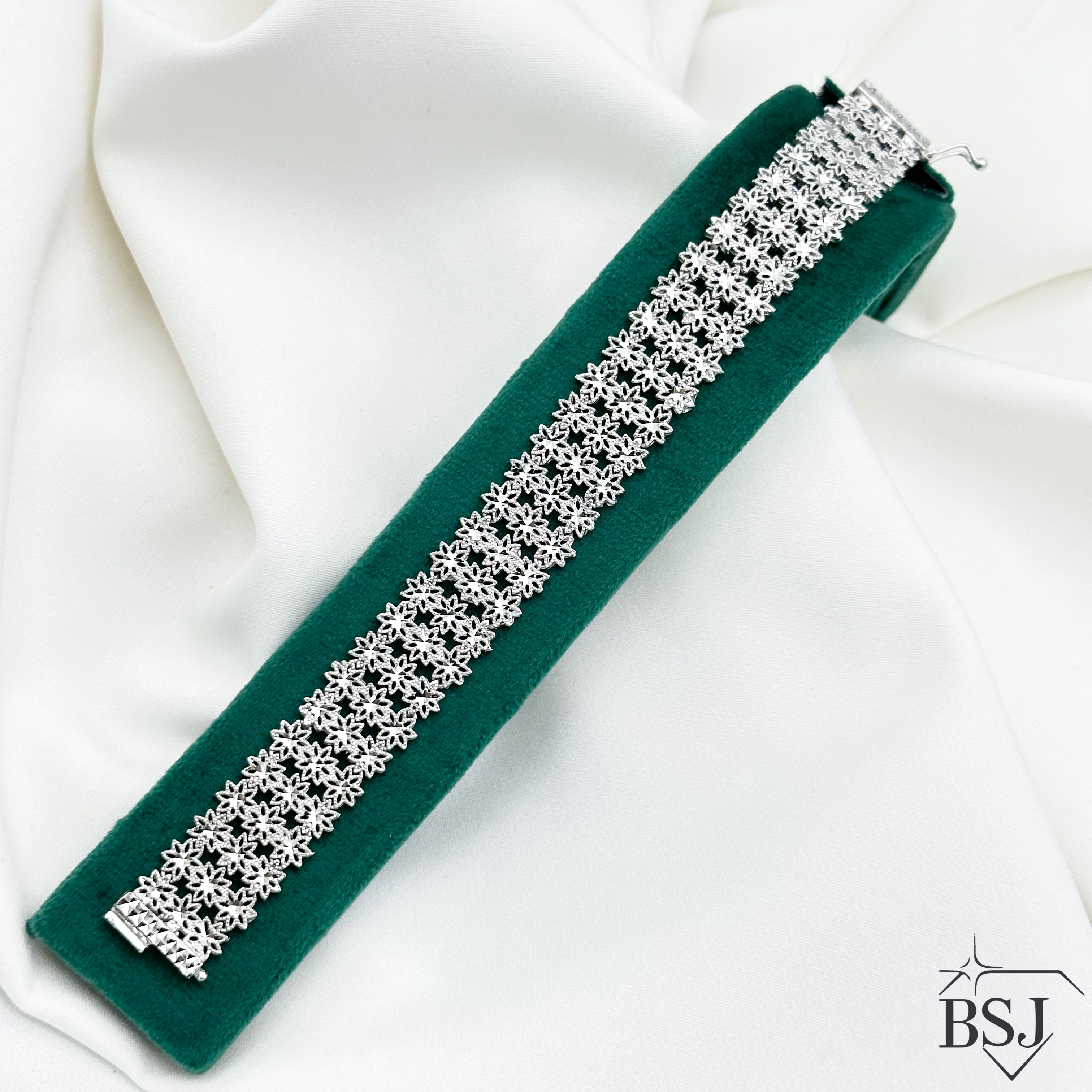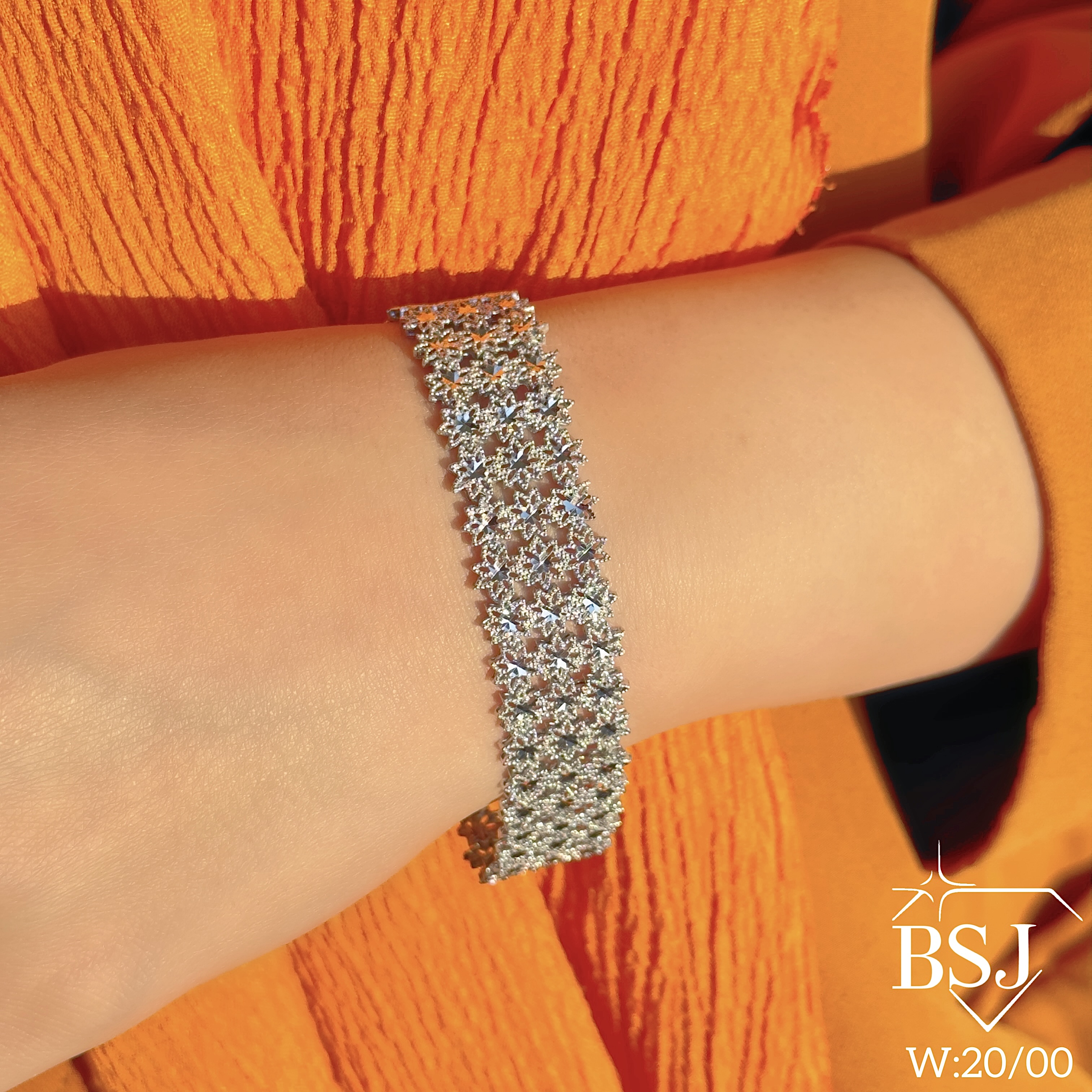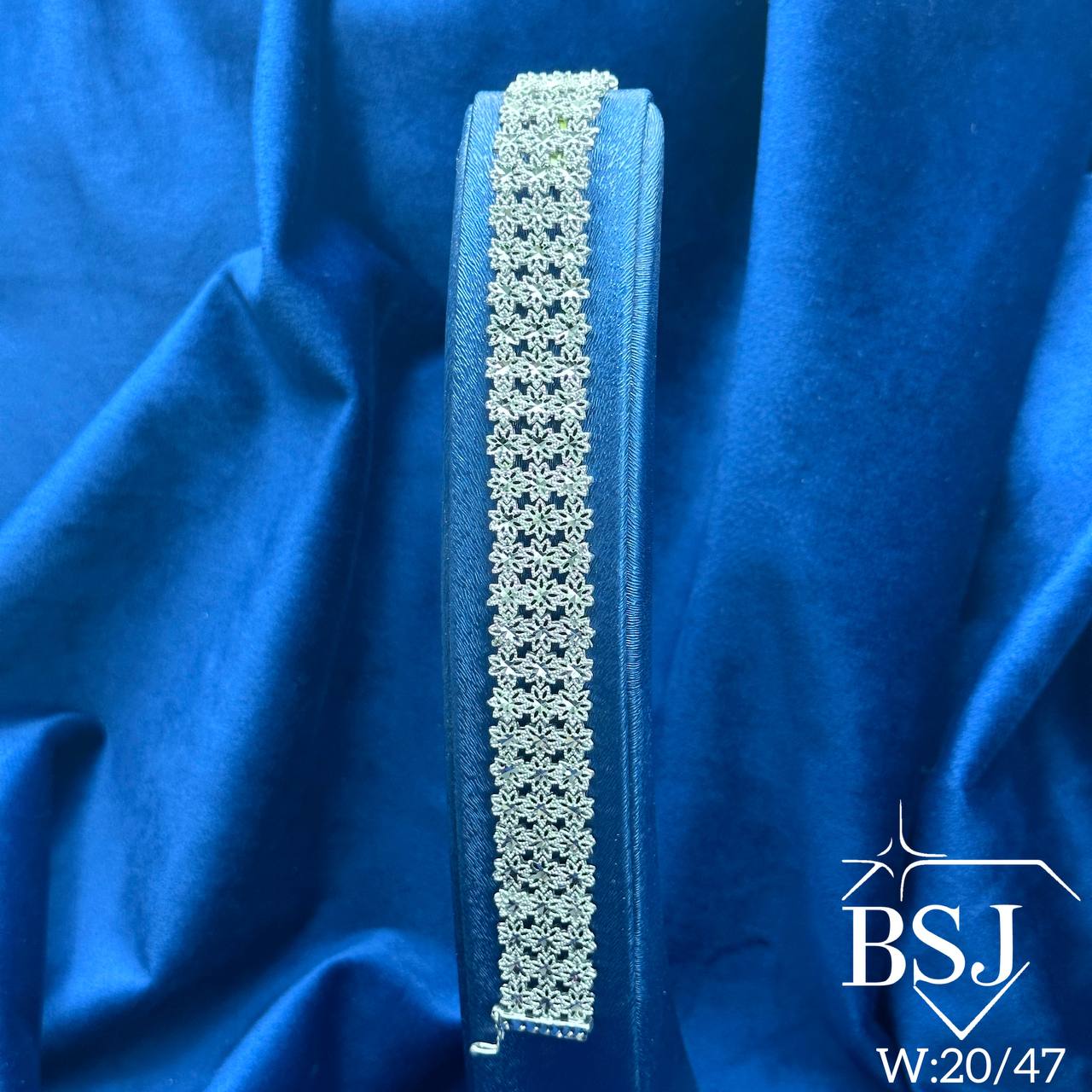 دستبند نقره تراش زنانه BSJ_D555 از دستبندهای شیک ساخته شده از نقره با عیار 925 می باشد.این دستبند بدون نگین بوده و تماما از جنس نقره می باشد.آبکاری دو مرحله ای رودیوم (طلاسفید)، سبب کیفیت بی نظیر دوام رنگ آن شده است و به دلیل عدم استفاده از نیکل در ساختار آن، بدون حساسیت بوده و با پوست حساس سازگار است.وزن دستبند 20.47+- گرم می باشد.