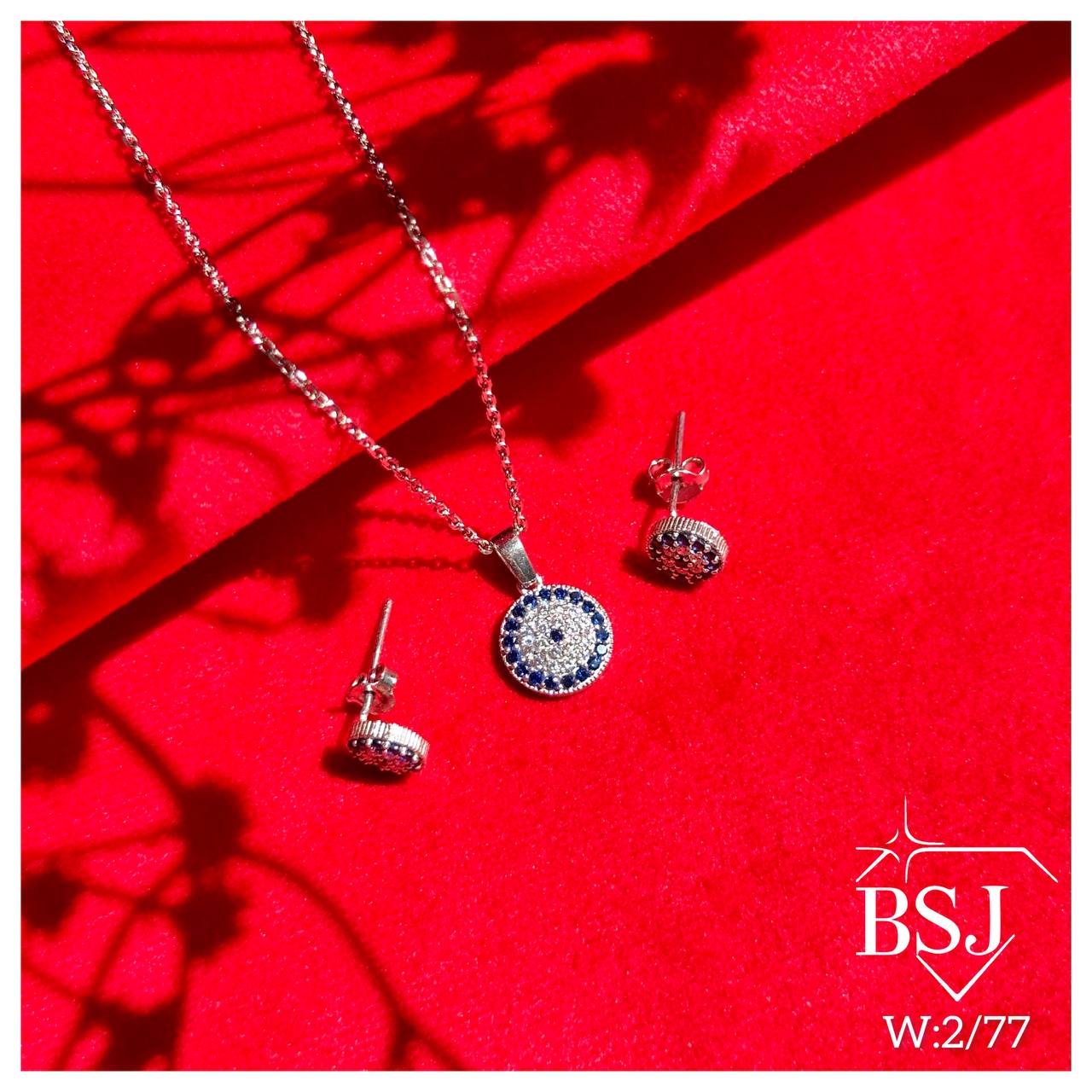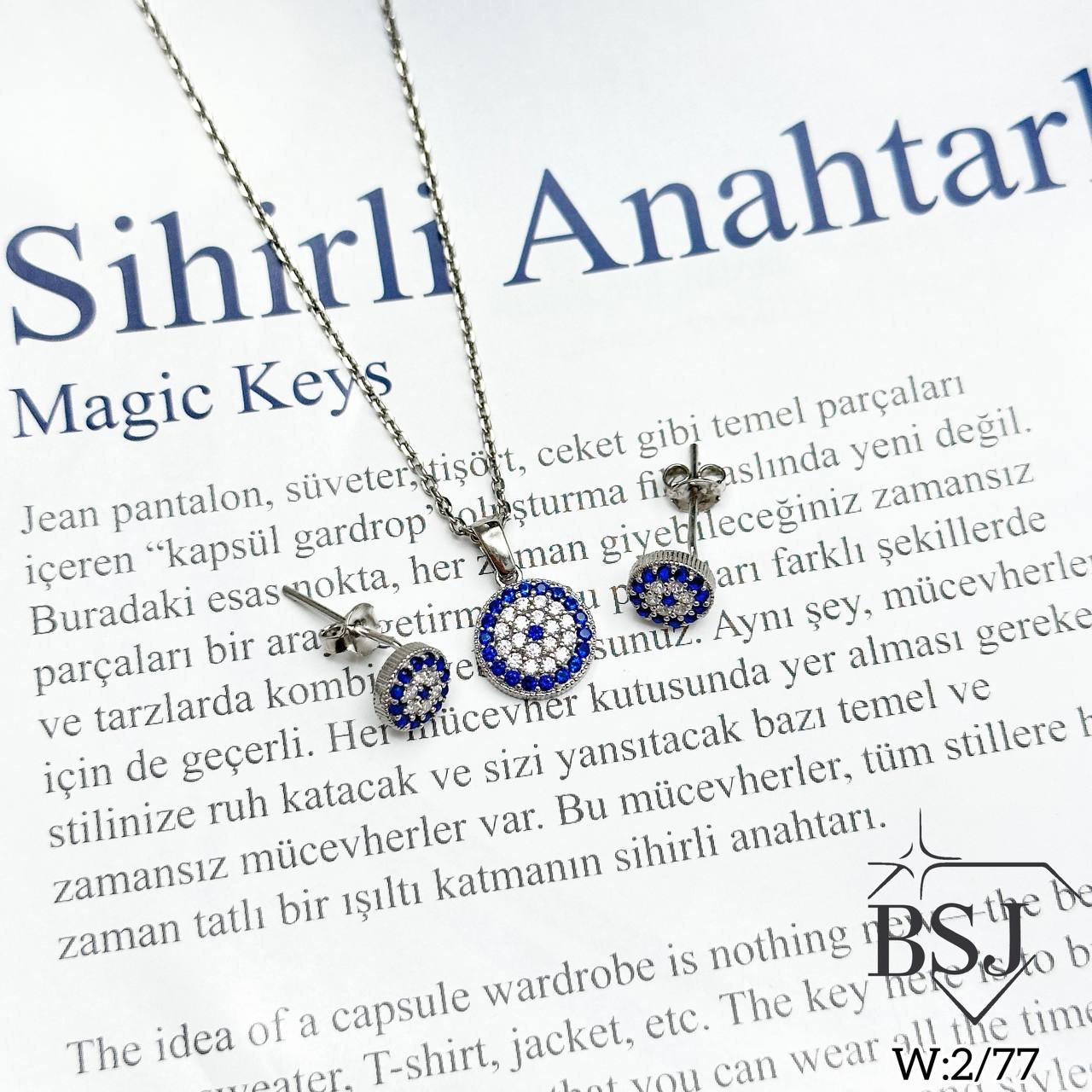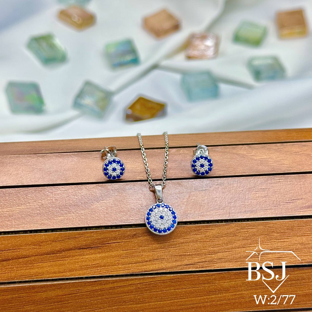 نیمست نقره طرح چشم نظر زنانه BSJ_N565 از نیمست های فانتزی و شیک ساخته شده از نقره با عیار 925 می باشد.سنگ های به کار رفته در آن برلیان از جنس اتمی زیرکونیا ونگین های رنگی سنتتیک (آزمایشگاهی) می باشند که به صورت میکروستینگ مخراج کاری شده اند و در برابر ضربه مقاوم اند.آبکاری دو مرحله ای رودیوم(طلا سفید)، سبب کیفیت بی نظیر دوام رنگ آن شده است و به دلیل عدم استفاده از نیکل در ساختار آن، بدون حساسیت بوده و با پوست حساس سازگار است.به دلیل کیفیت فوق العاده و درخشش عالی سنگ های آن، تفاوتی با نمونه طلا ندارد.وزن نیمست بدون زنجیر 2.77 گرم می باشد.