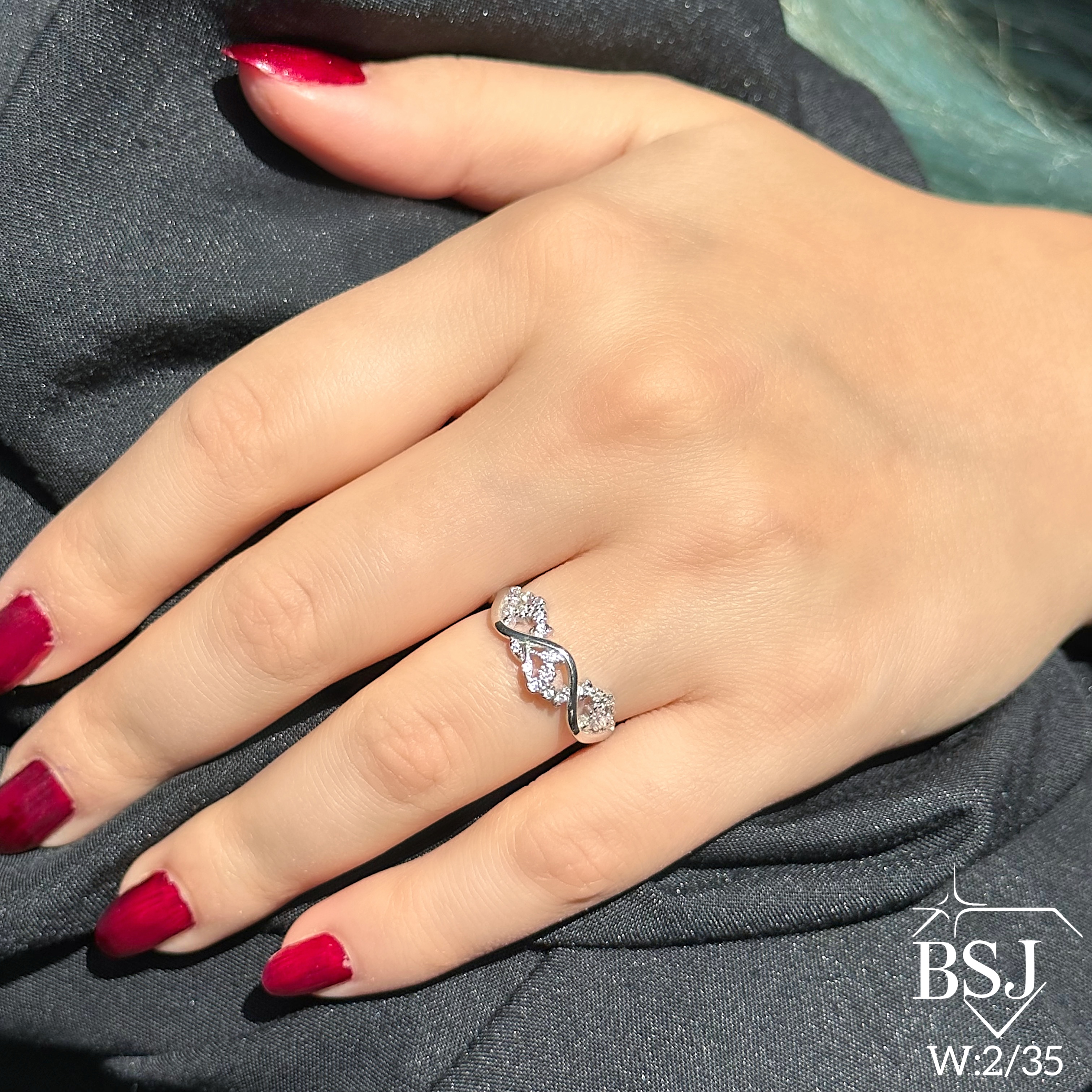انگشتر نقره فانتزی زنانه BSJ_r588 از انگشترهای فانتزی زیبای ساخته شده از نقره با عیار 925 می باشد.سنگ های به کار رفته در آن برلیان از جنس اتمی زیرکونیا می باشند.سنگ ها به صورت میکروستینگ مخراج کاری شده اند و در برابر ضربه مقاوم اند.آبکاری دو مرحله ای رودیوم(طلاسفید)، سبب کیفیت بی نظیر دوام رنگ آن شده است و به دلیل عدم استفاده از نیکل در ساختار آن، بدون حساسیت بوده و با پوست حساس سازگار است.به دلیل کیفیت فوق العاده و درخشش عالی، تفاوتی با نمونه طلا ندارد.وزن انگشتر 2.27گرم می باشد.