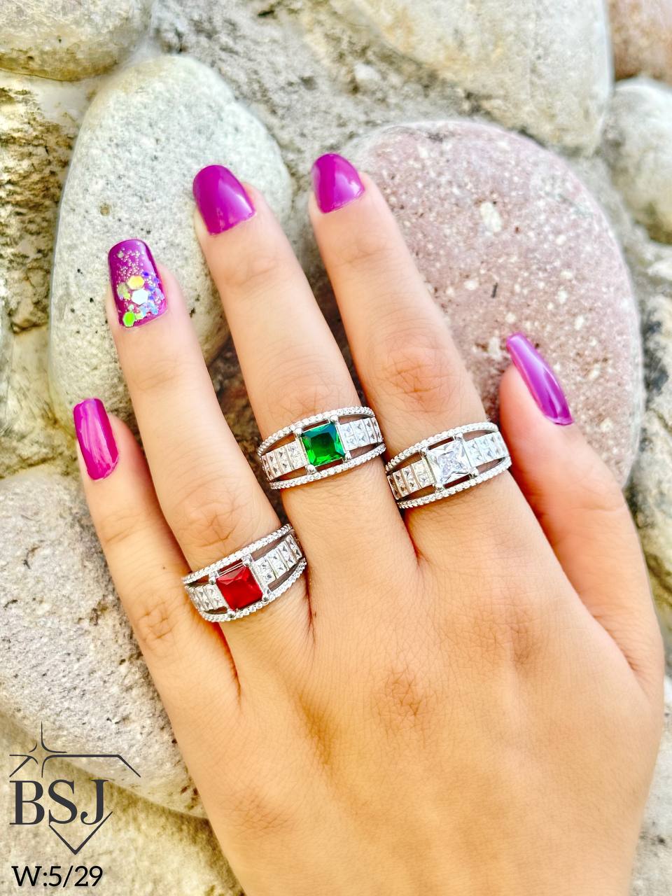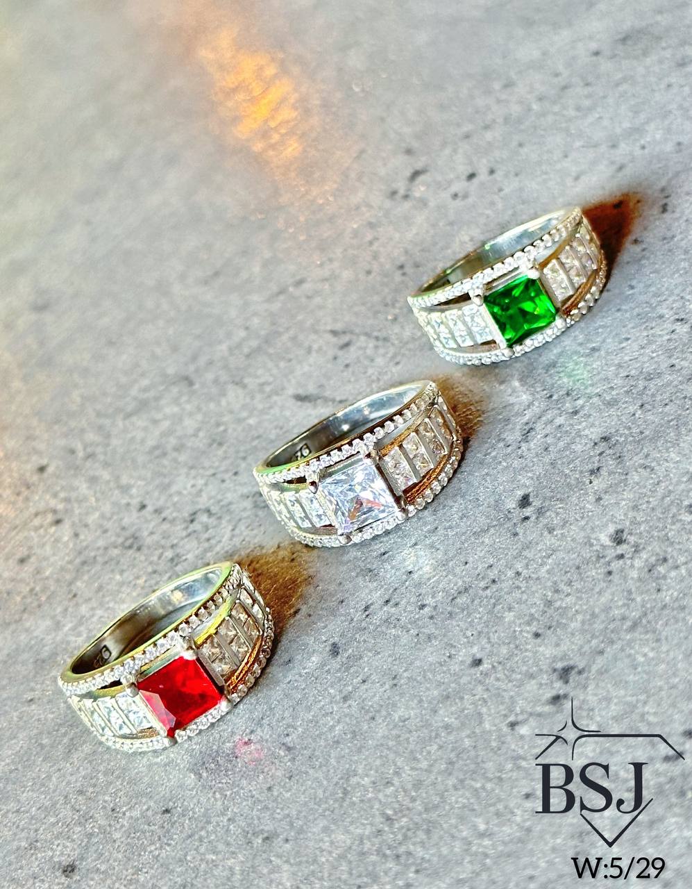 انگشتر نقره میکرو BSJ_r127 یکی از به روز ترین انگشترهای ساخته شده از نقره با عیار 925 می باشد.سنگ های به کار رفته در آن برلیان و پرنس از جنس اتمی زیرکونیا و نگین های رنگی سنتتیک(آزمایشگاهی) که در سه رنگ جذاب تولید شده است می باشند.سنگ ها به صورت میکروستینگ مخراج کاری شده اند و در برابر ضربه مقاوم اند.آبکاری دو مرحله ای رودیوم(طلا سفید)، سبب کیفیت بی نظیر دوام رنگ آن شده است و به دلیل عدم استفاده از نیکل در ساختار آن، بدون حساسیت بوده و با پوست حساس سازگار است.به دلیل کیفیت فوق العاده و درخشش عالی، تفاوتی با نمونه طلا ندارد.وزن انگشتر 5.29 گرم می باشد.
