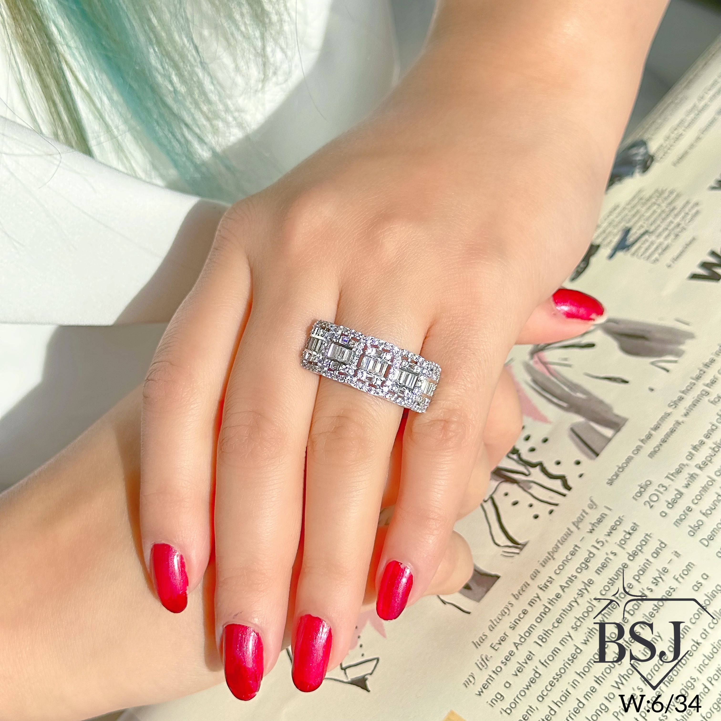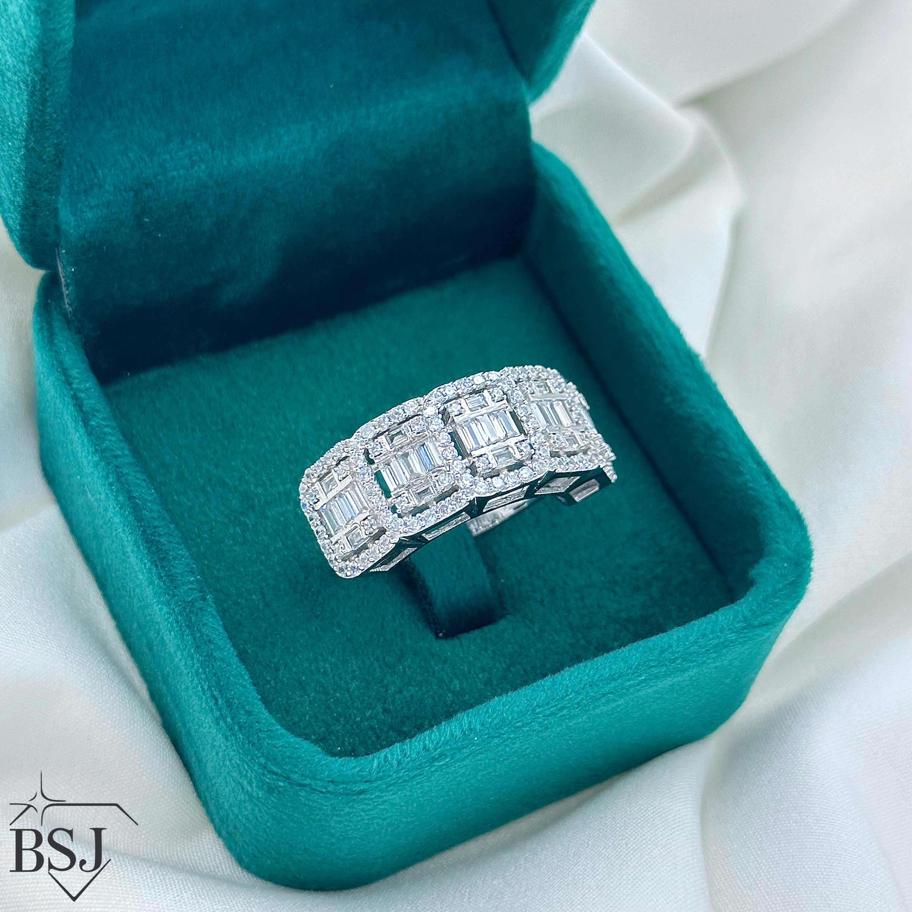 انگشتر نقره جواهری BSJ_r129 یکی از به روز ترین انگشترهای ساخته شده از نقره با عیار 925 می باشد.سنگ های به کار رفته در آن برلیان و امرالد از جنس اتمی زیرکونیا می باشند که به صورت میکروستینگ مخراج کاری شده اند و در برابر ضربه مقاوم اند.آبکاری دو مرحله ای رودیوم(طلا سفید)، سبب کیفیت بی نظیر دوام رنگ آن شده است و به دلیل عدم استفاده از نیکل در ساختار آن، بدون حساسیت بوده و با پوست حساس سازگار است.به دلیل کیفیت فوق العاده و درخشش عالی، تفاوتی با نمونه طلا ندارد.وزن انگشتر 6.57 گرم می باشد.