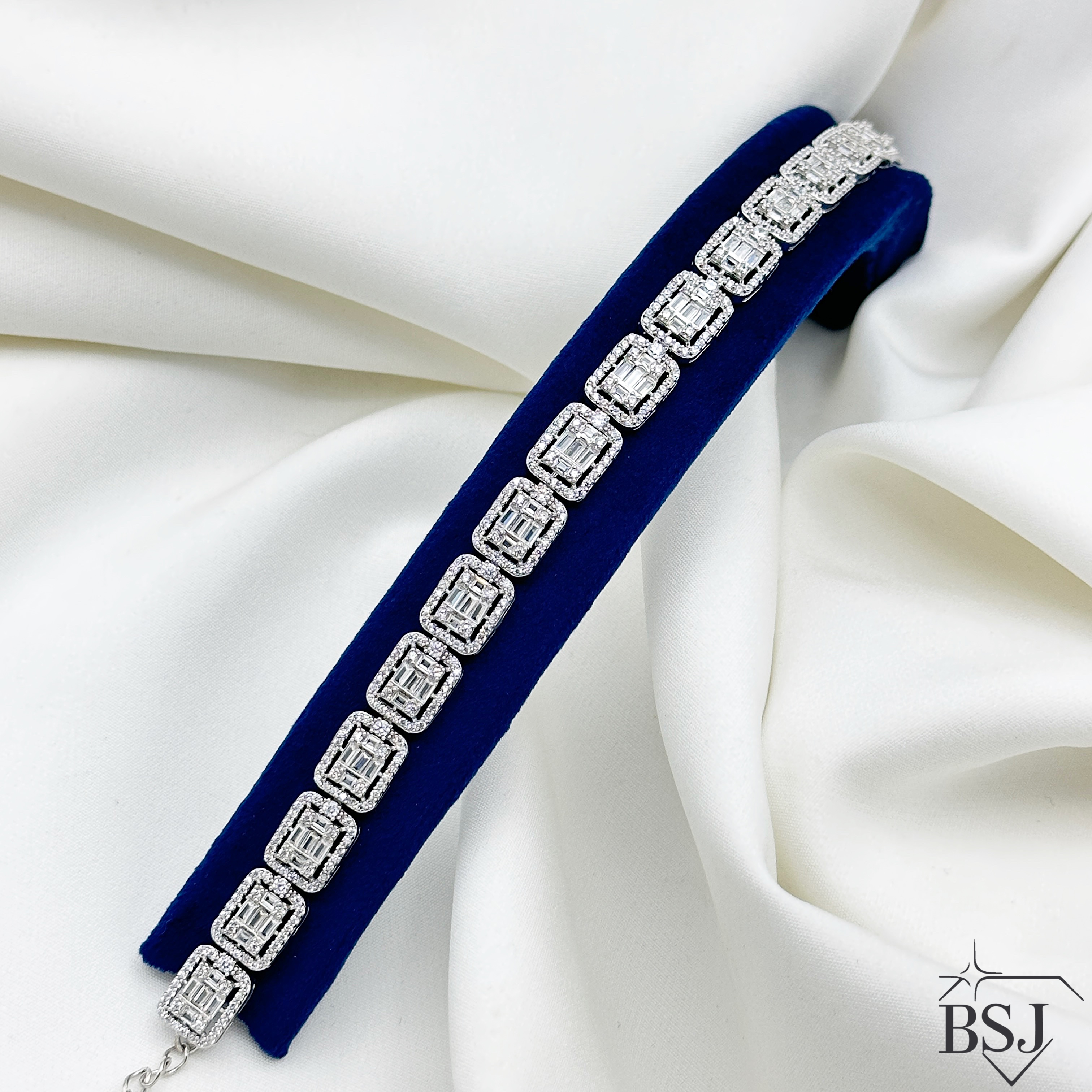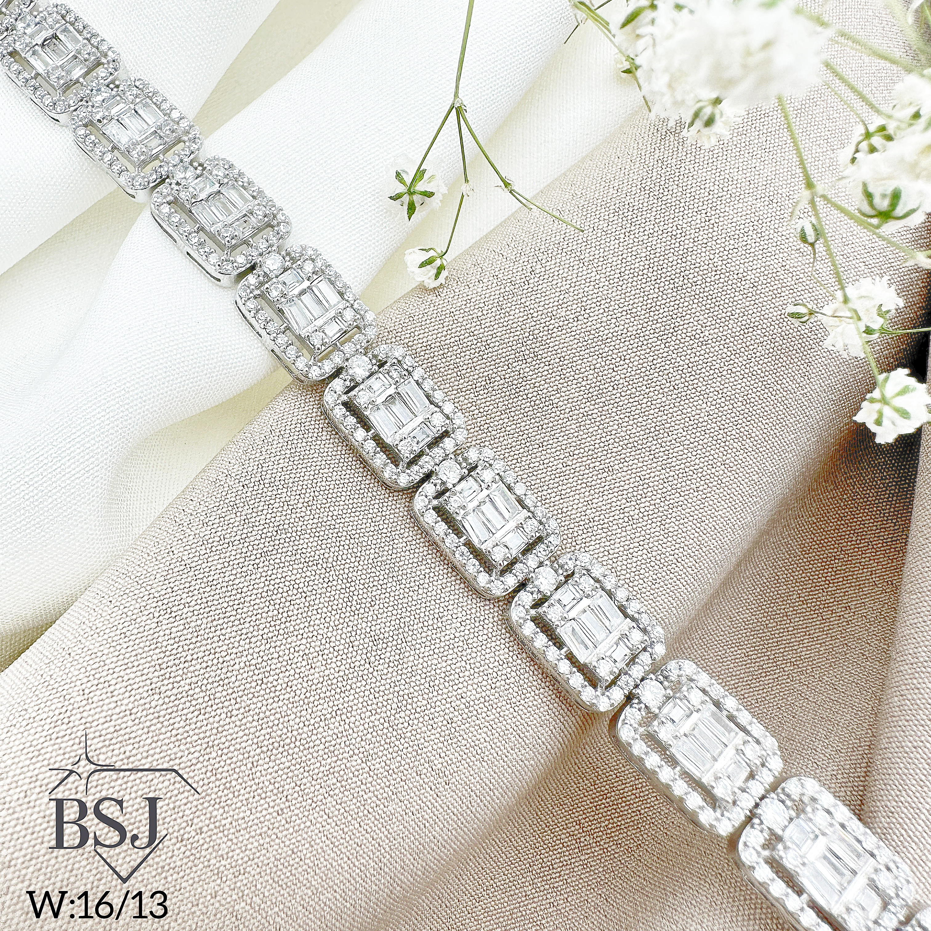 دستبند نقره جواهری زنانه BSJ_D572 از دستبندهای پرفروش و شیک ساخته شده از نقره با عیار 925 می باشد.سنگ های به کار رفته در آن برلیان از جنس اتمی زیرکونیا می باشند که به صورت میکروستینگ مخراج کاری شده اند و در برابر ضربه مقاوم اند.آبکاری دو مرحله ای رودیوم (طلا سفید)، سبب کیفیت بی نظیر دوام رنگ آن شده است و به دلیل عدم استفاده از نیکل در ساختار آن، بدون حساسیت بوده و با پوست حساس سازگار است.وزن دستبند +_16.13 گرم می باشد.