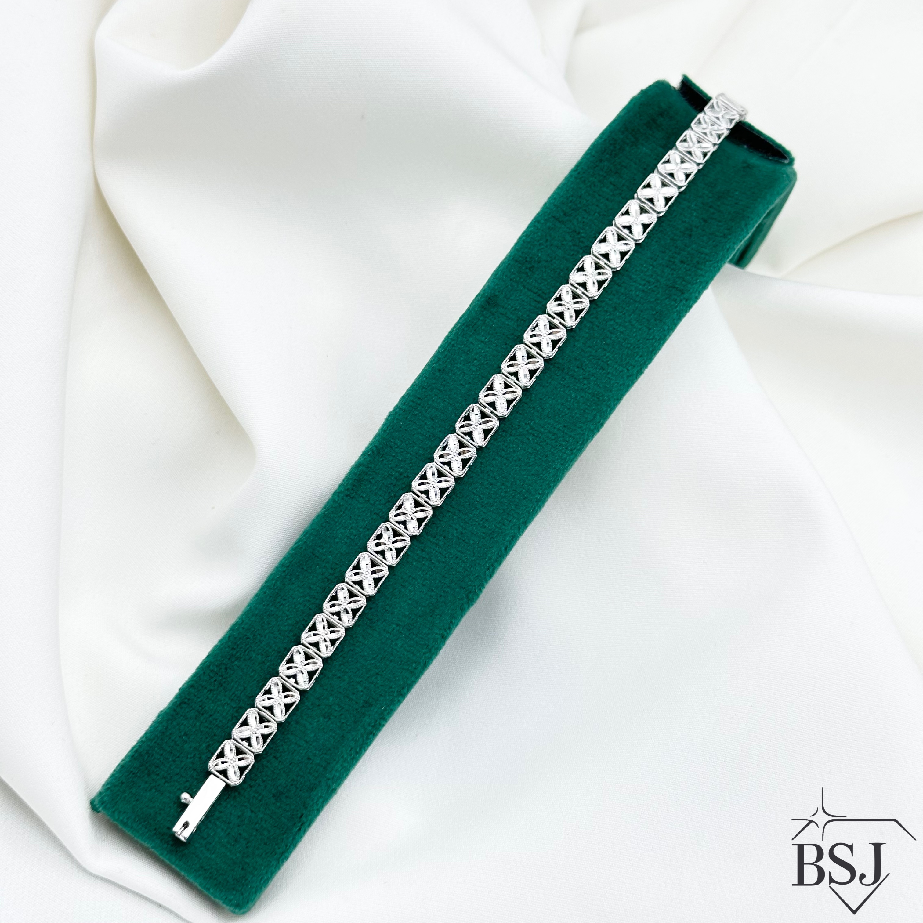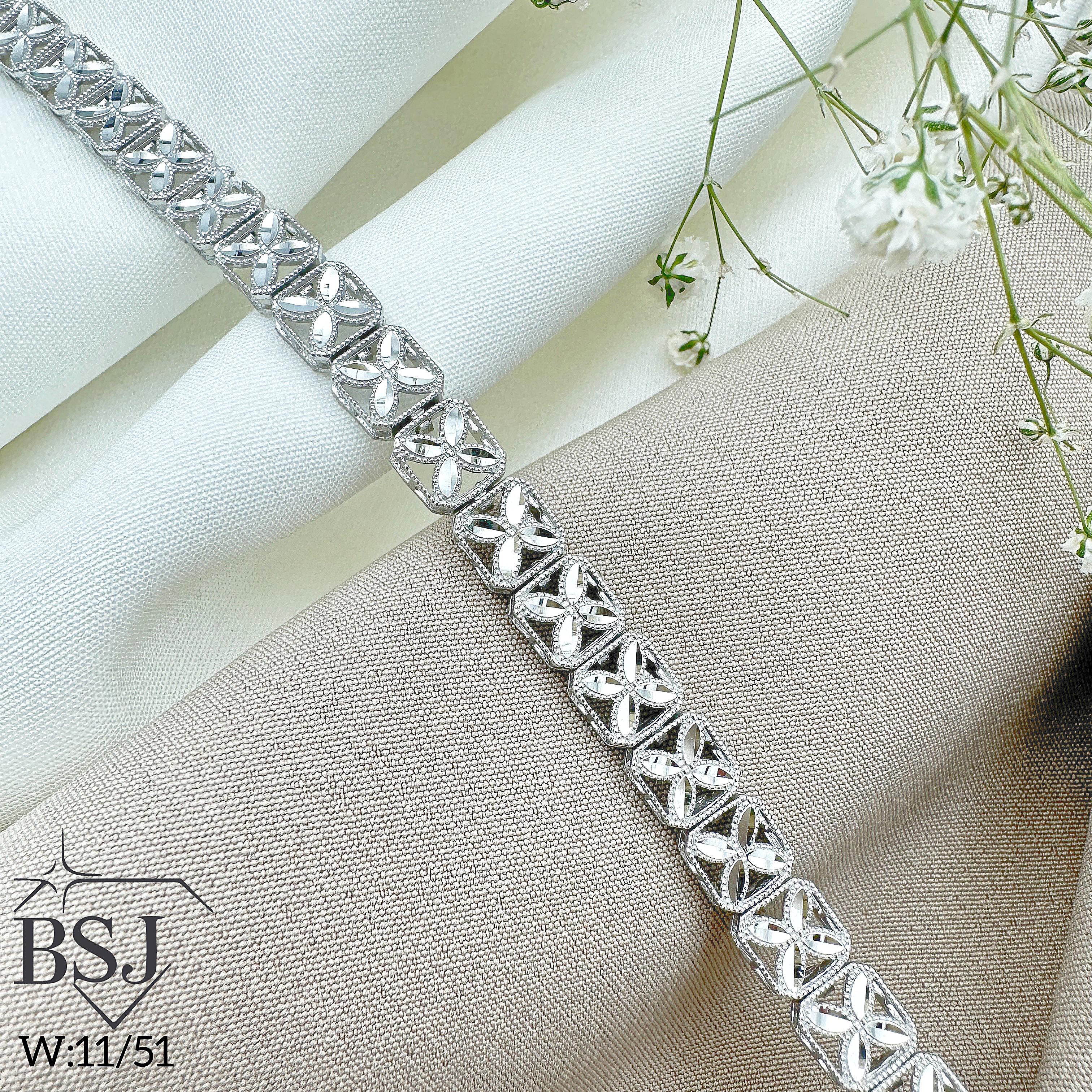 دستبند نقره جواهری زنانه BSJ_D573 از دستبندهای پرفروش و شیک ساخته شده از نقره با عیار 925 می باشد.سنگ های به کار رفته در آن برلیان از جنس اتمی زیرکونیا می باشند که به صورت میکروستینگ مخراج کاری شده اند و در برابر ضربه مقاوم اند.آبکاری دو مرحله ای رودیوم (طلا سفید)، سبب کیفیت بی نظیر دوام رنگ آن شده است و به دلیل عدم استفاده از نیکل در ساختار آن، بدون حساسیت بوده و با پوست حساس سازگار است.وزن دستبند 11.51 گرم می باشد.