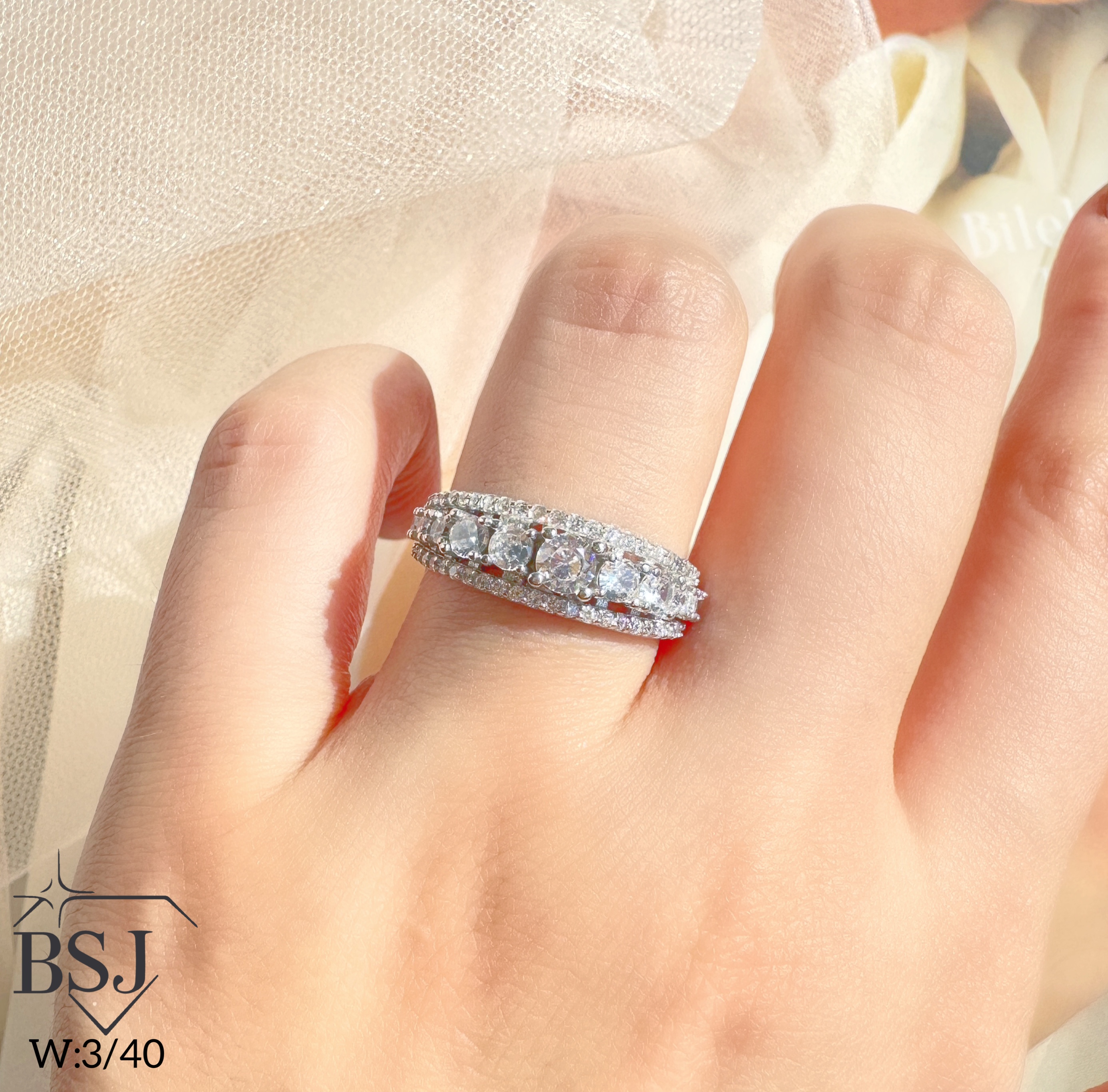 انگشتر نقره جواهری BSJ_R002 یکی از به روز ترین انگشترهای ساخته شده از نقره با عیار 925 می باشد.سنگ های به کار رفته در آن برلیان از جنس اتمی زیرکونیا می باشند که به صورت میکروستینگ مخراج کاری شده اند و در برابر ضربه مقاوم اند.آبکاری دو مرحله ای رودیوم(طلا سفید)، سبب کیفیت بی نظیر دوام رنگ آن شده است و به دلیل عدم استفاده از نیکل در ساختار آن، بدون حساسیت بوده و با پوست حساس سازگار است.به دلیل کیفیت فوق العاده و درخشش عالی، تفاوتی با نمونه طلا ندارد.وزن انگشتر +-3.40 گرم می باشد.