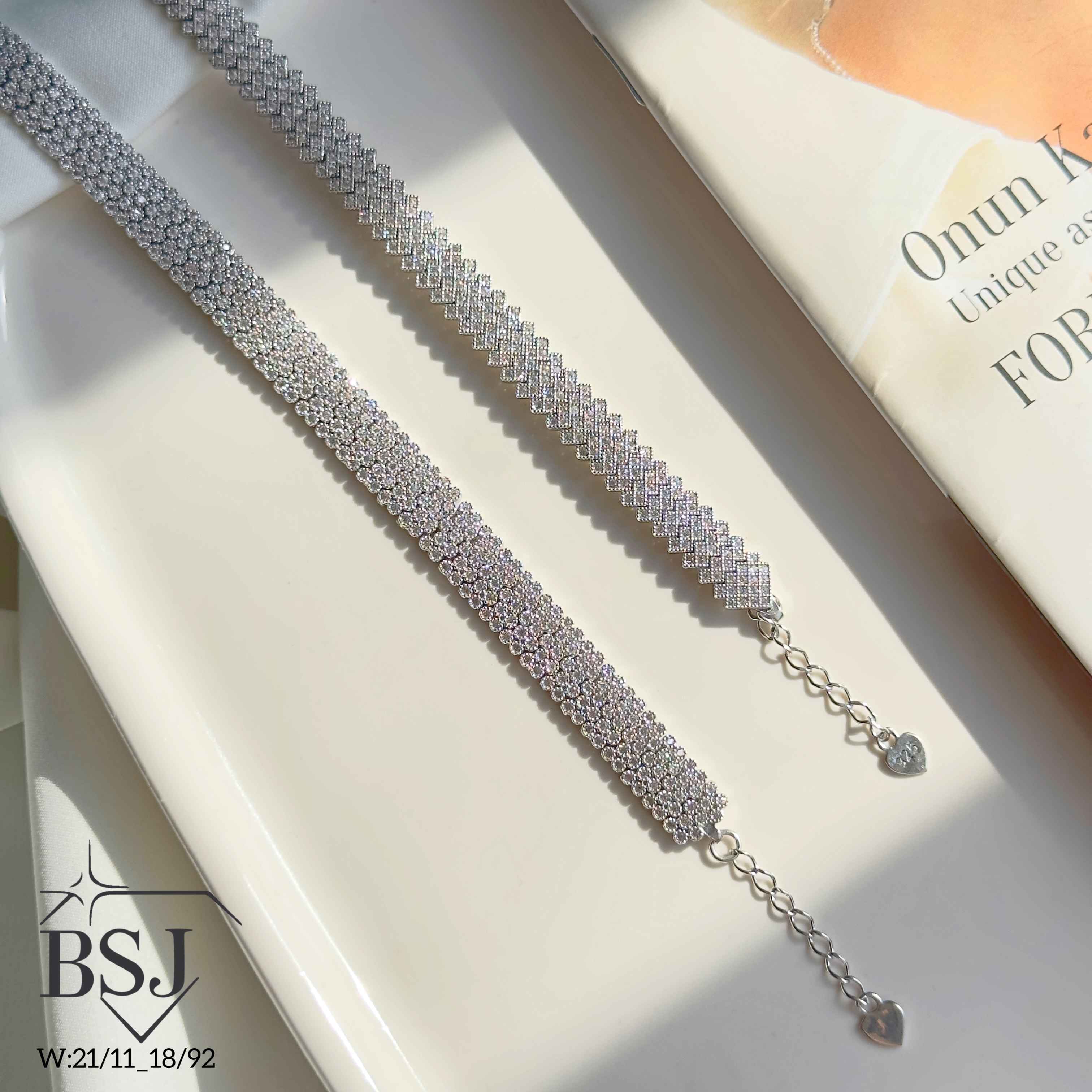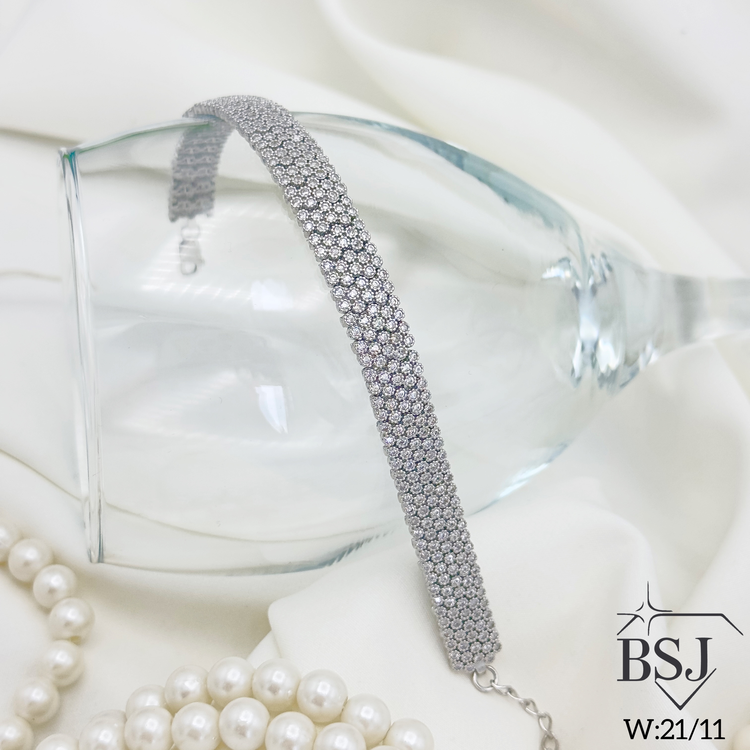 دستبند نقره تراش زنانه BSJ_D574 از دستبندهای شیک ساخته شده از نقره با عیار 925 می باشد.این دستبند بدون نگین بوده و تماما از جنس نقره می باشد.آبکاری دو مرحله ای رودیوم (طلاسفید)، سبب کیفیت بی نظیر دوام رنگ آن شده است و به دلیل عدم استفاده از نیکل در ساختار آن، بدون حساسیت بوده و با پوست حساس سازگار است.وزن دستبند +-21.11 گرم می باشد.