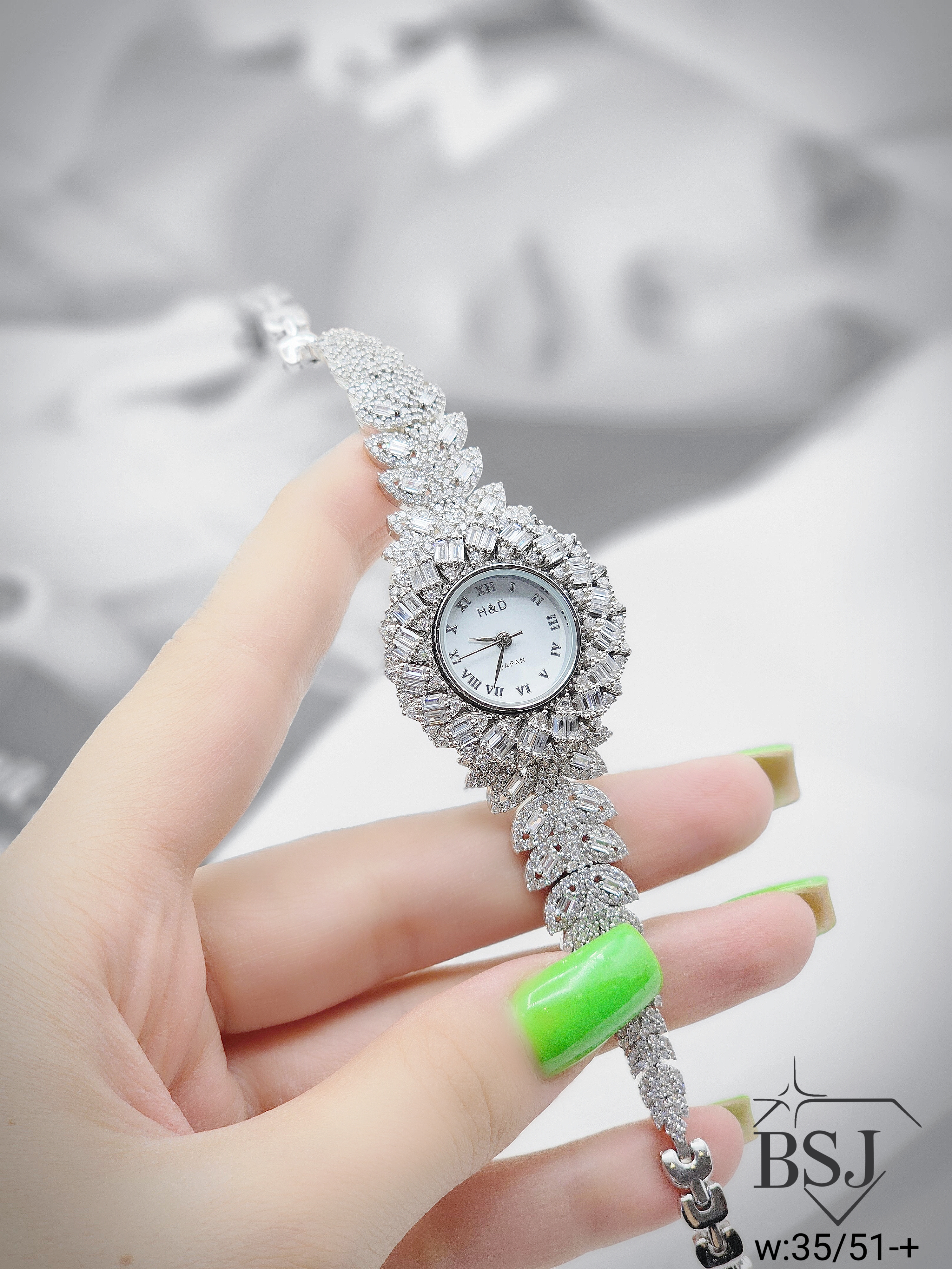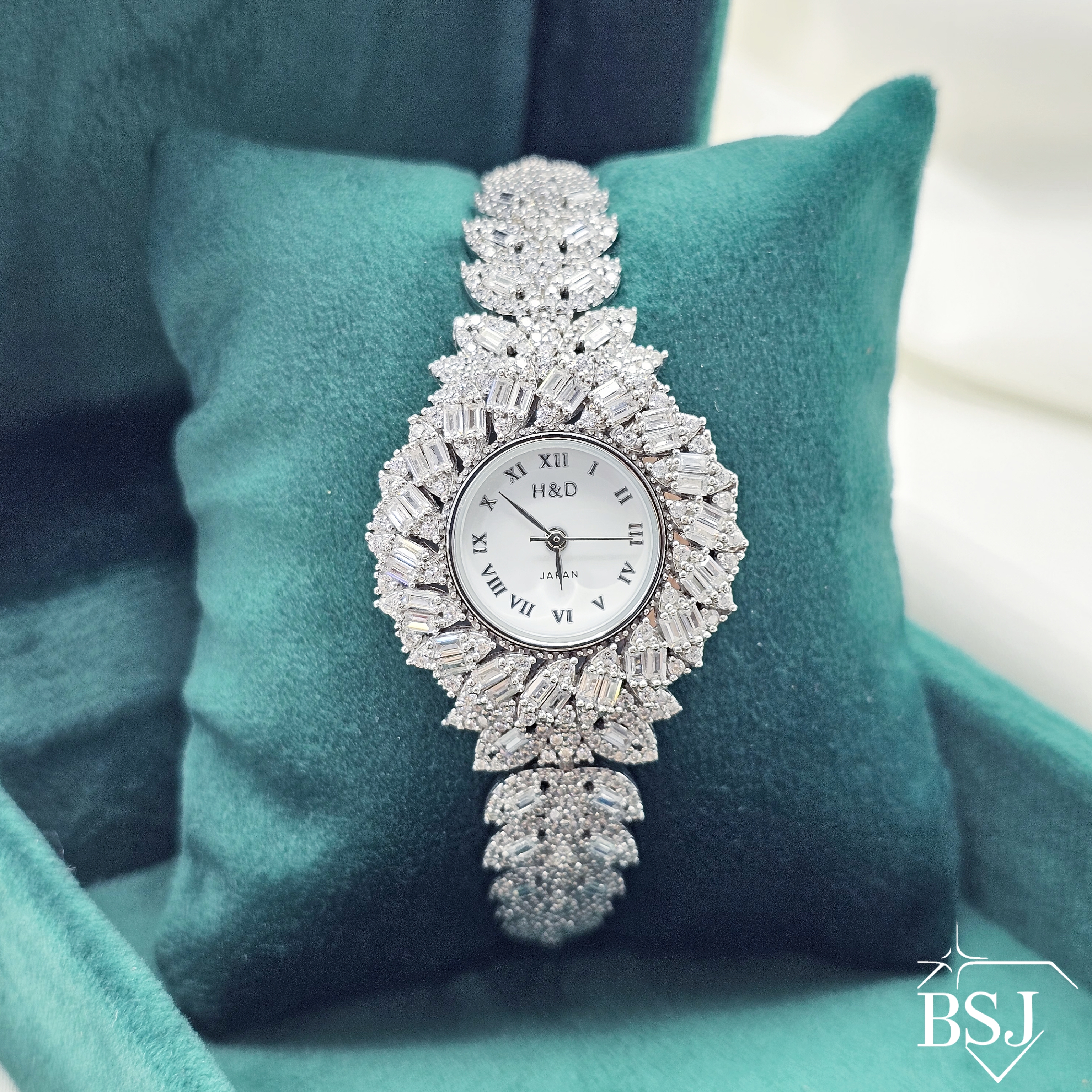 ساعت نقره جواهری زنانه BSJ_W530 از ساعت های شیک و جذاب ساخته شده از نقره با عیار 925 می باشد.سنگ های به کار رفته در آن امرالد و برلیان از جنس اتمی زیرکونیا می باشند که به صورت میکروستینگ مخراج کاری شده اند و در برابر ضربه مقاوم اند.جنس بدنه از نقره به عیار 925 بوده و تنها قسمتی از محصول که نقره نیست موتور آن می باشد.آبکاری دو مرحله ای رودیوم(طلا سفید)، سبب کیفیت بی نظیر دوام رنگ آن شده است و به دلیل عدم استفاده از نیکل در ساختار آن،بدون حساسیت بوده و با پوست حساس سازگار است.وزن تقریبی ساعت +- 35.51 گرم می باشد.