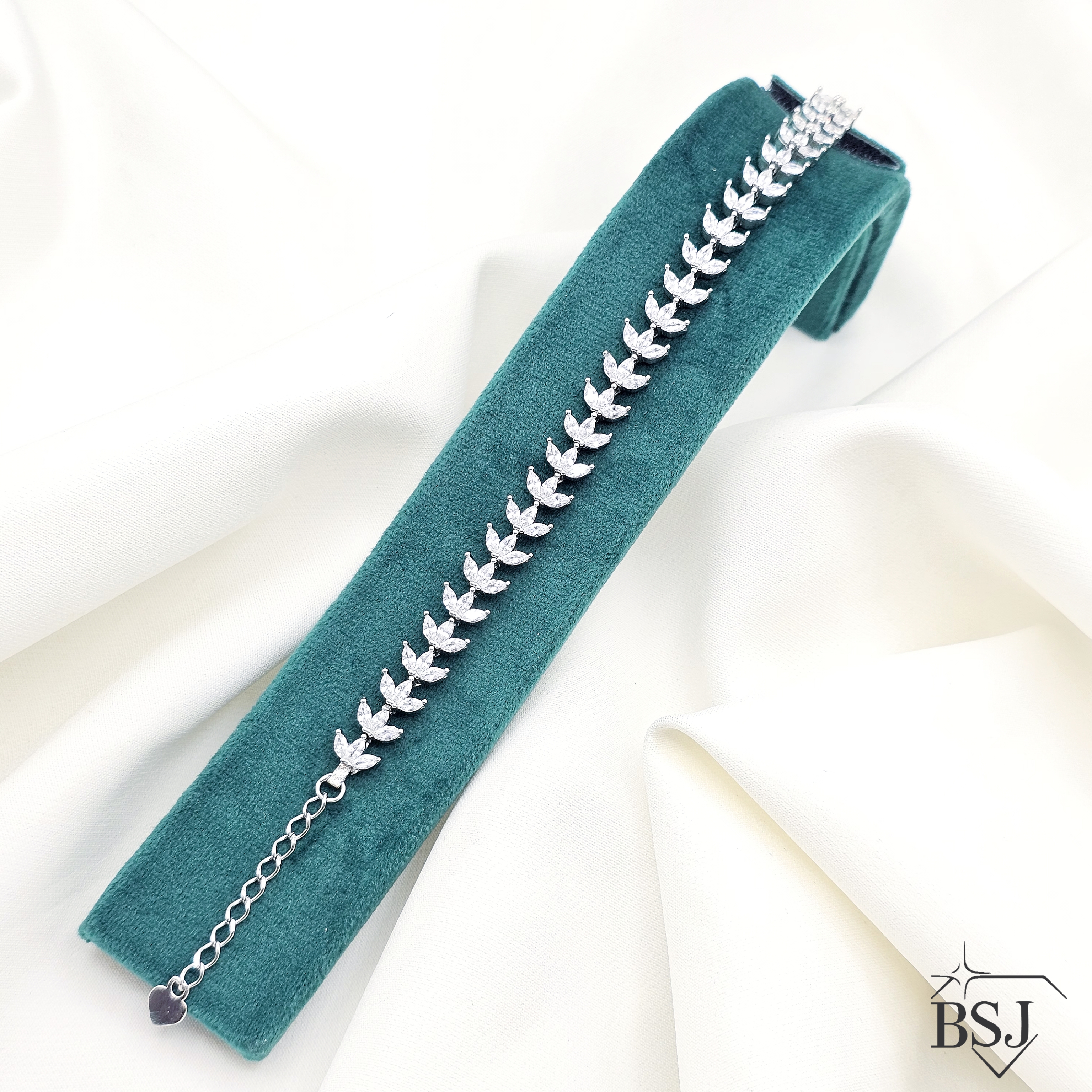 دستبند نقره BSJ_D607 یکی از دستبندهای مجلسی و ظریف ساخته شده از نقره با عیار 925 می باشد.سنگ های به کار رفته در آن برلیان از جنس اتمی زیرکونیا می باشند که به صورت میکروستینگ مخراج کاری شده اند و در برابر ضربه مقاوم اند.آبکاری دو مرحله ای رودیوم (طلا سفید)، سبب کیفیت بی نظیر دوام رنگ آن شده است و به دلیل عدم استفاده از نیکل در ساختار آن، بدون حساسیت بوده و با پوست حساس سازگار است.وزن دستبند 15.65+- گرم می باشد.
